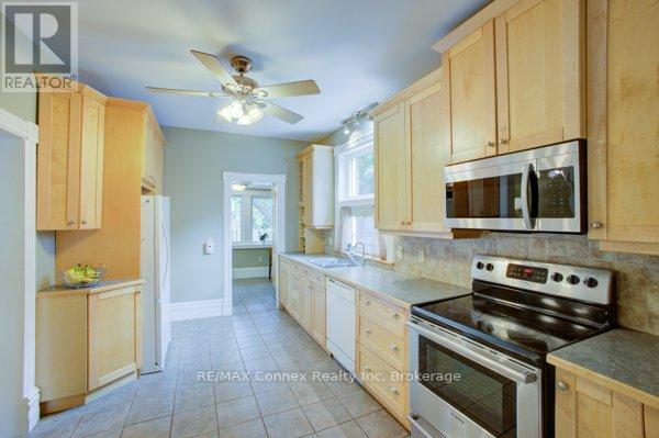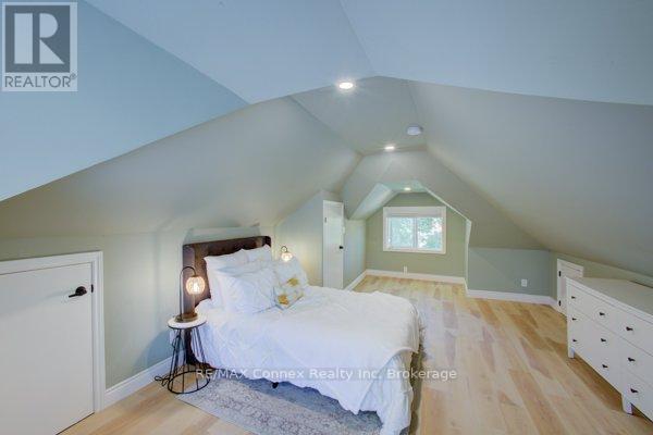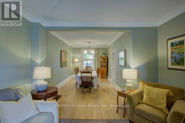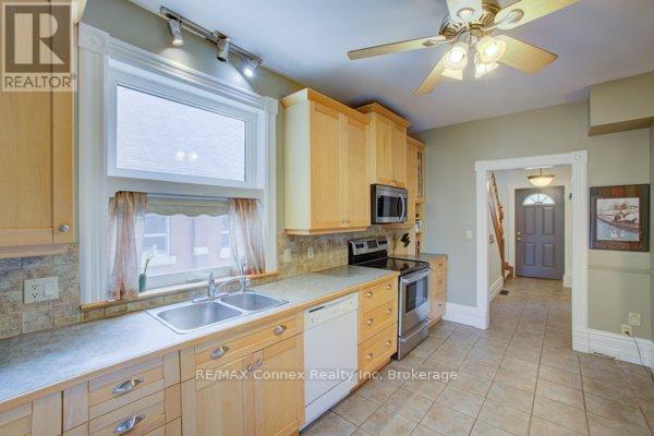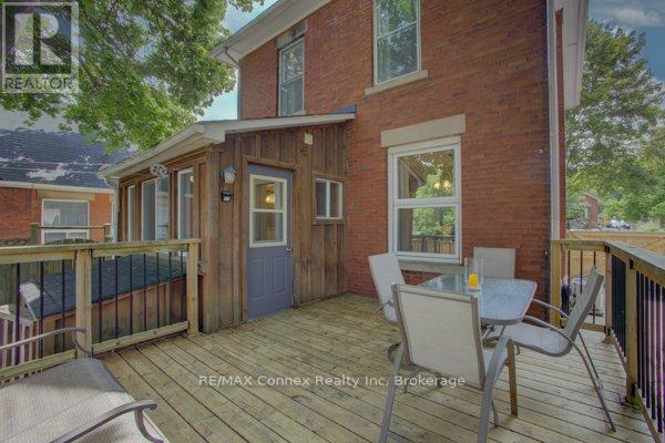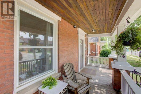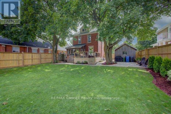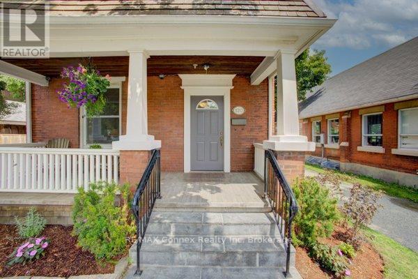 Discover a place where comfort, character, and convenience come together. This charming two-and-a-half-storey brick home sits proudly on a rare double lot in one of the area's most family-oriented neighbourhoods - just steps from parks, walking trails, schools, shopping, and vibrant downtown amenities.From its classic covered front porch to its beautifully landscaped backyard, this home has been thoughtfully designed for family living. A double-wide driveway and detached one-car garage offer plenty of parking, while the inviting exterior hints at the warmth and charm found within.Inside, the open-concept living and dining rooms feature newly installed engineered hardwood flooring, high baseboards, and an effortless flow that's perfect for gatherings. The spacious kitchen provides ample counter and cabinet space for family meals and holiday baking, and connects to a convenient mudroom and a stylish two-piece bath with a striking brick accent wall. Step outside to a private backyard retreat - complete with a deck, interlocking patio, and plenty of space for children to play or for hosting summer barbecues.Upstairs, new carpeting adds comfort throughout. The large primary bedroom offers two illuminated double closets and room for a cozy reading nook, while the second bedroom easily accommodates a queen or bunk bed. A newly renovated four-piece bathroom brings modern comfort to this charming level. A covered sunporch adds an extra touch of versatility - the perfect spot for a play area, quiet retreat, or family relaxation space year-round.The fully finished attic expands your possibilities even further, with deluxe laminate flooring, knee-wall storage, and new foam insulation - ideal for a third bedroom, playroom, or private home office.Blending timeless character with thoughtful updates, this home provides the space, warmth, and setting every family dreams of - a place to grow, gather, and create lasting memories. (id:51158)