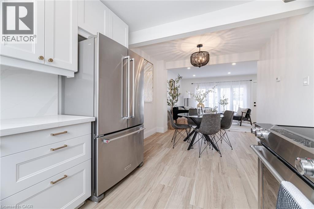 Welcome 120 Quigley Road, A Stunning, Turnkey End Unit!Step inside this newly updated, end-unit townhome and experience true pride of ownership. Updated top to bottom with high-end finishes, this home is the definition of move-in ready. The standout feature is the custom-designed kitchen, thoughtfully crafted with no expense spared showcasing a gorgeous quartz slab countertop and matching backsplash, and premium KitchenAid appliances for a sleek, chef-worthy space.The open-concept living and dining areas are flooded with natural light, offering a fresh, contemporary feel. The finished basement provides even more living space perfect for a family room, home gym, or home office. Enjoy the convenience of an independent laundry room, making daily chores a breeze.Step outside to your maintenance-free, private fenced backyard ideal for entertaining, gardening, or simply relaxing in your own personal oasis. Being an end unit, you'll appreciate the added privacy and peaceful atmosphere.Located in a welcoming, family-friendly neighborhood, you'll find everything you need just minutes away great schools, parks, shopping centers, public transit, and easy access to the Red Hill Valley Parkway for commuters. Outdoor enthusiasts will love being close to the Niagara Escarpment trails, lush green spaces, and the beauty of the waterfront.This is a rare opportunity to own a fully upgraded, stylish home in a prime Hamilton location. Don't miss your chance schedule your tour today and find out why this home is turning heads in Hamilton! (id:51158)