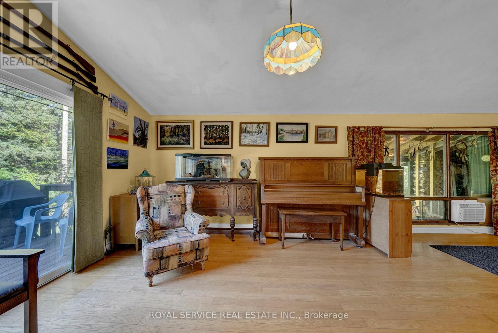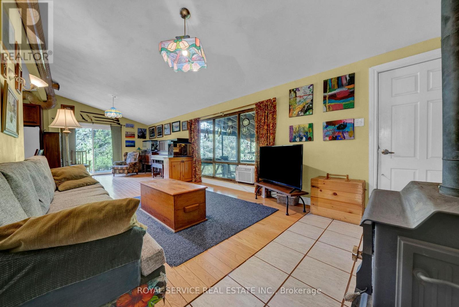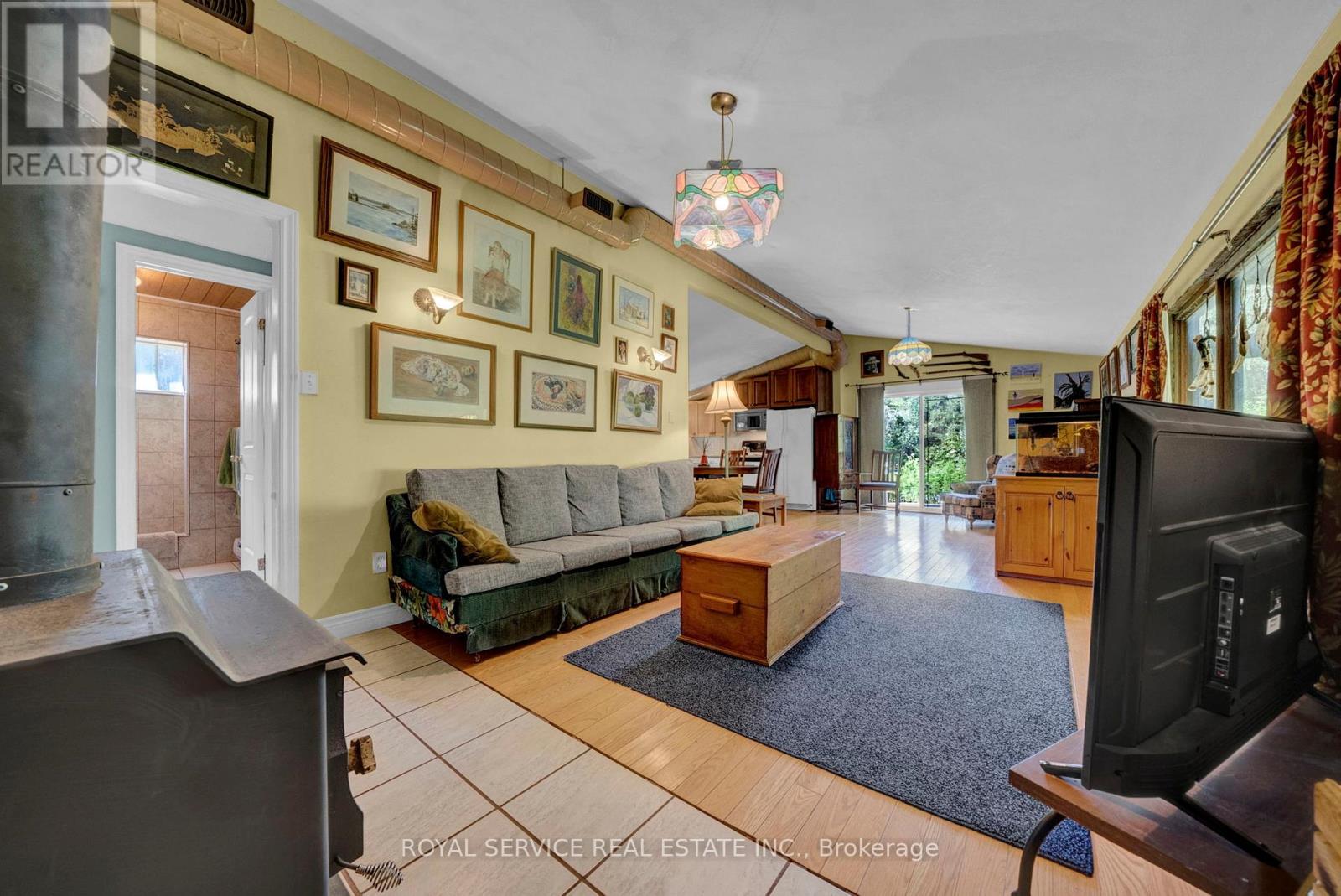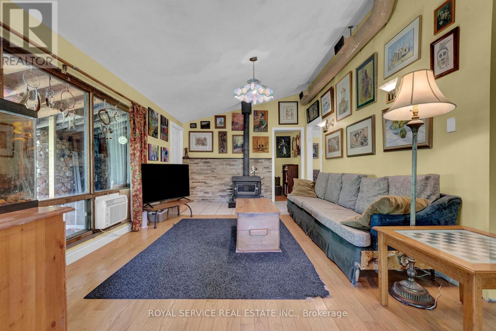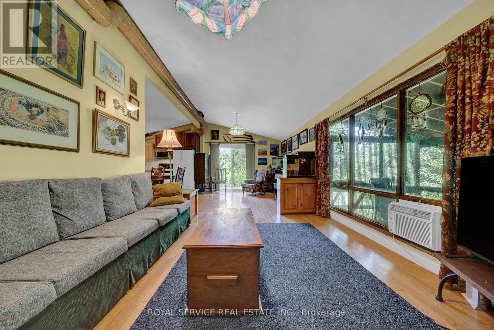 Are you looking for a versatile and charming artists' retreat? This private 6+ Acres home includes a workshop/studio/stage, large cleared area, fish pond, greenhouse, sauna, carport and offers an incredible amount of potential and livability. The open concept home offers a large open kitchen/dining/living room area with wood stove that provides ample heat. The grounds include a mix of hardwood trees, multiple, large cleared areas, supreme privacy, a small studio, a greenhouse, a front and back porch and deck, a bird viewing are, as well as a sauna attached to the home. The workshop could function as both wood-working place or sewing/artists studio or perhaps converted into a granny flat. The home has 3 bedrooms and a 3pc washroom. A The property has gorgeous colours in the fall and has several charming places for exploring the hardwoods. It is a wonderful property for holding large functions. With some added renovations to the home this property could be exceptional. (id:51158)