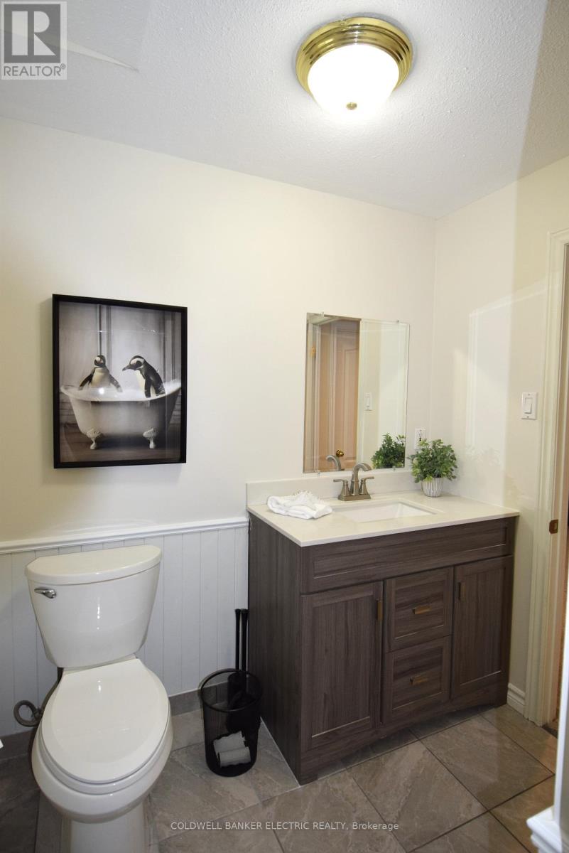 Tucked away on a quiet street, this all-brick home has so much to offer. The main floor features an open-concept living and dining area filled with natural light from large windows. The updated kitchen boasts new stainless-steel appliances and a walkout to the back deck - perfect for morning coffee or an afternoon swim in the above-ground pool, which received a new liner in 2023. The yard is fully fenced for privacy and relaxation. Two spacious bedrooms and a bright four-piece bath complete the main level. Downstairs, you'll find a generous family room with a dedicated play area, a large bedroom that can double as an office, and a convenient three-piece bath. The attached garage has a new door, is heated, and currently serves as a fitness space. Immaculately maintained and move-in ready , this gem is within walking distance of shopping, schools, and parks. Don't let it slip through your fingers! (id:51158)