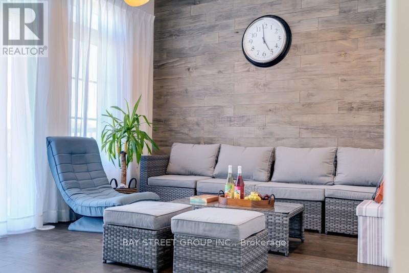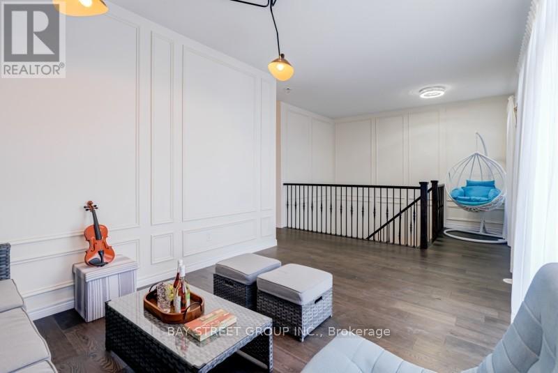 Welcome to this rare 3,492 sq.ft. ARISTA Baywood Model in prestigious Boxgrove Village, featuring a valuable 890 sq.ft. ground-floor commercial (flex space)-perfect for retail, office, studio, medical or professional services. The commercial storefront faces Copper Creek Drive, offering premium exposure with large display windows and steady traffic. The ground level also includes an attached 2-car garage plus a driveway for 4 additional cars, providing parking for up to 6 vehicles, an exceptional advantage for both residential and commercial use. The main residential floor showcases an expansive open-concept great room with rich hardwood flooring, elegant wall trims, and a striking staircase with wrought-iron pickets. The upgraded chef's kitchen features granite countertops, stainless steel appliances, mosaic backsplash, a large island, and a stylish breakfast area. This level also includes 2 full bedrooms, laundry room, and a walkout to a private, covered second-floor balcony. The upper level includes a bright media loft with a designer wood-accent wall, two generous bedrooms. The primary suite offers a custom geometric feature wall, a walk-in closet, and a luxury 5 piece ensuite with double vanities, glass shower, and deep soaker tub. A standout highlight is the expansive third-floor rooftop terrace, providing private outdoor living ideal for entertaining, dining, gardening, children's play, or creating a custom rooftop lounge. A large outdoor storage shed is included. This property follows layout: Ground Floor - 890 sq.ft. commercial unit flex space, 2-car garage (plus 4-car driveway); Main Floor - Great room, kitchen, breakfast, bedroom, study/office, laundry, balcony; Upper Floor - Media loft, 2 large bedrooms, 2 full baths (incl. primary ensuite) and Oversized private terrace with storage shed (id:51158)