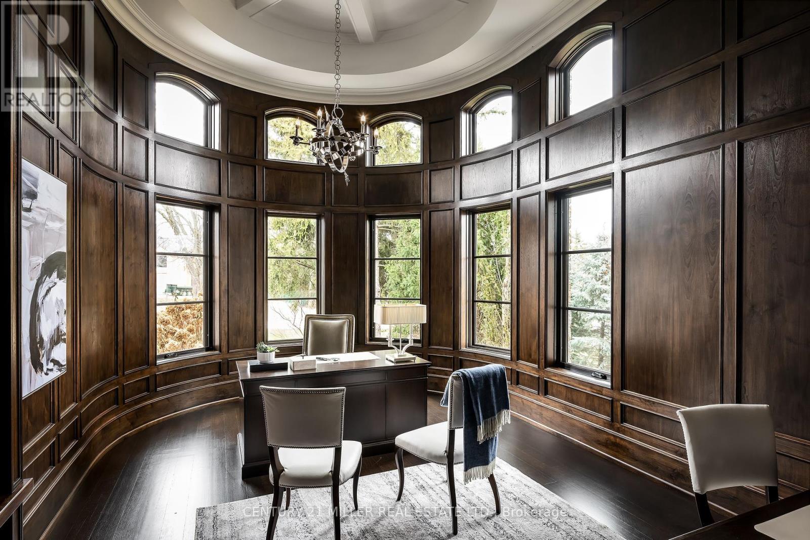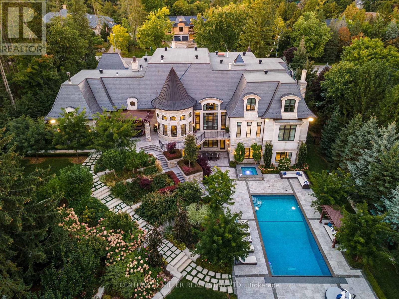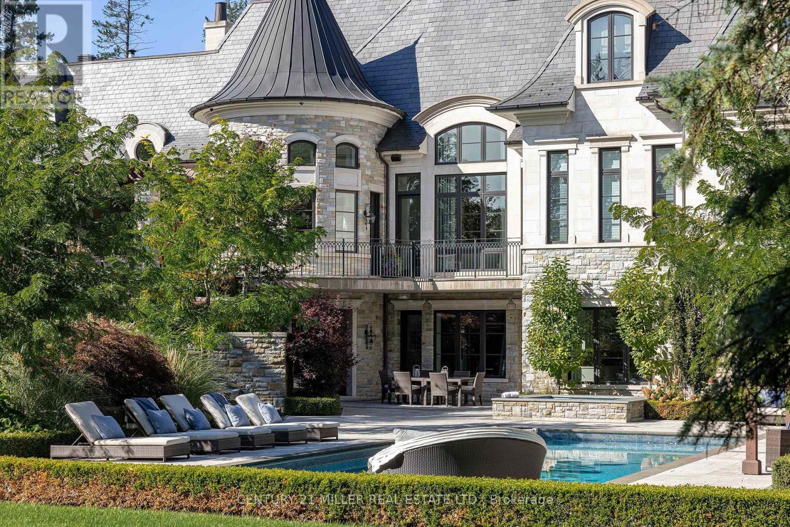 Exquisite French Parsian Home in coveted Woodland Acres. Architect Frank Falcone and Designer Robin Nadel. Over 1 acre of private grounds with pristine manicured gardens, pool and outdoor entertaining spaces. Made with Indiana limestone, natural slate roofing, natural stone, granite and copper detailing. Over 13,000 sq ft of total living space with refined craftsmanship, finest luxury finishes and no detail overlooked throughout this incredible property. Cathedral great room, gourmet kitchen by Bellini Kitchens with Rotunda breakfast area. Extensive millwork, vaulted ceilings and wall panelling throughout. Mahogany wine cellar with capacity of over 500 bottles, elevator, gym, theatre, wet bar, outdoor kitchen, stone fireplace with pizza oven. Separate one bedroom apartment above garage. 4 car garage and 12 parking spots. (id:51158)