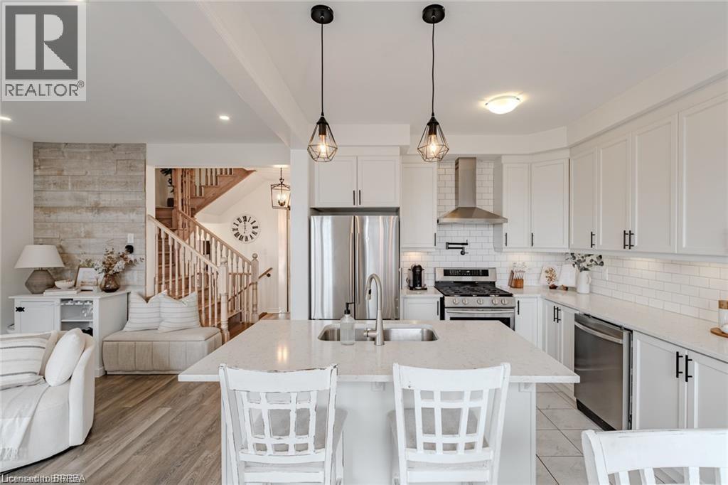 Welcome to your beautifully upgraded freehold townhouse, a perfect blend of style, comfort, and functionality. This spacious 3-bedroom, 3-bath home boasts approximately 1,500 sq. ft. of open-concept living with thoughtful finishes throughout. The modern kitchen features upgraded cabinetry, luxurious quartz countertops, high-quality appliances, and a large island ideal for cooking, gathering, and entertaining. Quartz surfaces continue throughout the home, adding elegance to every space. The inviting living room showcases a custom accent wall and a cozy fireplace, creating a warm ambiance for relaxing evenings. Step outside to a finished backyard oasis, complete with a brand-new deck and professional landscaping—perfect for outdoor dining and summer fun. With upgrades in every room and convenient garage access to a private one-car garage, this move-in-ready home offers the ideal setting for families or professionals seeking a turnkey property in a desirable location and quick highway access (id:51158)