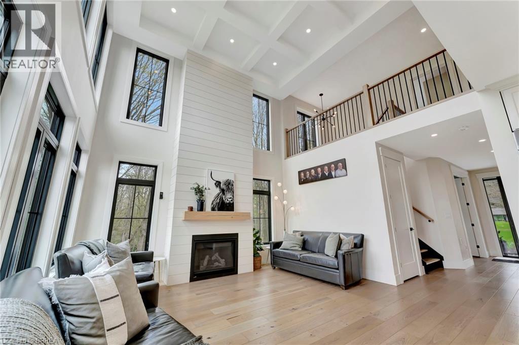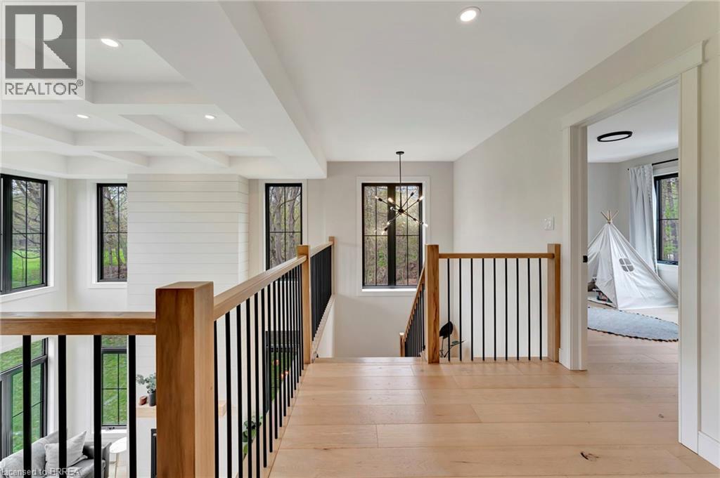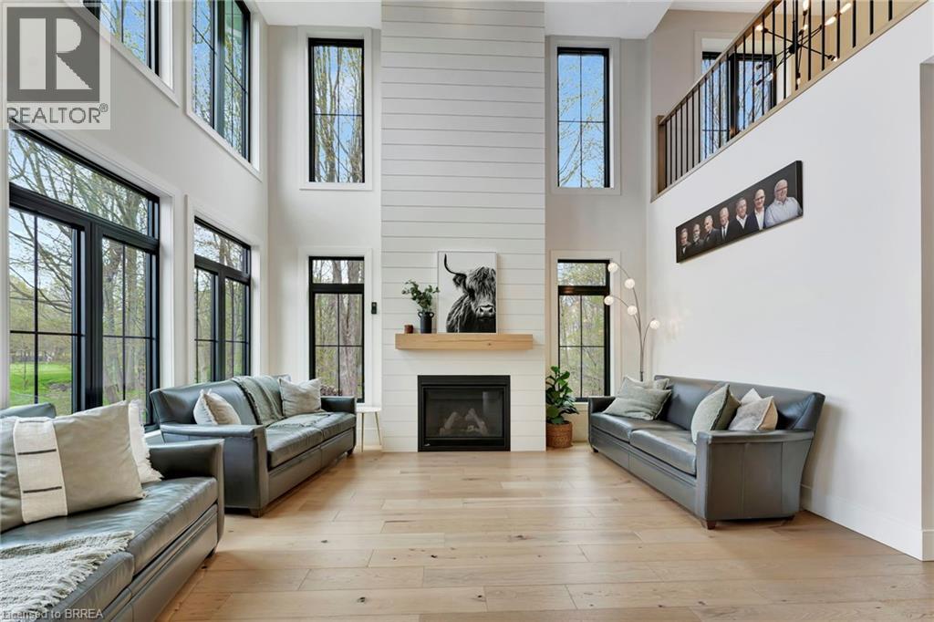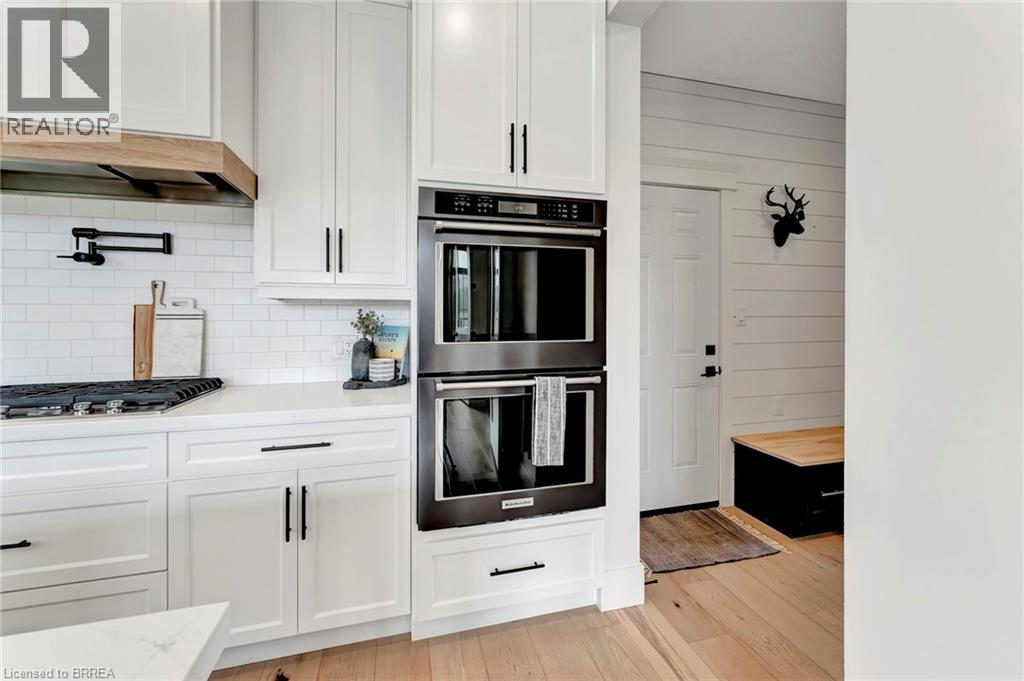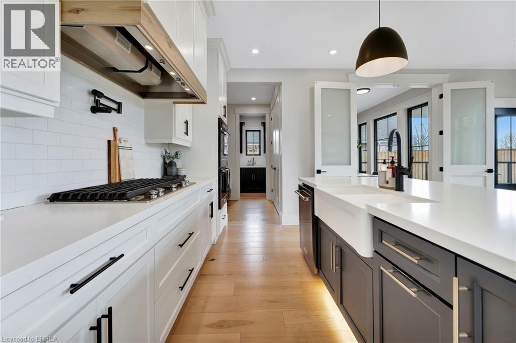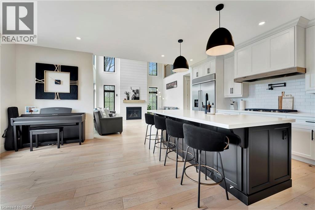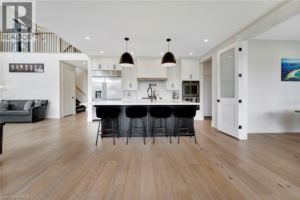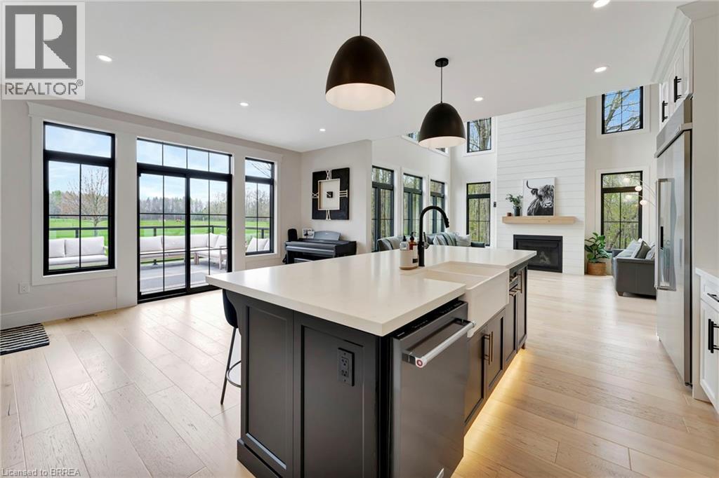 This stunning custom-built home blends modern elegance with practical living, offering high-end finishes and generous space inside and out. From the moment you enter the bright, welcoming foyer, you're greeted by an oversized walk-in closet that doubles as a mudroom—perfect for keeping everything organized. Just off the entryway, a spacious home office offers an ideal work-from-home setup, complete with ample lighting and wiring for a multi-camera security system. The main floor boasts an airy open-concept layout with vaulted ceilings and striking cathedral windows that flood the living room with natural light. A propane fireplace adds warmth and charm, creating a perfect space for both relaxing and entertaining. At the heart of the home is a chef-inspired kitchen featuring a massive quartz island that serves as a prep area and social hub. High-end appliances include a five-burner gas cooktop, double wall ovens, a stainless steel refrigerator, and a matching dishwasher. Thoughtful details like a pot filler, soft-close cabinetry, custom lighting, and a separate canning/prep room enhance both style and function. The adjoining dining area overlooks the private backyard and tranquil ravine, offering a beautiful setting for everyday meals and special gatherings. Upstairs, you’ll find three spacious bedrooms, a full bathroom, and a convenient laundry room. The luxurious primary suite features a walk-out balcony with peaceful views of a nearby horse paddock and hot tub—perfect for quiet mornings or evenings. The spa-like ensuite includes a deep soaker tub, double rainfall shower, and large walk-in closet for a true retreat experience. The fully finished basement offers even more living space, with a large family room, fourth bedroom, and full bathroom—ideal for guests or extended family. Additional highlights include heated garage floors, premium finishes throughout, and a serene, natural setting that offers privacy and beauty. (id:51158)