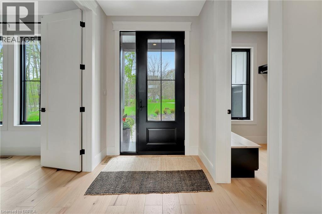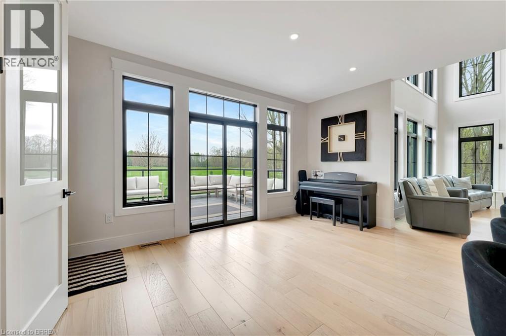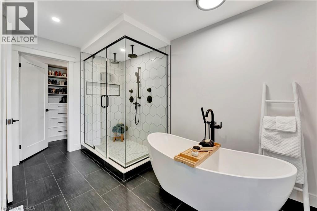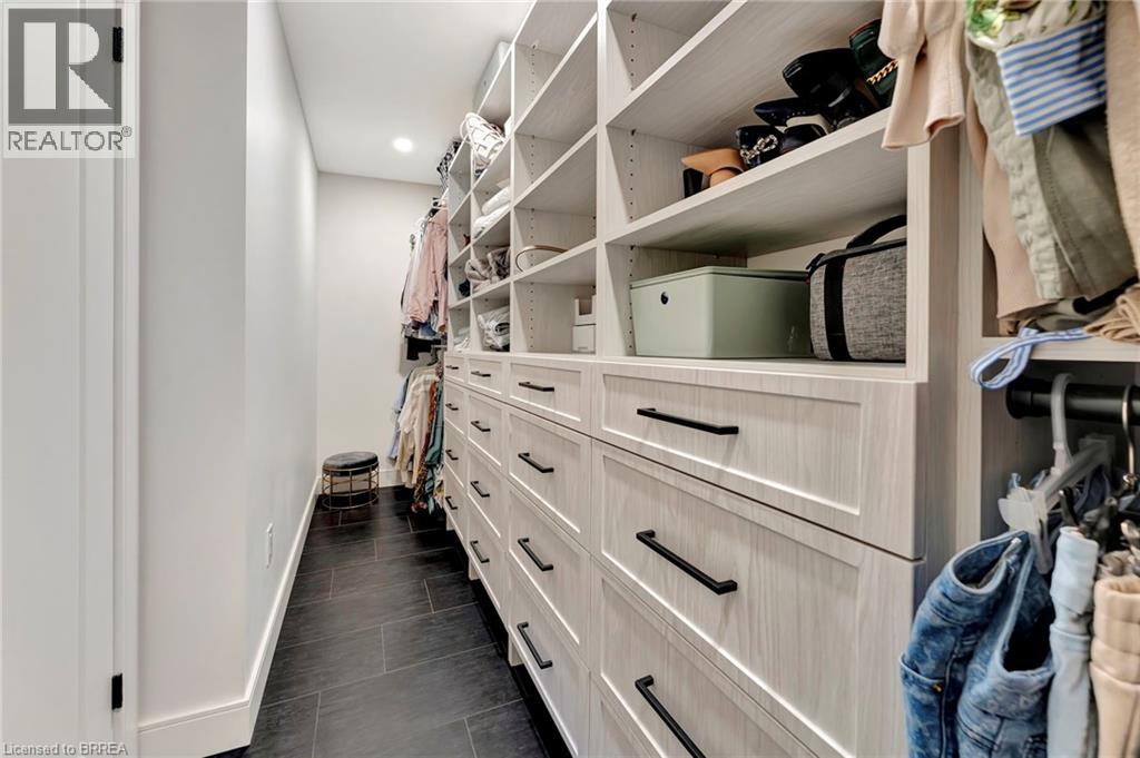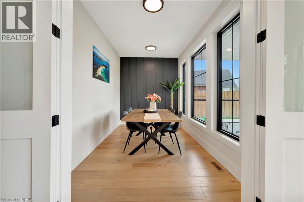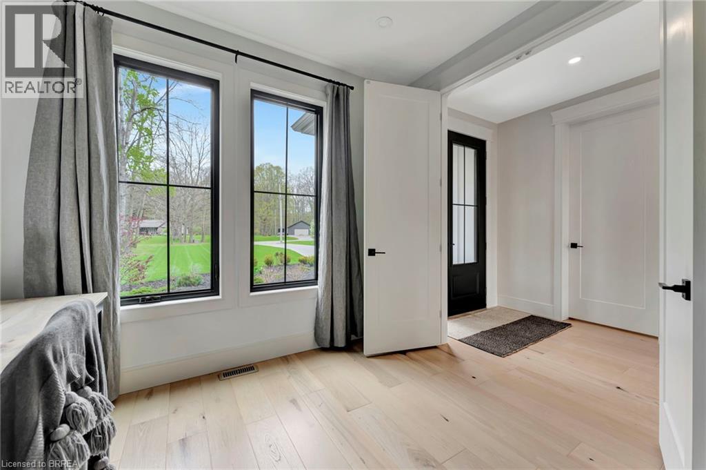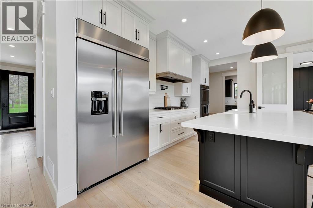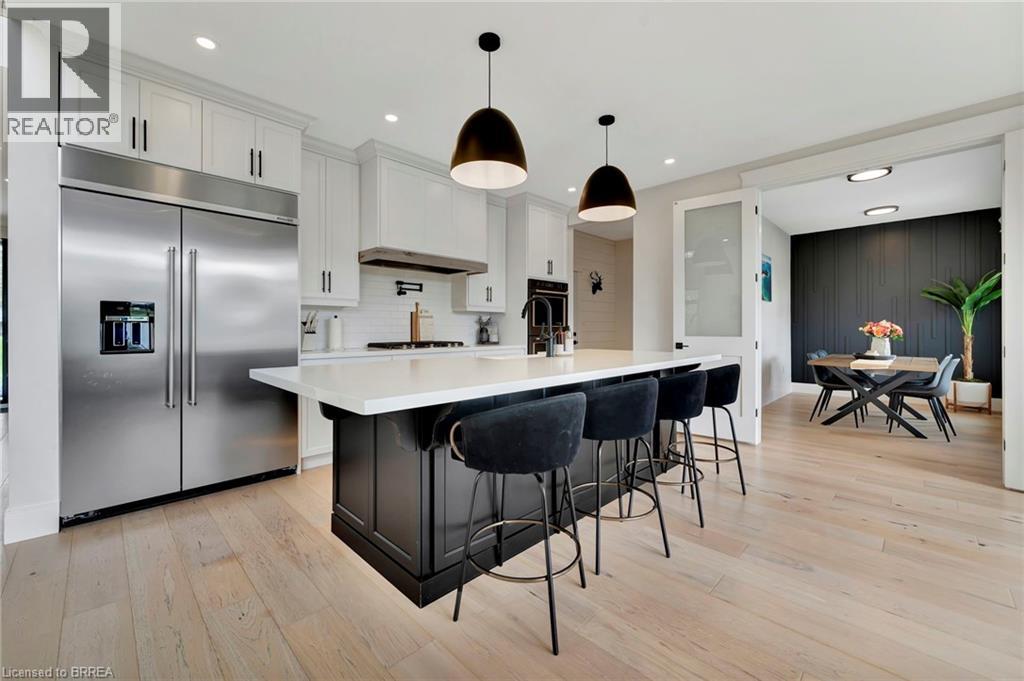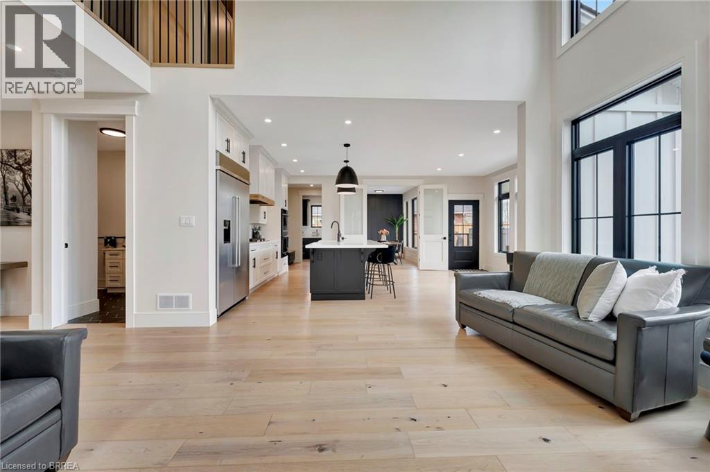 This stunning custom-built home blends modern elegance with practical living, offering high-end finishes and generous space inside and out. From the moment you enter the bright, welcoming foyer, you're greeted by an oversized walk-in closet that doubles as a mudroom—perfect for keeping everything organized. Just off the entryway, a spacious home office offers an ideal work-from-home setup, complete with ample lighting and wiring for a multi-camera security system. The main floor boasts an airy open-concept layout with vaulted ceilings and striking cathedral windows that flood the living room with natural light. A propane fireplace adds warmth and charm, creating a perfect space for both relaxing and entertaining. At the heart of the home is a chef-inspired kitchen featuring a massive quartz island that serves as a prep area and social hub. High-end appliances include a five-burner gas cooktop, double wall ovens, a stainless steel refrigerator, and a matching dishwasher. Thoughtful details like a pot filler, soft-close cabinetry, custom lighting, and a separate canning/prep room enhance both style and function. The adjoining dining area overlooks the private backyard and tranquil ravine, offering a beautiful setting for everyday meals and special gatherings. Upstairs, you’ll find three spacious bedrooms, a full bathroom, and a convenient laundry room. The luxurious primary suite features a walk-out balcony with peaceful views of a nearby horse paddock and hot tub—perfect for quiet mornings or evenings. The spa-like ensuite includes a deep soaker tub, double rainfall shower, and large walk-in closet for a true retreat experience. The fully finished basement offers even more living space, with a large family room, fourth bedroom, and full bathroom—ideal for guests or extended family. Additional highlights include heated garage floors, premium finishes throughout, and a serene, natural setting that offers privacy and beauty. (id:51158)