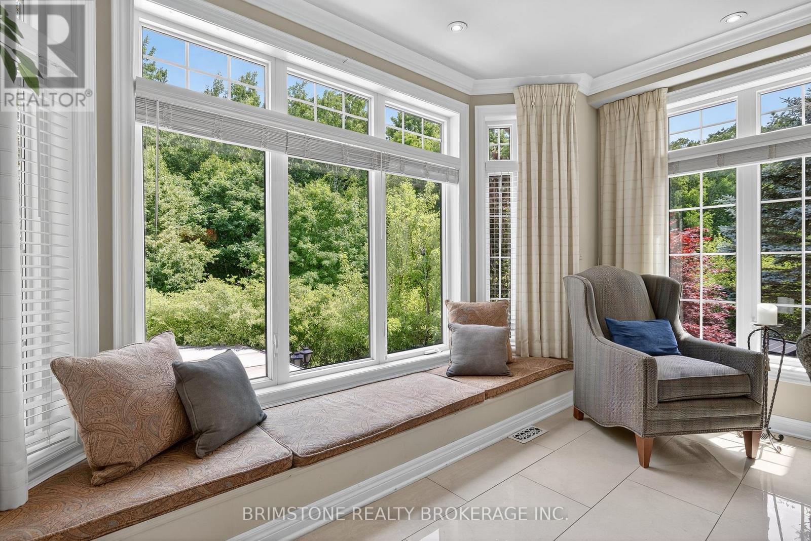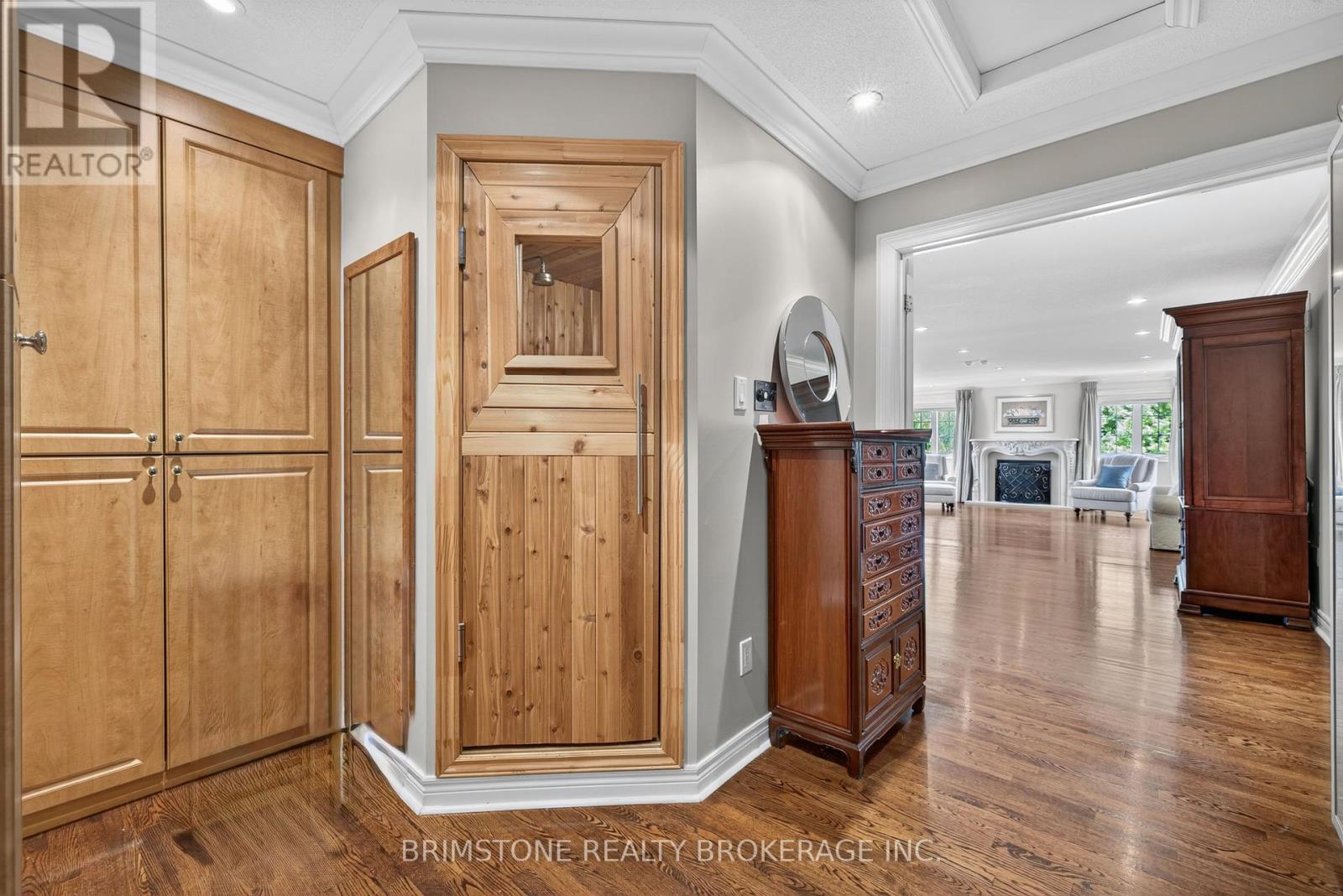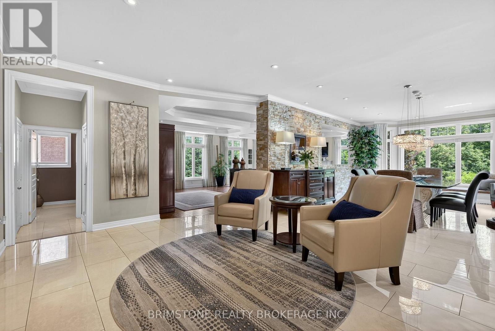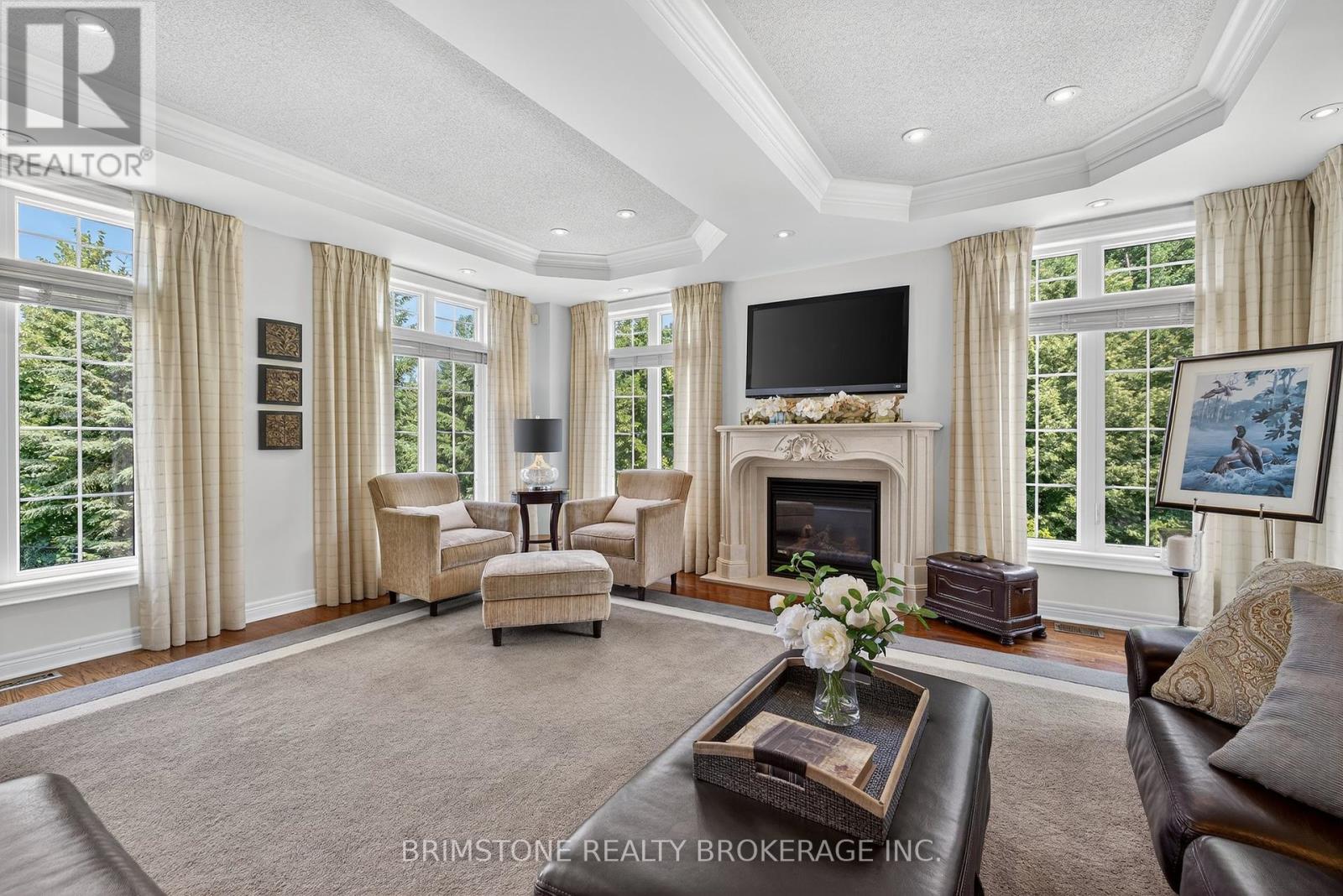 Backing directly onto North Maple Regional Park, this custom-built home offers over 5,700 sq ft of finished space and the rare feeling of complete privacy all while being just minutes from the city. Surrounded by mature trees, the backyard feels like a hidden escape, where nature is your only neighbor. Inside, thoughtful design and upscale finishes define every room. With four spacious bedrooms upstairs and two additional bedrooms in the basement, the layout is ideal for families or multigenerational living. The primary suite includes a private sauna for spa-like relaxation, while heated floors extend through the kitchen, laundry rooms, basement, and all upper bathrooms. Travertine, marble, and oak hardwood add timeless elegance throughout.The main floor features 9-foot ceilings and coffered details that create a grand yet welcoming atmosphere. Smart home features include 8 exterior cameras, a smart thermostat, and a full security system. Seven fireplaces provide warmth and ambiance across all levels.The finished basement offers over 2,300 sq ft of flexible space, complete with a second laundry room and a dedicated room roughed-in and ready for a full kitchen perfect for a private suite, rental opportunity, or extended entertaining. Outside, the Endless Pool exercise system with hydraulic cabana adds a unique wellness element to this already impressive home.With a new roof (2023), new A/C, a finished garage, and no detail overlooked, this is a rare opportunity to enjoy luxury living surrounded by nature just 6 km from Cortellucci Vaughan Hospital and close to everything Vaughan has to offer. (id:51158)
