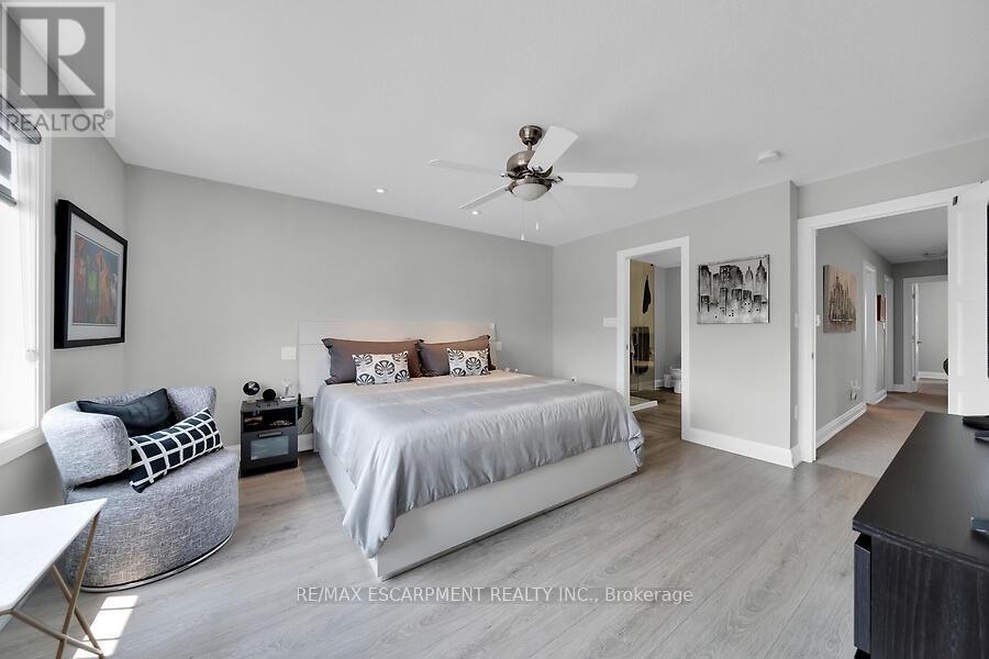 This custom-designed 1,700+ sq. ft. freehold end-unit townhome sits on an oversized lot and offers a perfect blend of style and functionality. The open-concept main floor boasts a spacious dining area with a servery/coffee bar/wine cooler, a bright white kitchen with granite counters and newer appliances, and a stunning great room with an electric fireplace feature wall and custom built-ins - an ideal setting for entertaining. Upstairs, you'll find a versatile loft, a full main bath, and three bedrooms, including a primary suite with walk-in closet and private 4-piece ensuite. The lower level is unfinished, Step out from the great room to a tiered patio overlooking a private, fenced backyard with no rear neighbours and direct access to the Felker Falls trail system. Additional highlights include double-wide parking and a prime location within walking distance to schools, parks, Valley Park Recreation Centre, and scenic trails, plus just minutes to shopping, restaurants, the Red Hill, LINC, and QEW for easy commuting. (id:51158)