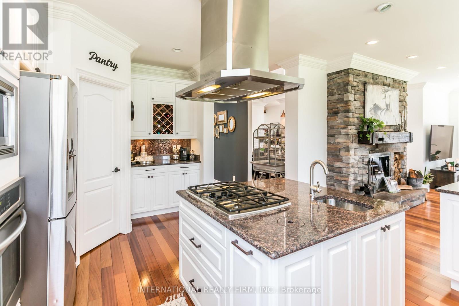 GORGEOUS UNIQUE CUSTOM BUILT (2003) 4 BED/ 4 BATH ESTATE HOME LOCATED ON A QUIET CUL-DE-SAC IN THE PRESERVED SUBURBAN HAMLET OF SCENIC CHURCHVILLE ON THE MISSISSAUGA / BRAMPTON BORDER. ENJOY THE RURAL CHARACTER OF THIS DISTINCTIVE CREDIT RIVER VALLEY AREA WITHIN STEPS OF THIS ELEGANT & COMFORTABLE FAMILY HOME W/ OVERSIZED DETACHED DOUBLE GARAGE SET ON OVER 1/2 AN ACRE OF PICTURESQUE & PRIVATE MATURE LOT. SPECTACULAR & BRIGHT FAMILY SIZED KITCHEN WITH W/I PANTRY, B/I APPLIANCES & CENTRE ISLAND OVERLOOKS GRAND LIVING AREA W/ IMPRESSIVE STONE FIREPLACE & AN ABUNDANCE OF WINDOWS & NATURAL LIGHT. BEAUTIFUL SEPARATE FORMAL DINING ROOM W/ HIGH CEILING & INCREDIBLE 2 FLOOR STONE FIREPLACE. LARGE MAIN FLOOR NANNY / IN-LAW SUITE W/ 4PC ENSUITE BATH, FAMILY ROOM / OFFICE W/ BUILT-IN CABINETRY & STYLISH BARN DOOR CLOSURE, MAIN FLOOR LAUNDRY & 2PC WASHROOM COMPLETE THE MAIN LEVEL. SPACIOUS MAIN BEDROOM W/ 5PC ENSUITE & W/I CLOSET + 2 WELL-DESIGNED BEDROOMS W/ 4PC BATHROOM ON 2ND LEVEL. LOWER LEVEL IS COMPRISED OF A MASSIVE RECREATION AREA W/ COZY STONE FIREPLACE & AN OVERSIZED STORAGE / UTILITY AREA. THE MATURE PROPERTY BACKS ONTO GREENSPACE & IS IDEALLY LOCATED AT THE END OF THE CUL-DE-SAC FOR PREMIUM PRIVACY & HAS A CLEAR VIEW. CLOSE TO ALL MAJOR ROUTES & GREAT SCHOOLS INCLUDING FRENCH IMMERSION. TRAIN TRACK BEHIND HOME IS INOPERABLE & HAS BECOME A WALKING TRAIL. **40 YR. ROOF SHINGLES (2020), A/C, FURNACE , IRRIGATION SYSTEM, TANKLESS WATER & WHOLE HOME WATER FILTRATION(ALL 2018), HEATED BATHROOM FLOORS, EAVESTROUGH GUARDS, GENERAC GENERATOR, SECURITY SYSTEM INCLUDING CAMERAS** (id:51158)