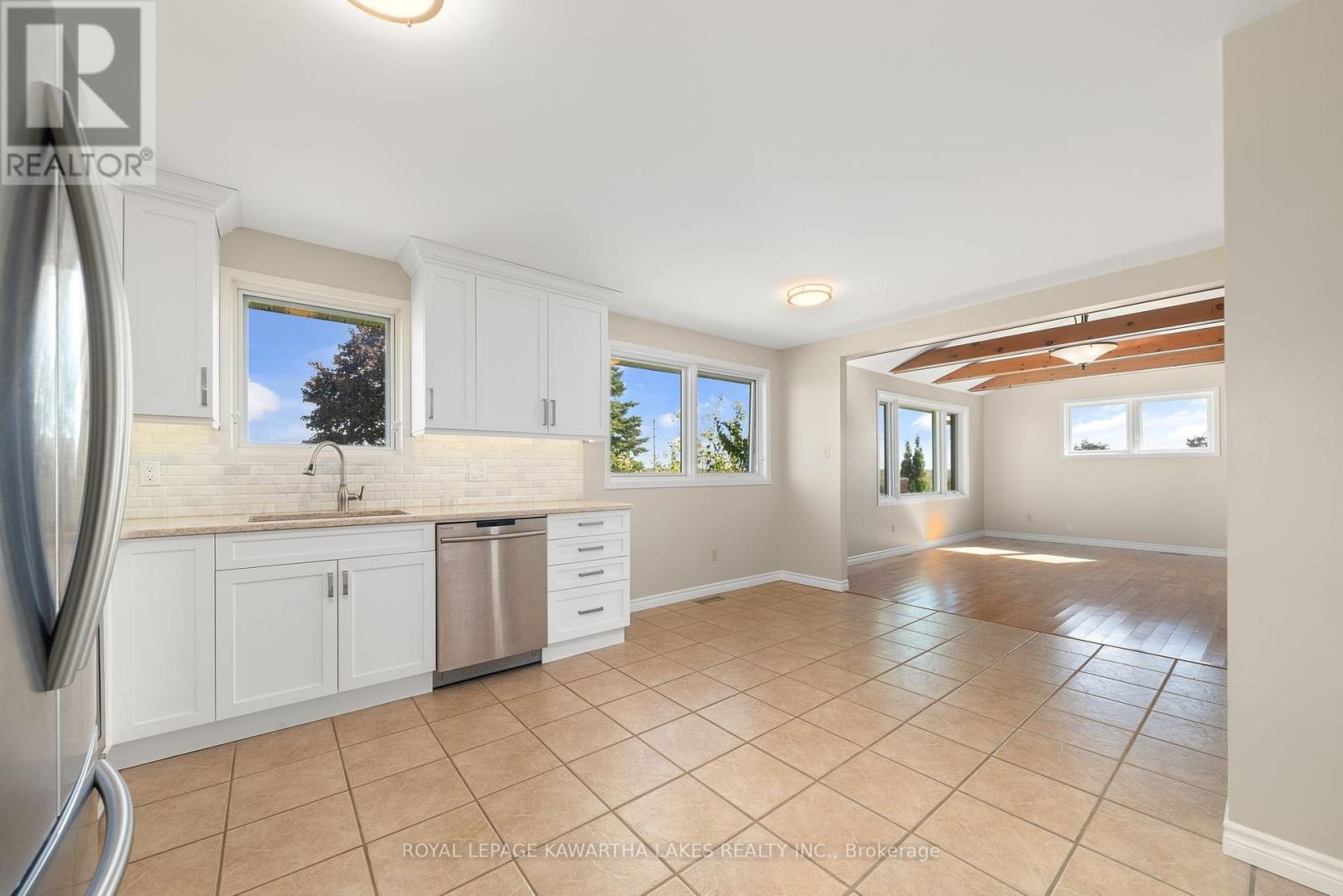 Welcome to this charming 2 + 1 bedroom raised brick bungalow, perfectly perched on a spacious lot with hilltop views overlooking Peterborough! Step inside to find a bright and inviting main floor featuring large vinyl windows that fill the home with natural light. The living room's vaulted ceiling adds an airy feel, while the updated kitchen complete with stainless steel appliances is both stylish and functional.The lower level is partially finished, offering a bright family room, an additional bedroom, and a 3-piece bathroom, providing plenty of space for guests, hobbies, or family living. Outside, you'll find a double detached garage with a woodstove, a handy garden shed, and lots of room to relax or play in the generous yard. All this, just minutes to Hwy 115 making it a perfect spot for commuters who want peaceful living without sacrificing convenience. (id:51158)
