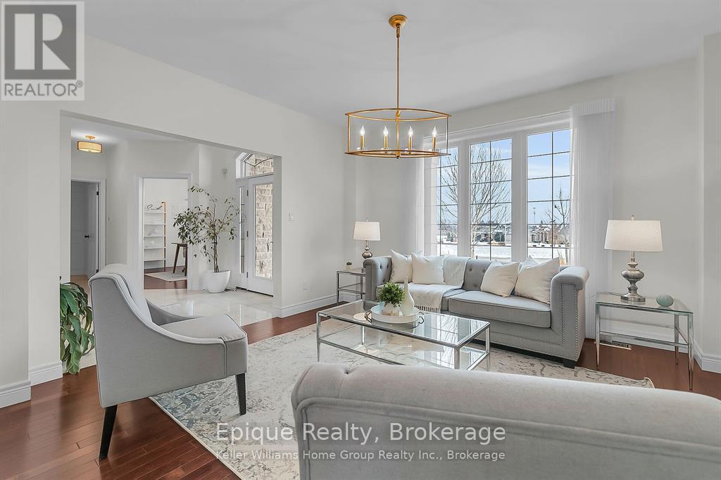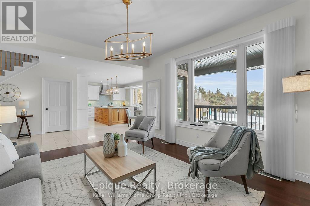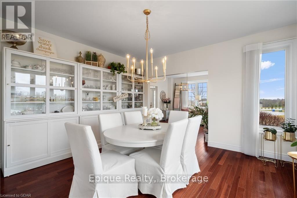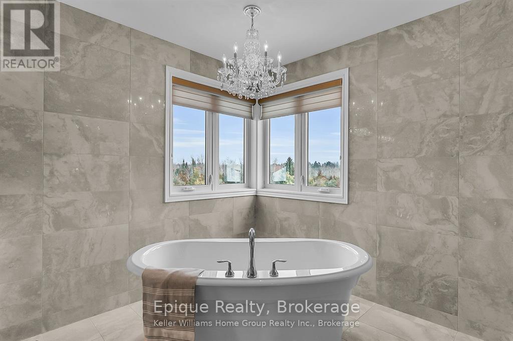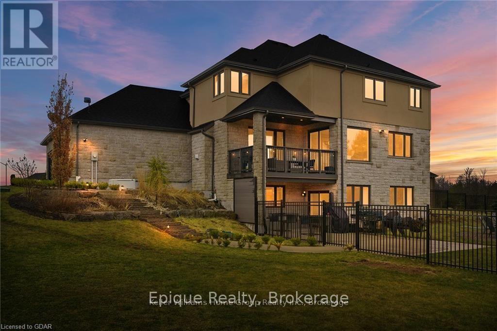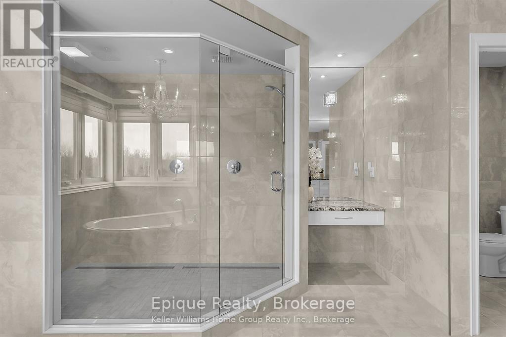 Luxury lives in this Thomasfield-built trophy home in coveted Crewson Ridge Estates. Situated on 3.4 acres of conservation-backed land, it features 6 bedrooms, 5 bathrooms, and over 5,200 sq.ft. of finished space. Highlights include 2 kitchens, a heated saltwater pool (built in 2023) with an automated safety cover, geothermal heating, and a lavish primary suite with an 8-piece ensuite, walkout basement w/ rental potential incl. 2 add'l bedrooms and a separate entrance. A backup generator and energy-efficient systems complete this turnkey estate. A two-story grand entrance with 9' ceilings and luxurious finishes, including heated marble floors and scratch-resistant engineered cherry wood floors.* Custom Kitchen: Paragon-designed with quartz counters, slab backsplash, soft-close cabinetry, extraordinary storage space, and a striking massive cherry wood island. Outfitted with Brigade commercial-grade appliances for a chefs dream.* Living & Dining Areas: Spacious and elegant, designed for entertaining.Family Room: Cosy gathering space featuring shiplap feature wall and gas (propane) fireplace. Upper Floor:* Primary Suite: Features two walk-in closets, an 8-piece ensuite with heated floors, and a versatile adjacent space for an office or nursery.* Bedrooms: Three additional generously sized bedrooms, offering ample privacy and comfort for family or guests. Walkout Basement:* Self-Contained Living Space: Offers 1,823 sq. ft. with 9' ceilings, two bedrooms, two bathrooms, and a full kitchen with quartz counters. Large above-grade windows, a family room, office or gym space, and a separate entrance, ideal for rental or multi-generational livingOutdoor Amenities: Heated inground saltwater pool with an automated safety cover, pool cabana, lush conservation-backed 3.4-acre property.This exquisite estate seamlessly blends elegance, comfort, and functionality, perfect for luxurious living. **EXTRAS** Generac generator (id:51158)