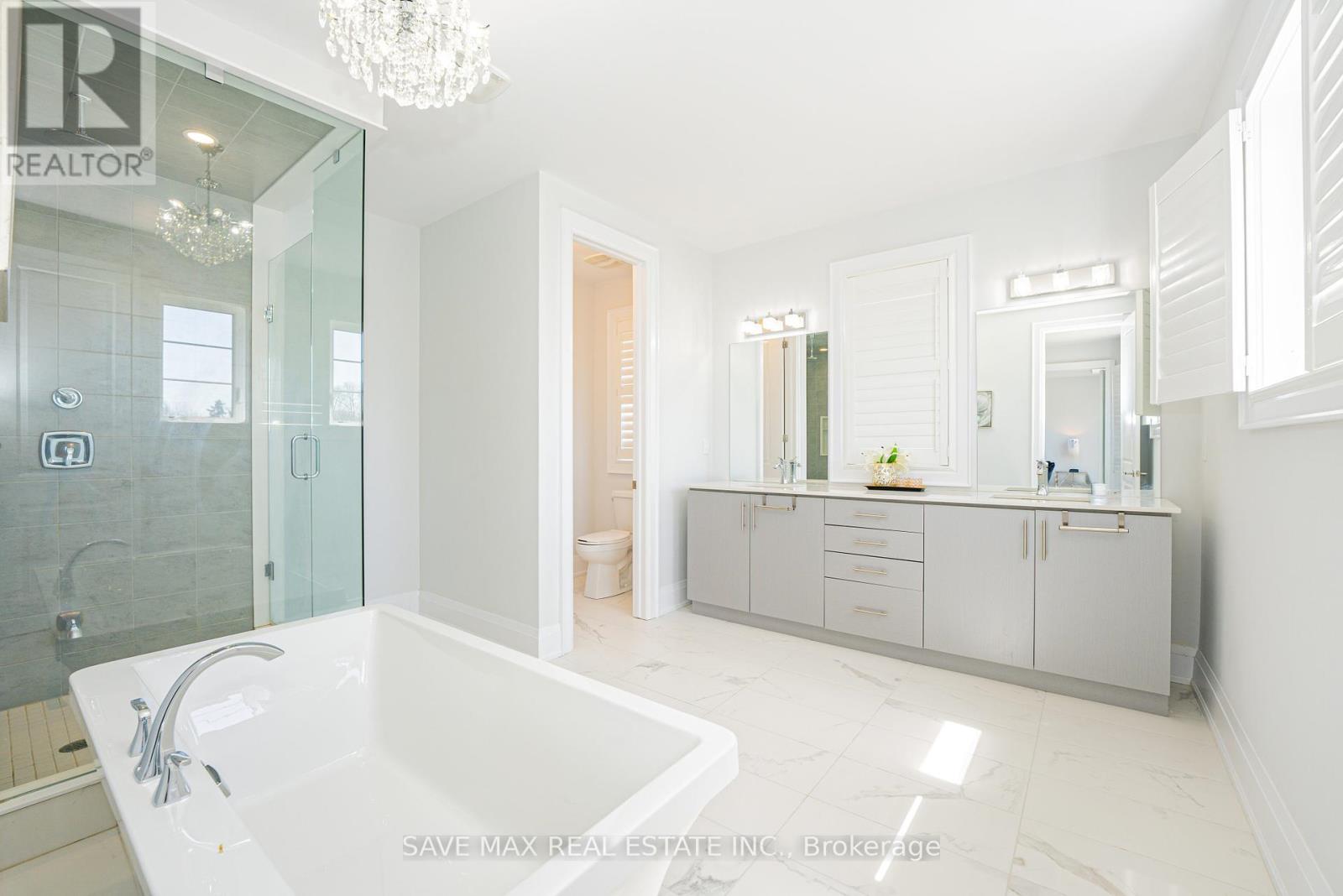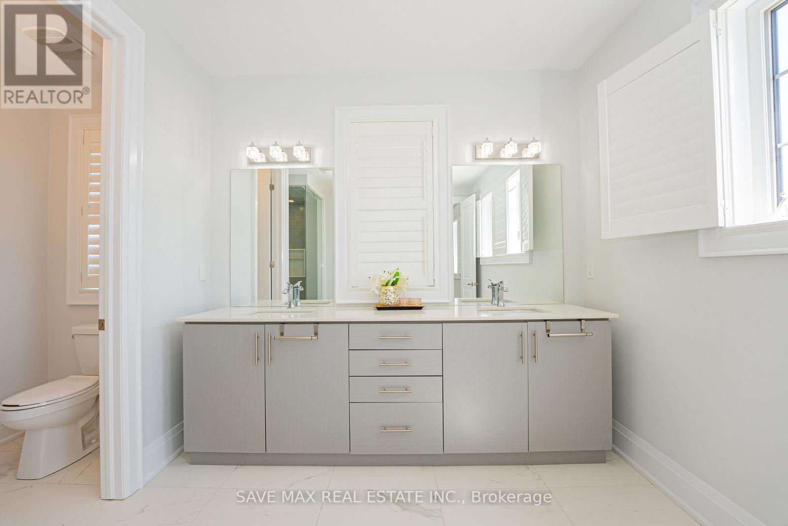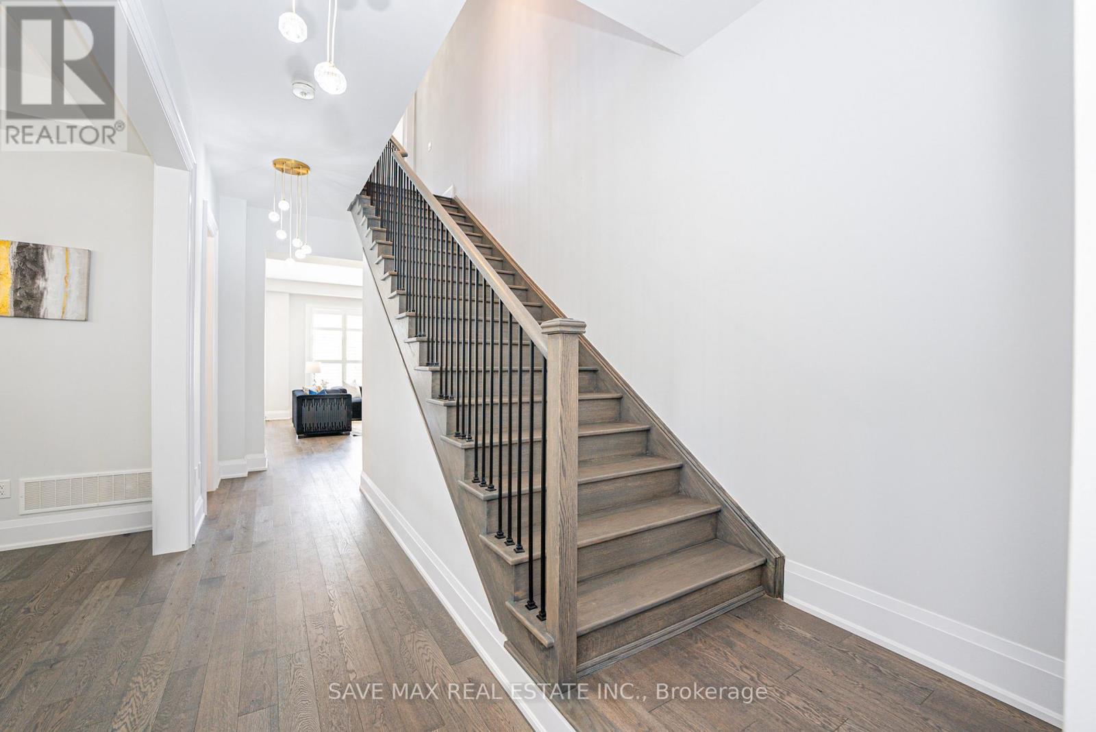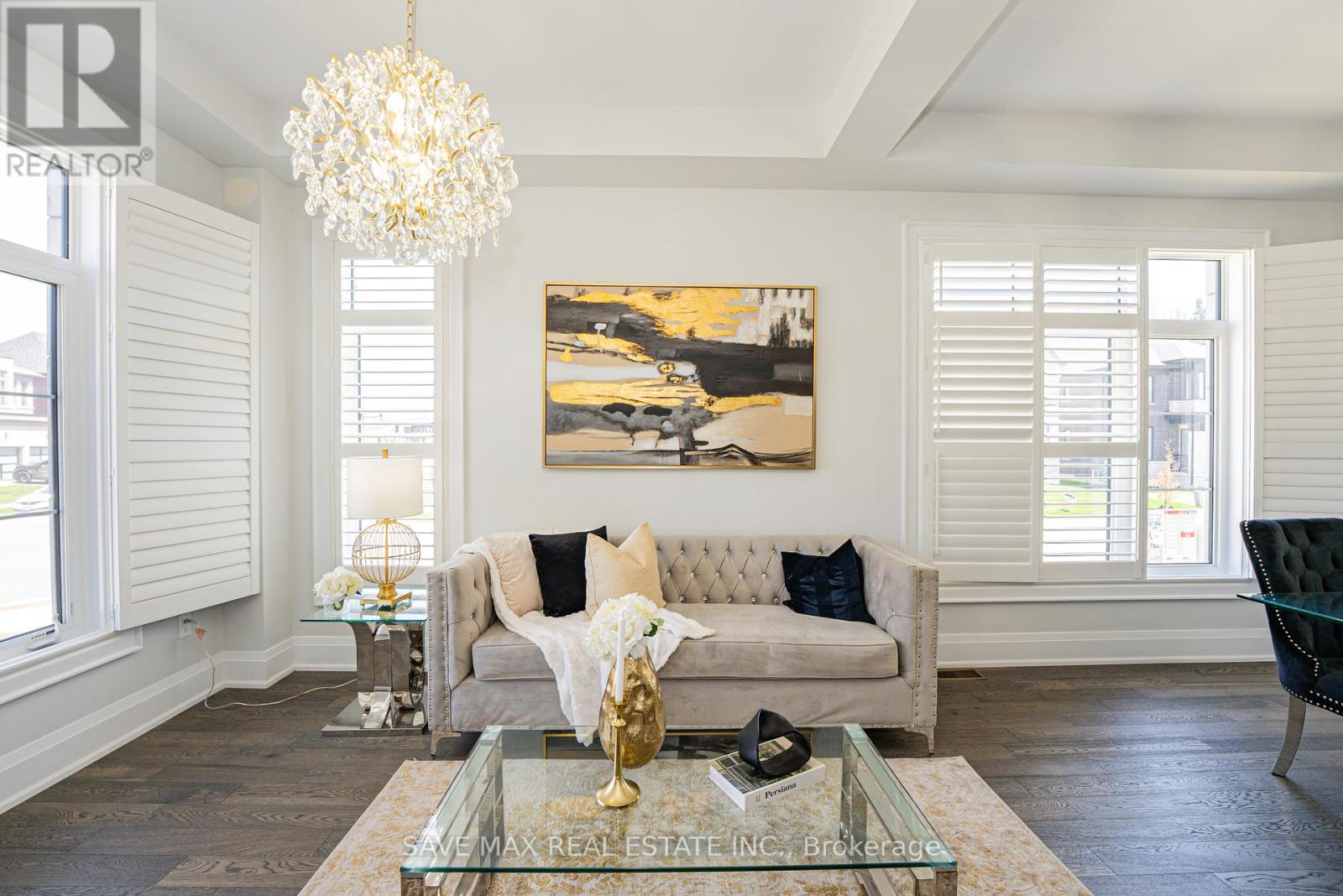 True luxury living! Stunning detached on a premium corner lot with premium upgrades; Impressive entry with high Foyer; Living/Dinning room with coffered ceiling; Chef delight kitchen with 9 feet island, extended cabinets with custom built hood, luxurious backsplash, porcelain tiles, walk through butter's pantry with built-in beverage fridge; Large breakfast area with French doors walkout to the oversized fenced backyard; Family room with doubled sided gas fireplace with office; Soaring 10 Feet smooth ceiling on main floor; The oak staircase leads to second floor, extra large prime bedroom with custom built walk-in closet, 6 piece ensuite with upgraded shower; 2nd and 3rd bedrooms with 5 piece semi-ensuite; 4th bedroom with 4 piece ensuite and walk-in closet; Hardwood floors and California Shutters throughout, upgraded light fixtures, complete with exterior pot lights, hardwired security cameras and inground sprinkler system; Quartz countertop throughout ; 3 Car tandem garage; List goes on and on... NOT TO MISS (id:51158)