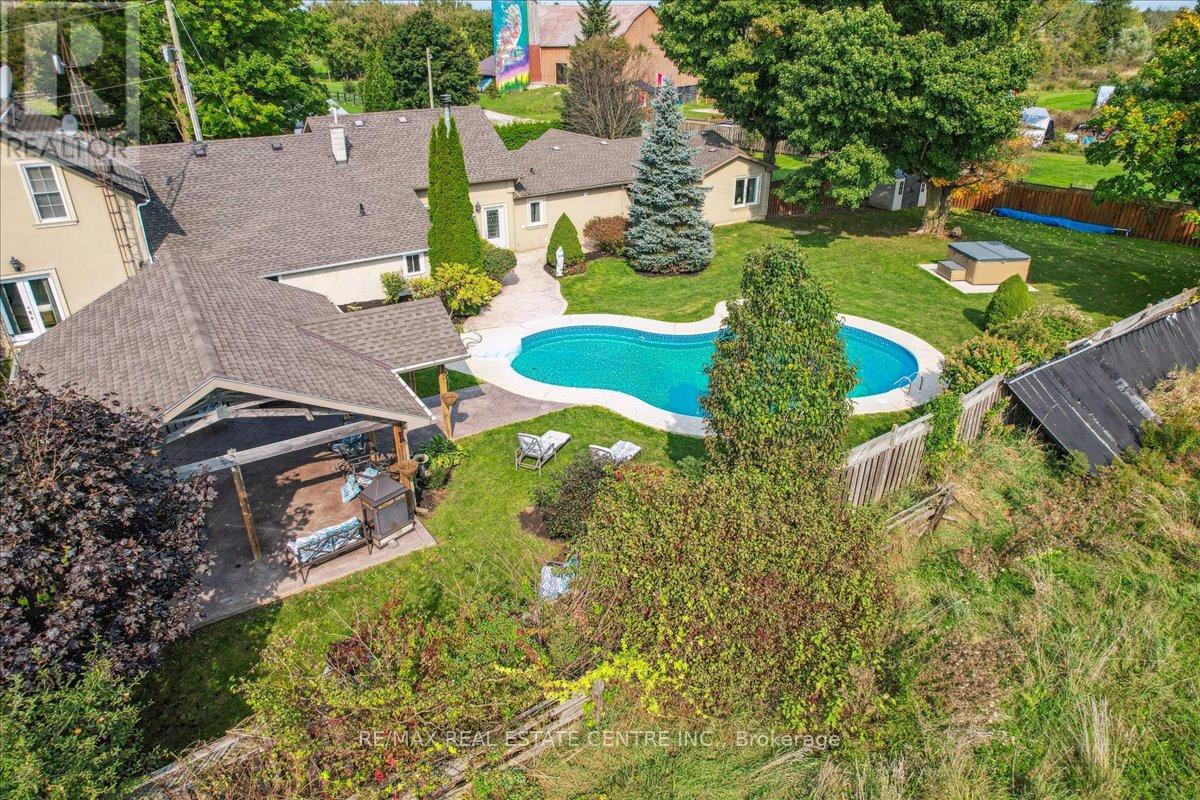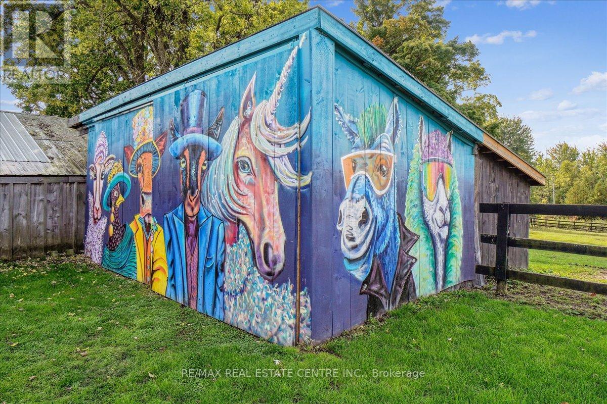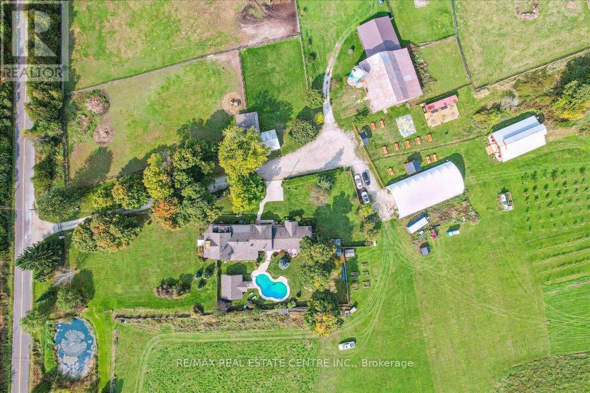 Dream Estate with Endless Possibilities Minutes from the GTA. Discover this exceptional property set on 35 acres of rolling countryside, offering a beautiful home complete with an in-law suite, two kitchens, two living rooms, a great room, and two laundry rooms. Oversized principal rooms create the perfect setting for entertaining, while the spacious kitchen, featuring quartz counters and a large centre island, makes cooking and baking a true pleasure. Step outside to your private retreat: a 20 x 40 inground pool, expansive yard, oversized pavilion, and professionally landscaped gardens. A bright sunroom spans the front of the home, overlooking lush gardens and horse paddocks. Accented with commissioned artwork by a renowned Toronto artist. The property is equally impressive for potential equestrian and agri-business pursuits. Highlights include a 6-stall horse barn, large bank barn with new stabling, orchards, a Mennonite-built marketplace with ice cream and bakery display equipment, a picnic area with stage, extensive paddocks with underground water and power, and a 40 x 80 coverall with lighting. Conveniently close to the GTA, this property also benefits from Halton's new bylaw allowing additional residential units on rural lands unlocking incredible potential. Whether you envision a family estate, farm, market, or Agri-tourism venture, the opportunities here are endless. The retiring vendor welcomes you to bring your vision to this extraordinary, ready-to-go property and make your dream a reality. (id:51158)