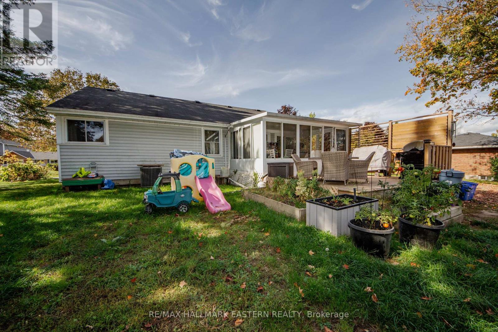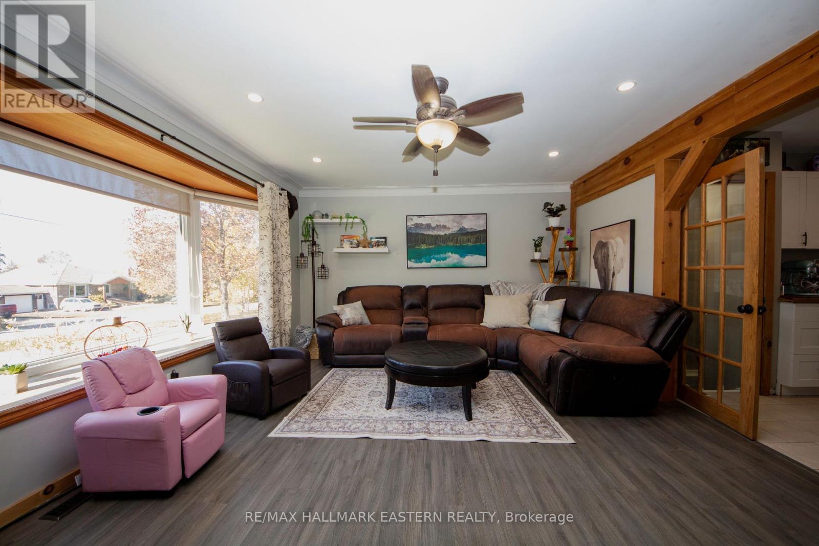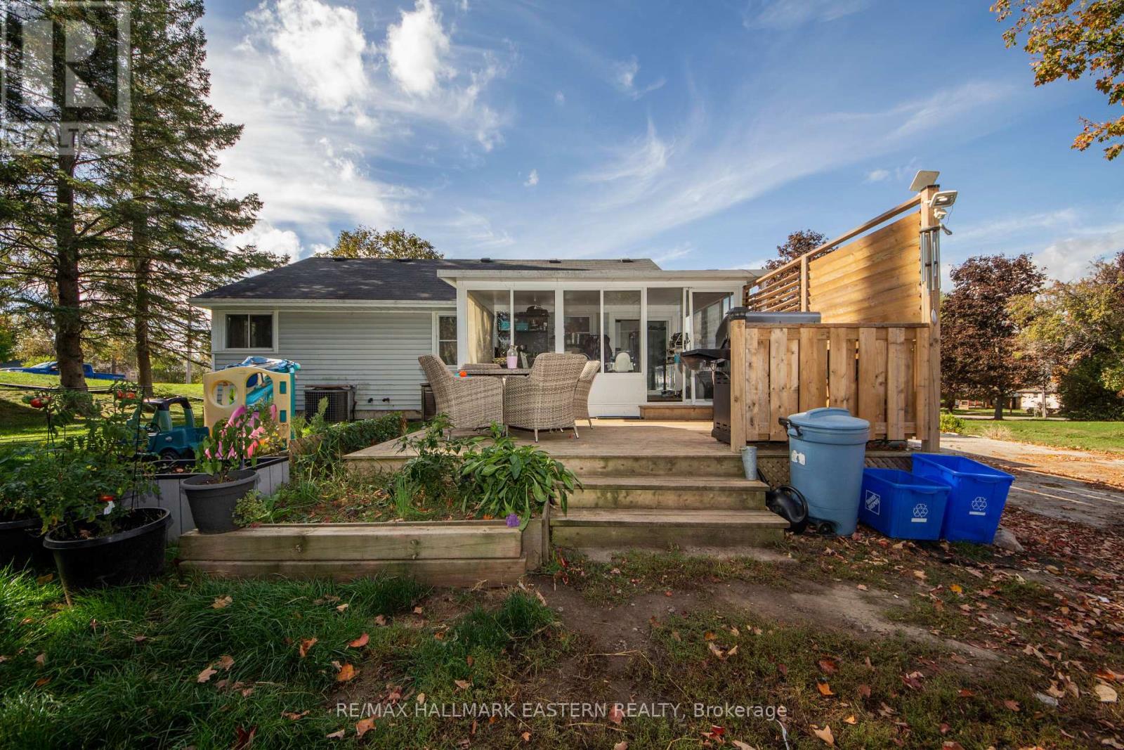 Great location in the hamlet of Bridgenorth. This well-maintained 3-bedroom bungalow offers a bright 3-season sunroom, a kitchen with ceramic tile, and easy-care laminate flooring throughout the rest of the home. The full basement is ready for your finishing touches, providing plenty of potential for additional living space. A Generlink connection on the hydro meter is ready for your generator, ensuring peace of mind during power outages. The newer 24' x 32' insulated and wired shop/garage features a 9' x 11' overhead door, with new siding to be installed in the coming weeks. All of this is within walking distance to Chemong Lake, local shops, and everyday amenities. (id:51158)