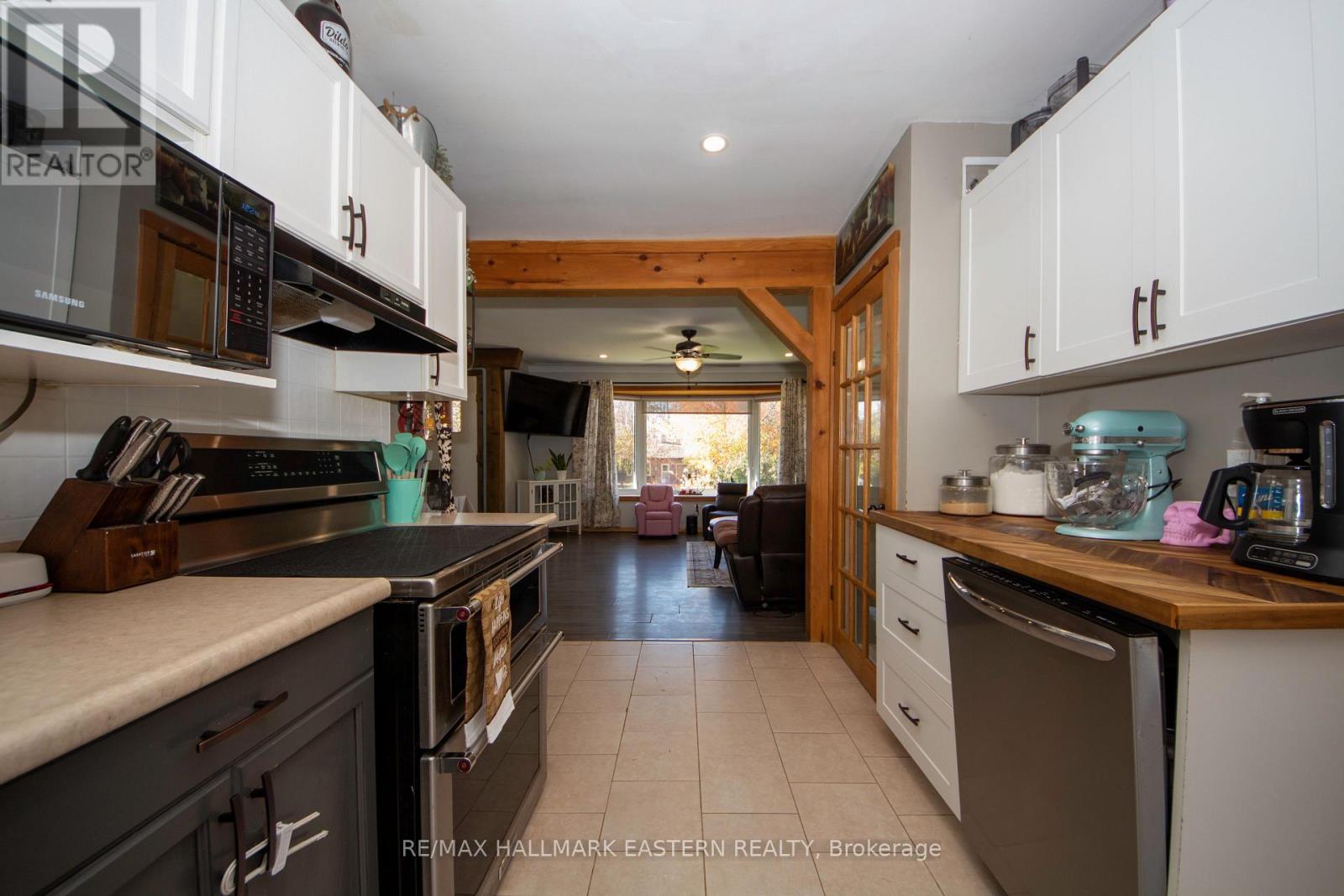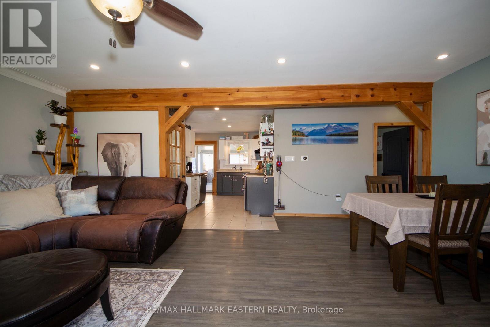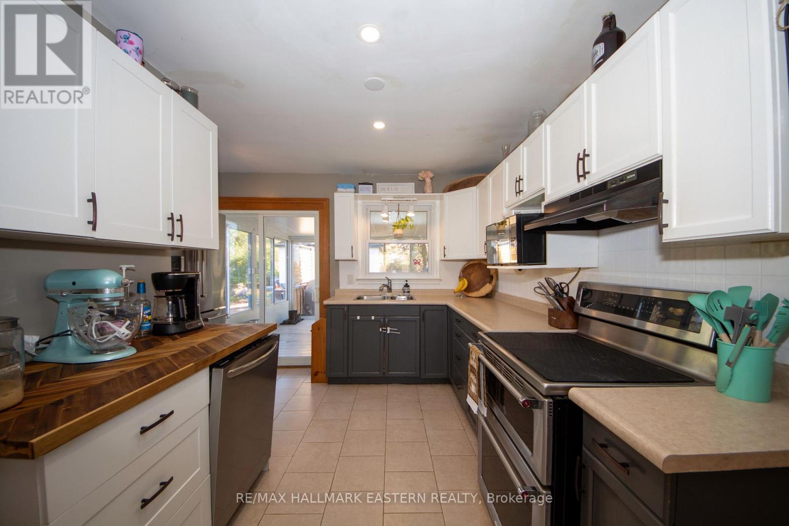 Great location in the hamlet of Bridgenorth. This well-maintained 3-bedroom bungalow offers a bright 3-season sunroom, a kitchen with ceramic tile, and easy-care laminate flooring throughout the rest of the home. The full basement is ready for your finishing touches, providing plenty of potential for additional living space. A Generlink connection on the hydro meter is ready for your generator, ensuring peace of mind during power outages. The newer 24' x 32' insulated and wired shop/garage features a 9' x 11' overhead door, with new siding to be installed in the coming weeks. All of this is within walking distance to Chemong Lake, local shops, and everyday amenities. (id:51158)