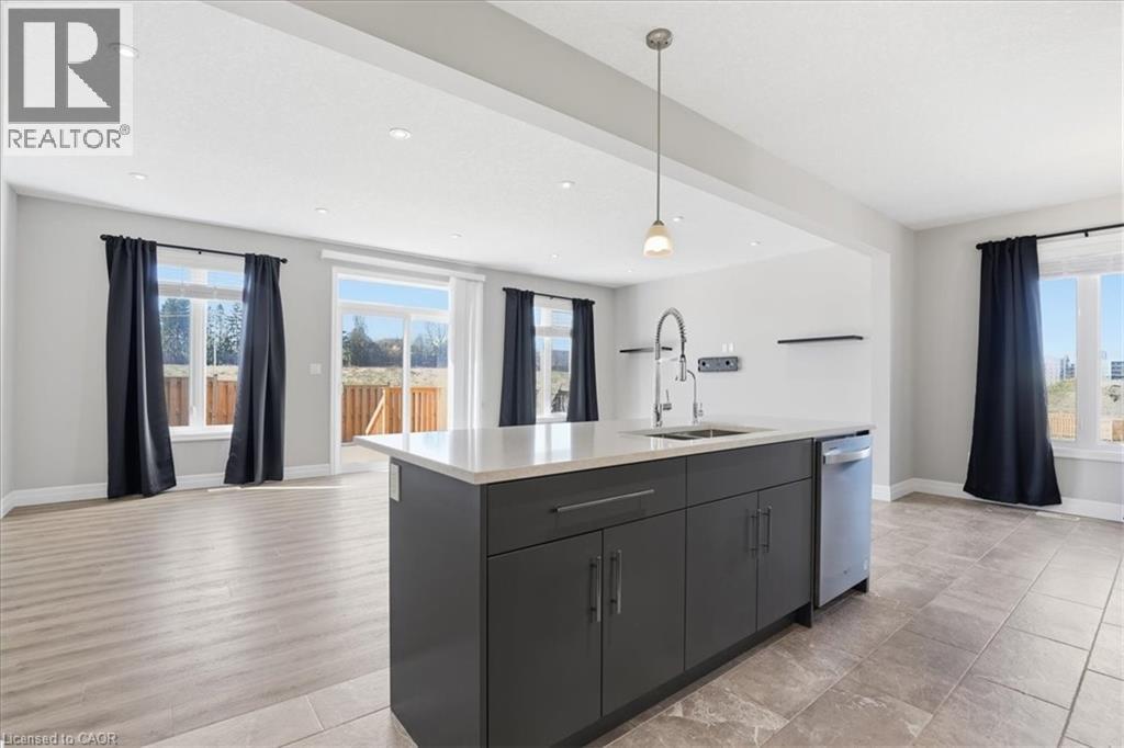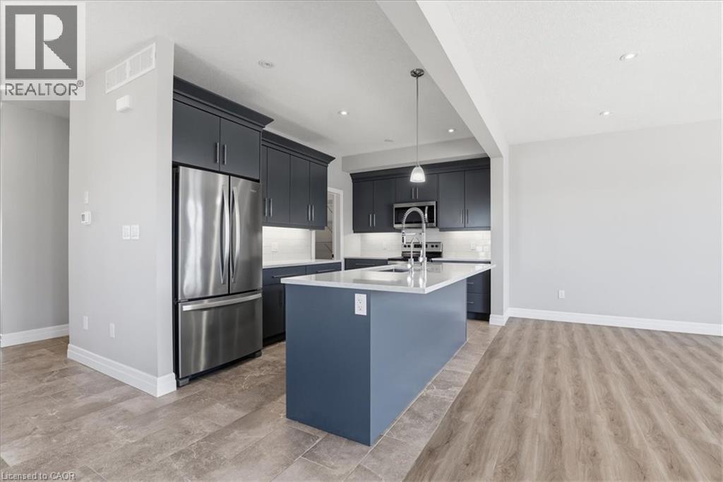 ***END UNIT***MOVE IN READY*** AVAILABLE FOR IMMEDIATE OCCUPANCY *** NON SMOKERS, NO PETS *** SANDRA SPRINGS, KITCHENER'S MOST SOUGHT AFTER NEW SUBDIVISION! STEPS TO PARKS AND TRAILS! APPROX 2015 SQ.FT. 4 BEDROOM, 3 BATHROOMS. Features include; 9 foot ceilings, luxury vinyl flooring, quartz countertops in kitchen and baths, custom kitchen with breakfast bar overhang, soft close drawers, under cabinet lighting, crown molding, separate pantry, full hardwood staircase and pot lights. Second floor features a HUGE MASTER BEDROOM with a large en suite, glass shower door, porcelain tile. Main bathroom with porcelain tile tub/shower combo. Modern move in ready home. SECOND FLOOR LAUNDRY for the added bonus AND DECK, FENCE, ASPHALT DRIVEWAY. Close to the highway, schools, shops, plus restaurants. NON SMOKERS AND NO PETS. (id:51158)