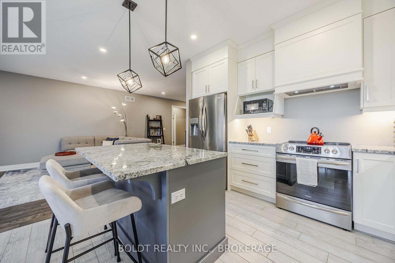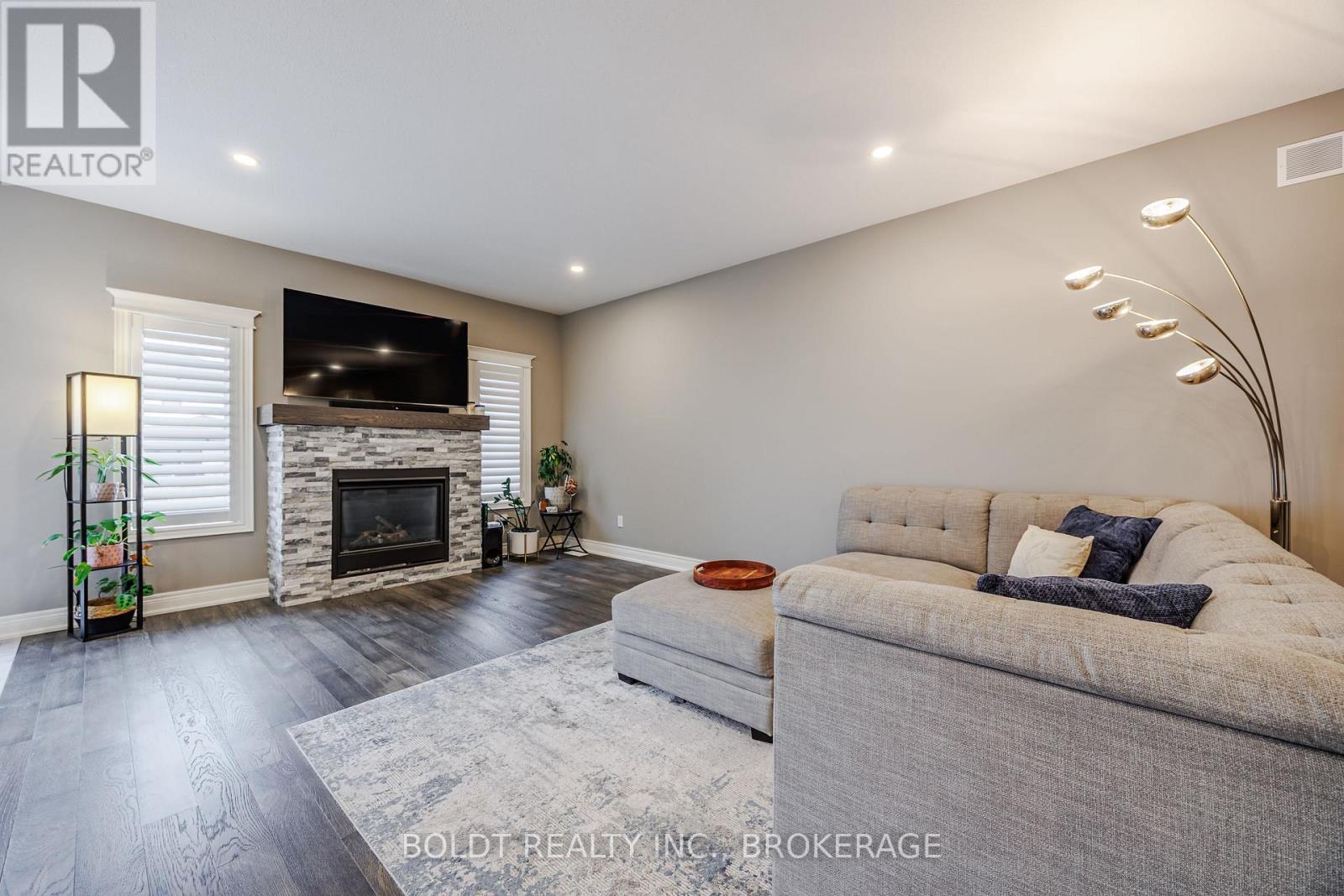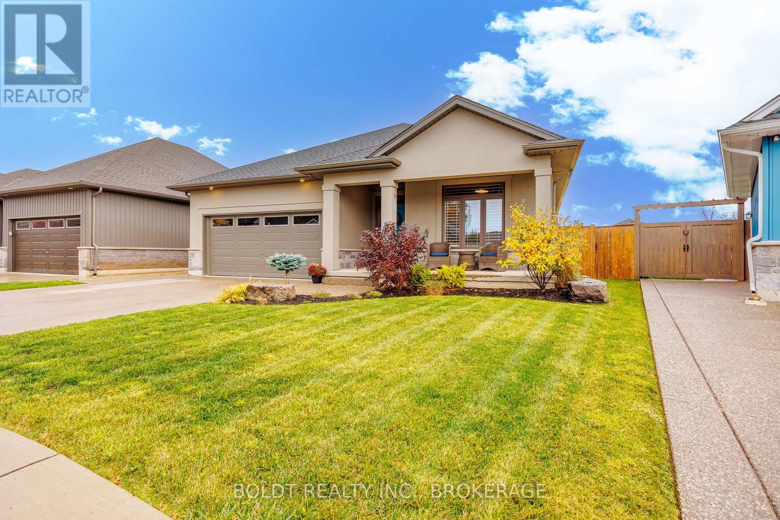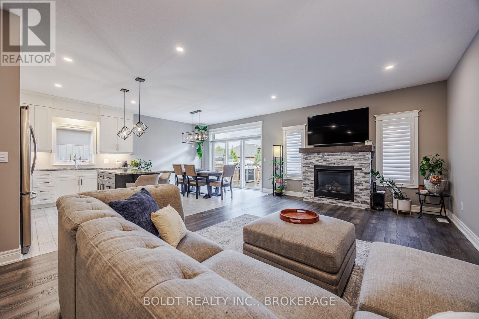 Wonderful open concept, brick bungalow with two main floor bedrooms and two basement bedrooms, custom built model home by premium builder Policella Homes! Nestled on a quiet street, this 1500 square foot bungalow has the latest finishes including 9 foot ceilings, granite countertops, ensuite bathroom, walk-in closet, California shutters, 8 ft patio doors, three bathrooms, soft close cabinetry, main floor laundry and more! The spacious living room features a granite covered gas fireplace and wide plank engineered hardwood which adjoins to a beautiful dining room and a kitchen with eat-in island and high end stainless steel appliances. The fully finished basement adds 2700 square feet of total living space and has a large recreation room with gas fireplace with lots of potential to incorporate a theater room with lots of seating. The basement bedrooms and three piece bathroom finish off the basement along with an exercise and storage room. The patio doors off the dining room lead to a backyard deck for barbequing and a river rock, tall grass decorated concrete patio for extra seating to entertain family and friends! The fully fenced and landscaped backyard with locking gate is ideal for family pets. The two car garage opens to a double wide exposed aggregate driveway! Close to schools, shopping, parks, trails, golfing and many other recreational activities! (id:51158)