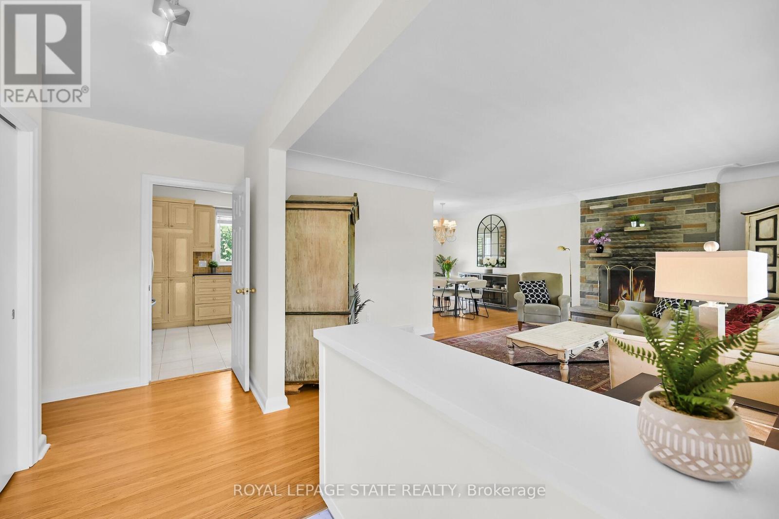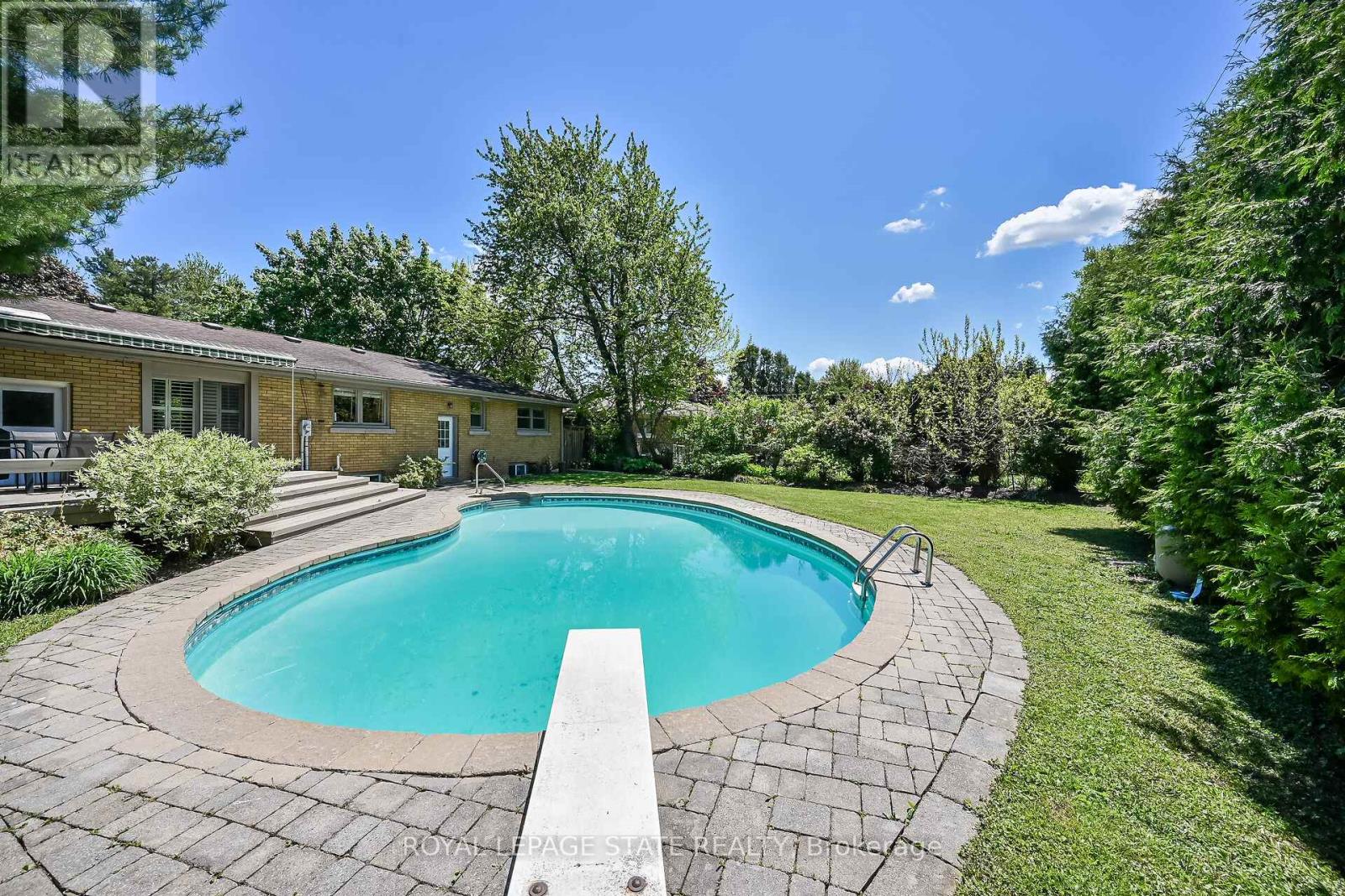 Welcome to this beautifully maintained 3 bedroom, 1.5 bath bungalow that sits on an oversized lot offering the perfect blend of comfort, and outdoor enjoyment. This gem is conveniently located close to schools, parks, Ancaster Memorial Arts Centre, scenic hiking trails, public transit, Meadowlands and is a short walk to the radial trail that leads you to the Ancaster Village where you will find the library, tennis club and unique shopping and dining experiences. An easy commute to McMaster University, downtown Hamilton, area hospitals, and quick access to the 403 and the Lincoln Alexander Parkway. As you step inside you are greeted with a cozy and bright living room w/wood fireplace that wraps around to the open concept kitchen & dining room with sliding doors to the fully fenced backyard featuring a large deck, inground swimming pool and lots of green space. This entire indoor/outdoor living space is set up great for entertaining family & friends or relaxing with a good book after a long day. Primary bedroom includes a 'bonus' 2pc ensuite bath. As you head to the basement you will notice the separate back entrance before you reach the fully finished recreation room with large windows that provide lots of natural light. The basement includes laundry, utility and cold rooms along with spaces that could easily be used as a den, craft room, workshop or storage. Tucked away on a low traffic street in the 'Mohawk Meadows' neighbourhood, the curb appeal is first rate w/ beautiful & mature landscaping, including an aggregate finished driveway with room for 3 cars along with a 1 car garage. This is a great find for families, couples, downsizers or anyone looking for one level living. The possibilities are endless as you make this your new home! (id:51158)