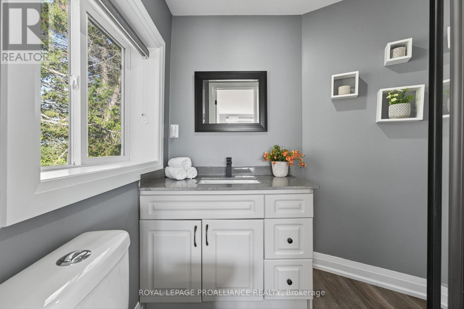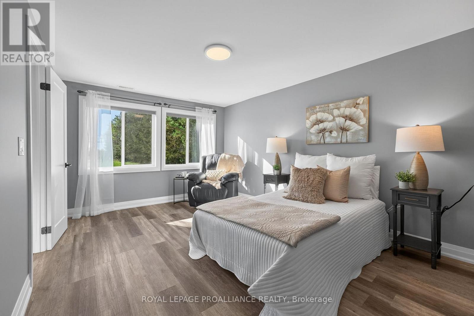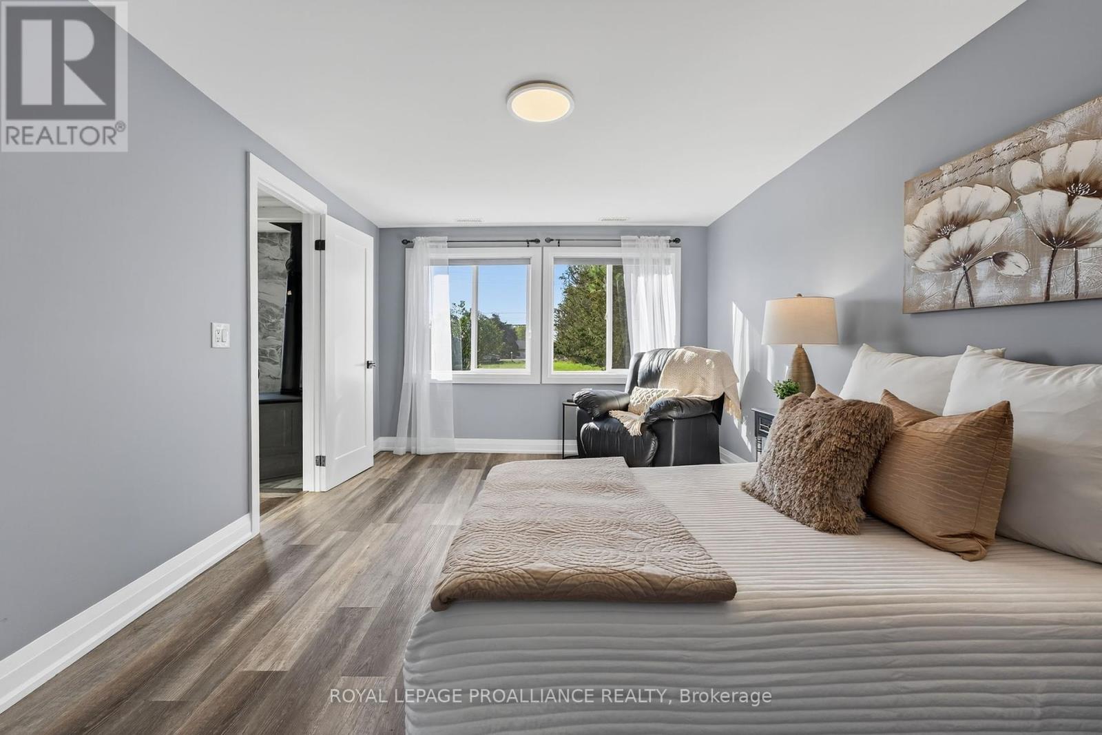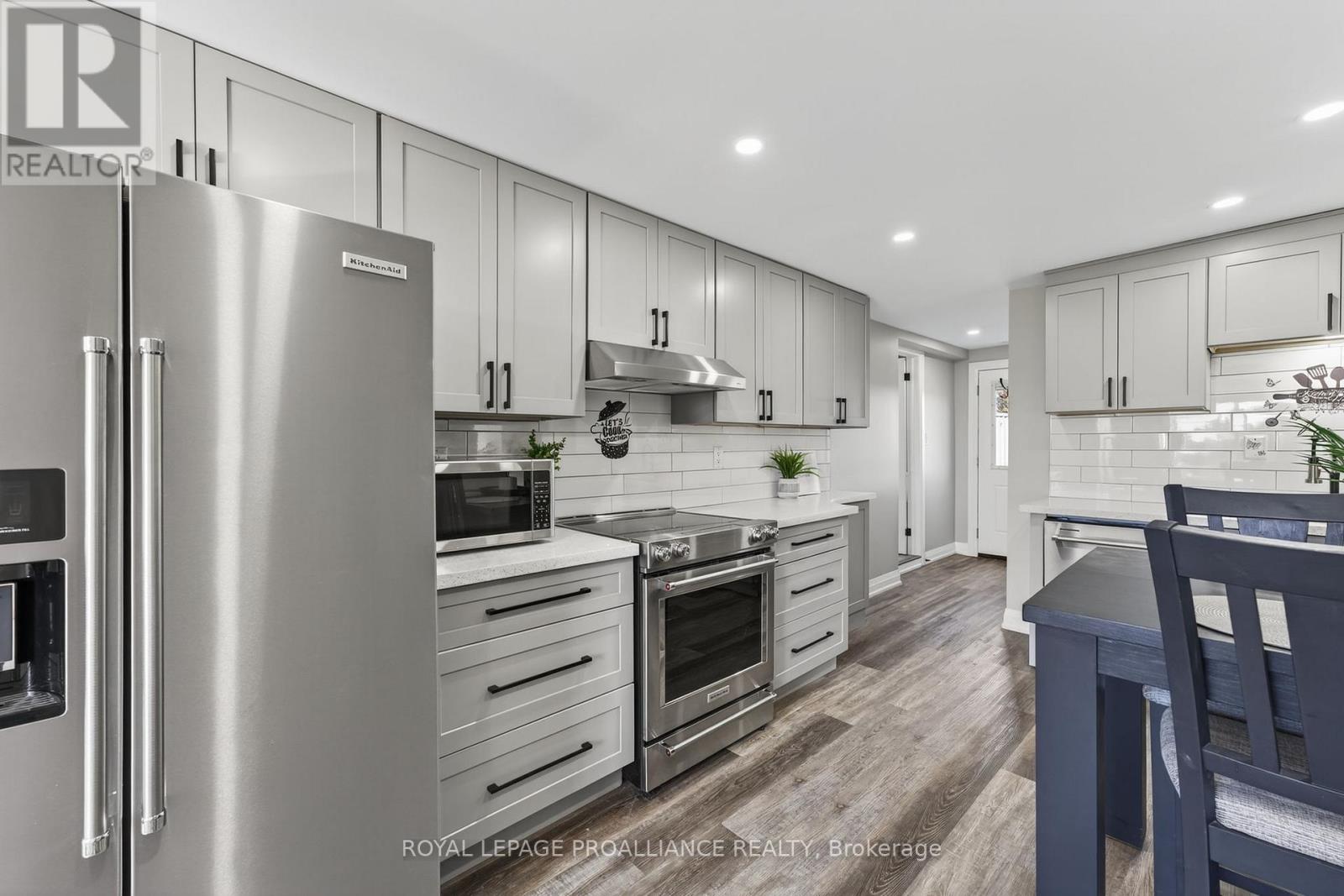 Welcome to your private escape just minutes from shopping and amenities! This beautifully renovated 2+1 bedroom, 3 bathroom home sits on over 1.5 acres, offering the perfect blend of peace, space, and modern comfort. Step inside this turn key home featuring a stunning new kitchen with quartz countertops and stainless-steel appliances. The main floor offers the rare option of two primary bedrooms one with a brand-new 3-piece ensuite, the other with a walkout to the back deck, walk-in closet, and tranquil views of the property. Countless updates provide worry-free living, including new doors and windows, updated furnace and A/C, and modern finishes throughout. Convenient main floor laundry adds to the ease of everyday living as well as natural gas to the property. Enjoy the best of both worlds quiet rural living with shopping, schools, and parks just a short drive away. Only 10 minutes to the 401 and 20 minutes to CFB Trenton. (id:51158)