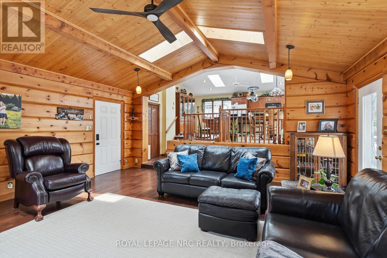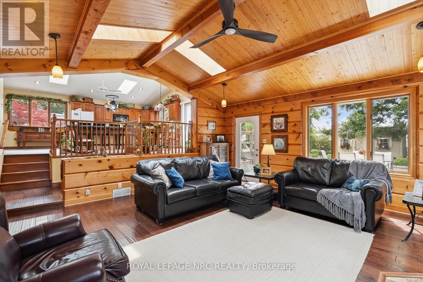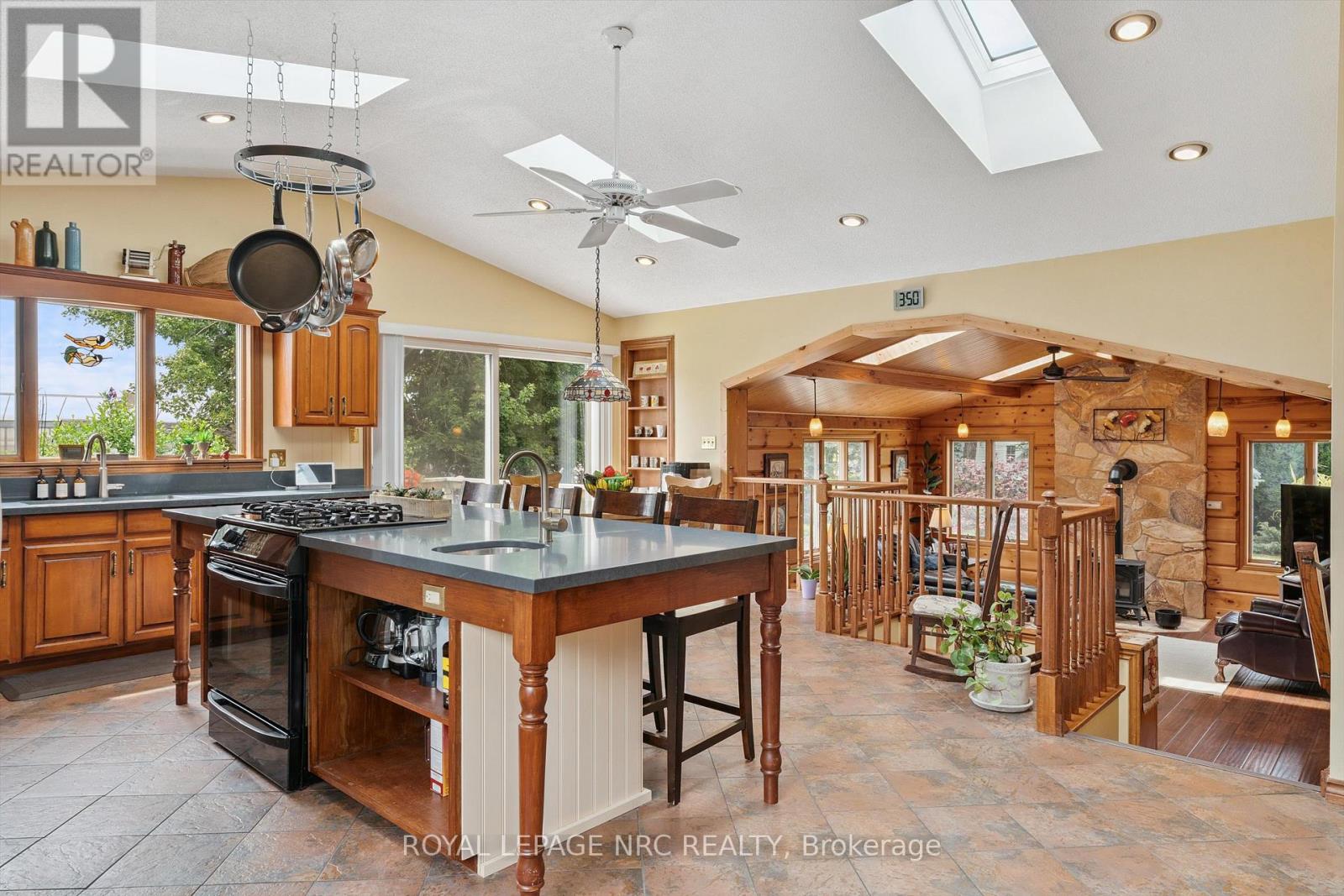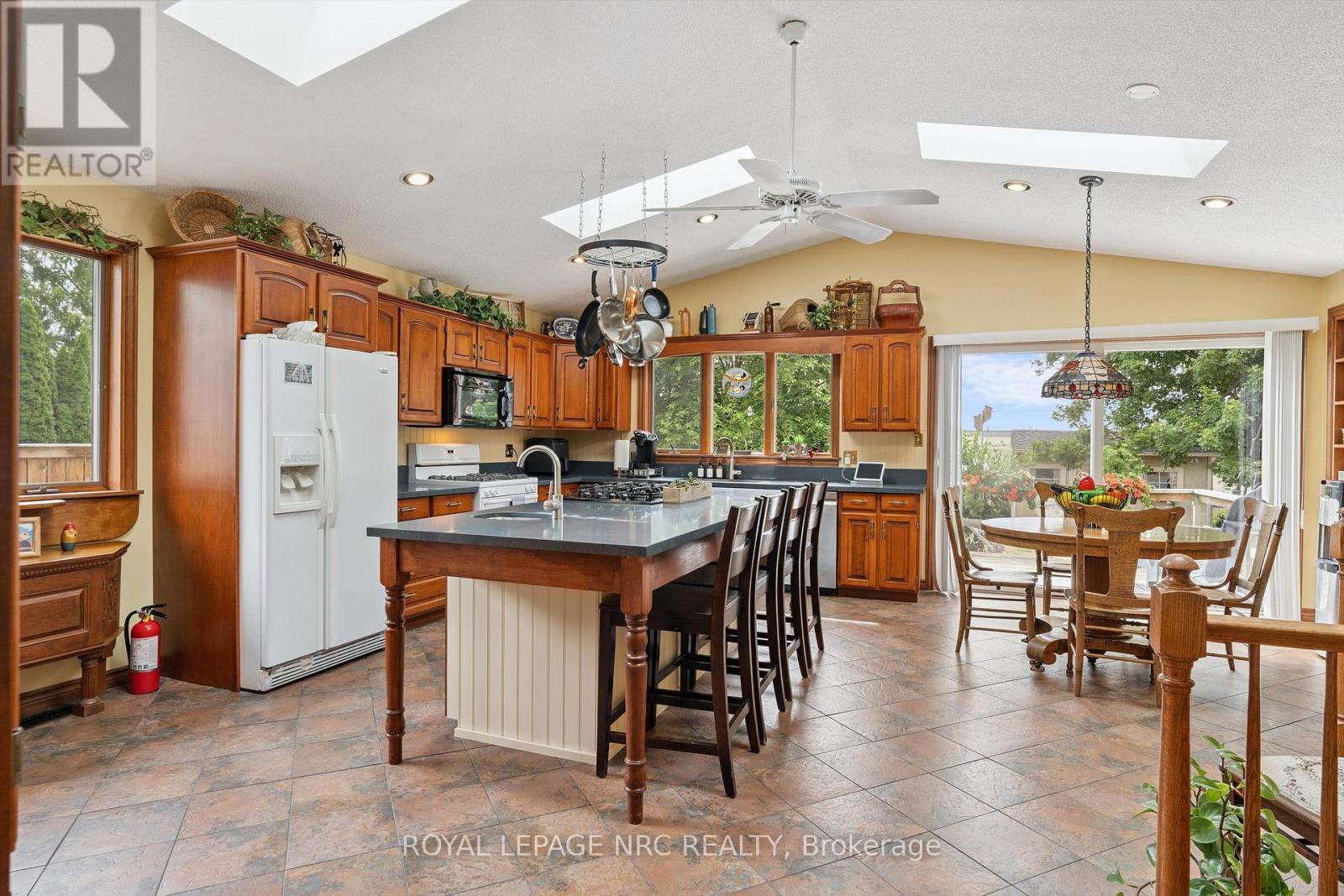 Country Living on the edge of the city. This attractive rural home is situated on a paved road close to amenities yet far enough from the hustle & bustle of city life. This 2.5 storey home has a huge front veranda along with a courtyard entry leading to a large mud room and access to the rear family room addition which was built in 1991. This massive, open concept kitchen and family room is the heart of the home. The kitchen features an island with a prep sink, Quartz counters, vaulted ceiling, 4 skylights, built-in display cabinet & 2 gas stoves/ovens perfect for a busy kitchen. This area is ideal for the person who loves big family gatherings or just loves to entertain. The kitchen overlooks the massive family room designed with a vaulted ceiling and another 4 skylights, a gas fireplace & pine walls. Main floor also offers a 3 piece bathroom with shower, formal dining and living rooms plus a cozy sitting area next to the bay window & another gas fireplace. Upstairs are 3 bedrooms, a bathroom with a jet tub and a walk up staircase to the 3rd level and an undeveloped attic. A future finished room in the attic would measure approximately 16' x 14' and could make a beautiful room for a bedroom retreat or office space. Some notable features of the home are: 8 skylights, 2016 roof shingles (Timberline), backyard garden shed, drywalled garage with high ceiling & interior that measures approx. 23' X 21'. The property is nicely landscaped and measures 100' x 164'. Set back off the road, the concrete driveway offers lots of parking for 6 vehicles. Make this your home and experience life on the edge of the city with the convenience of being a short distance to shopping, hospital, Hwy access, Green Ribbon Trail, Port Dalhousie shops, dining & the beach. And now with Bell Fibe internet. (id:51158)