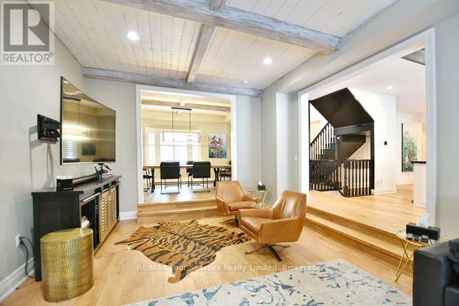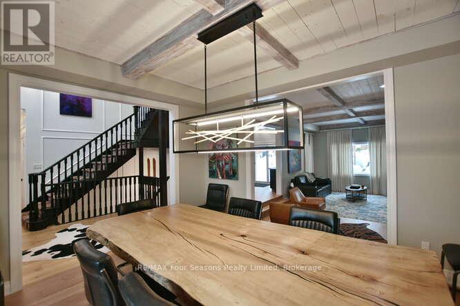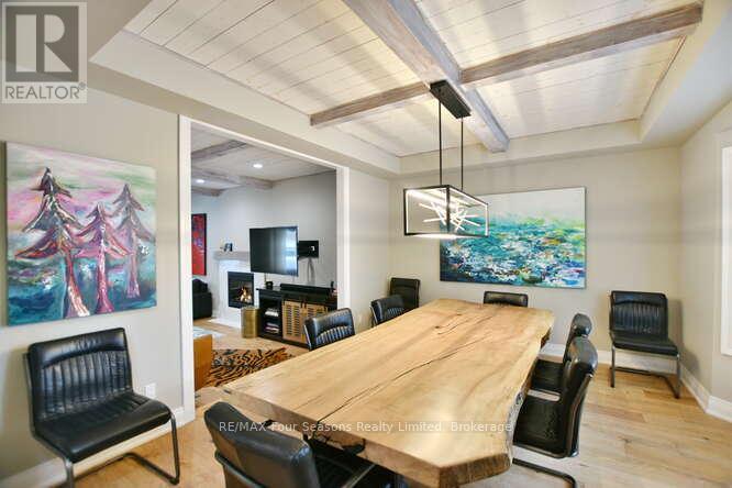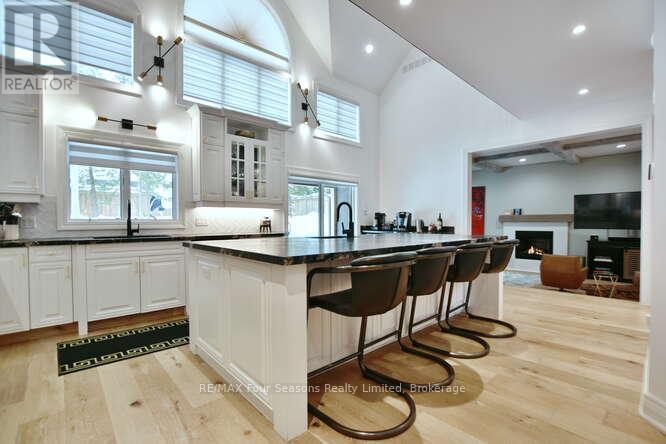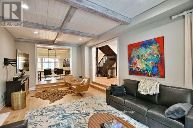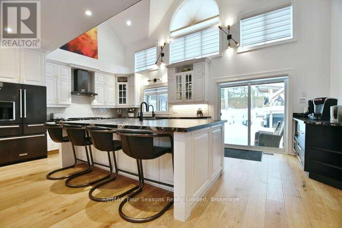 SKI SEASON LEASE WITH HOT TUB! This stunning 5,400 sq. ft. residence is ideally located in the prestigious Nipissing Ridge community, just minutes from Alpine and Craigleith Ski Clubs, Blue Mountain, and a short drive to Collingwood. Featuring 4 bedrooms, 4.5 bathrooms, and generous living spaces, this home is the ultimate ski season retreat for family and friends. The main level welcomes you with soaring ceilings, elegant wainscoting, and a grand staircase. A chefs kitchen with double-height ceilings, a spacious island, and premium appliances sets the stage for unforgettable après-ski gatherings. Step outside to unwind in the private hot tub, surrounded by serene natural beauty. The primary suite is a true sanctuary, complete with two walk-in closets, a spa-like ensuite, and a cozy fireplace. The fully finished lower level includes a large recreation room with media area, wet bar, and private guest suite perfect for entertaining after a day on the slopes. Enjoy direct access to year-round trails, with the convenience of ski clubs and mountain activities just minutes away. (id:51158)