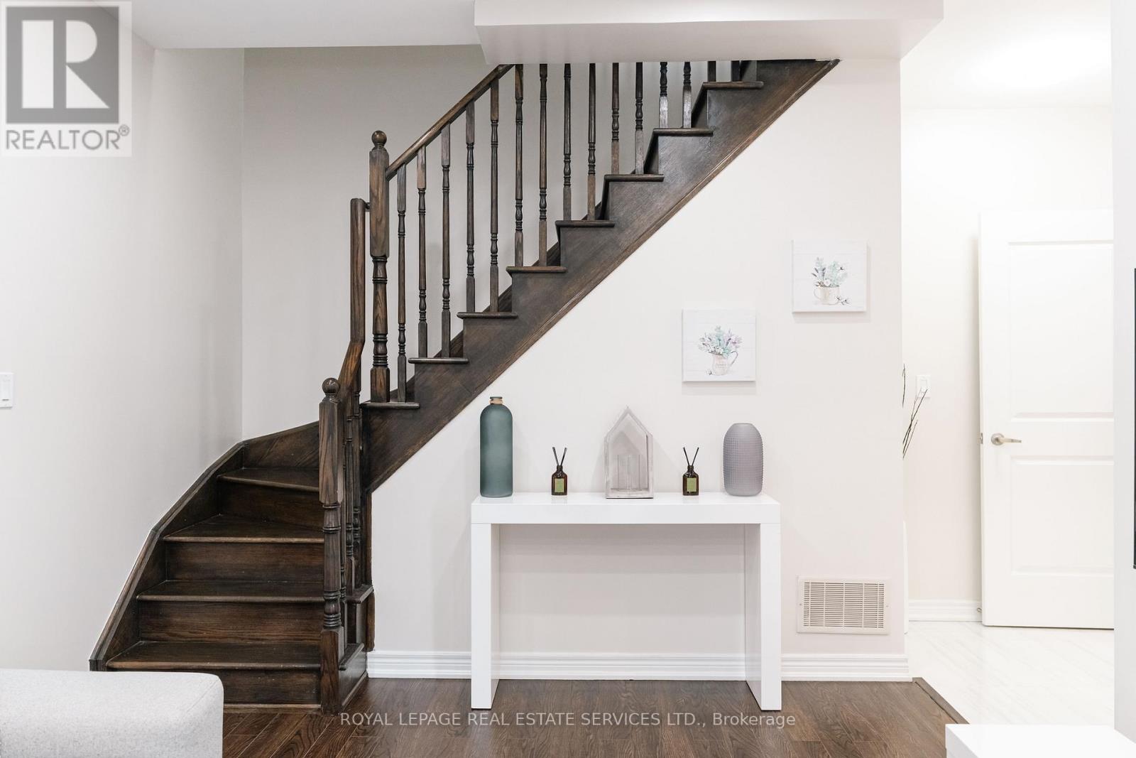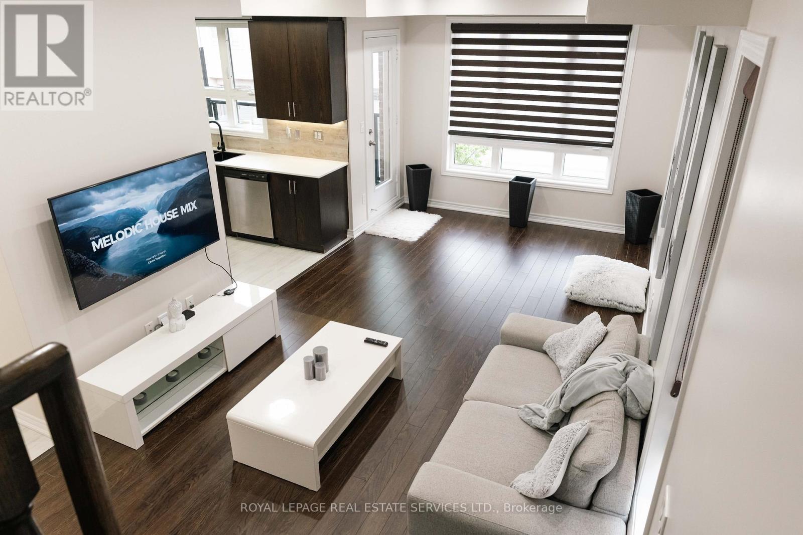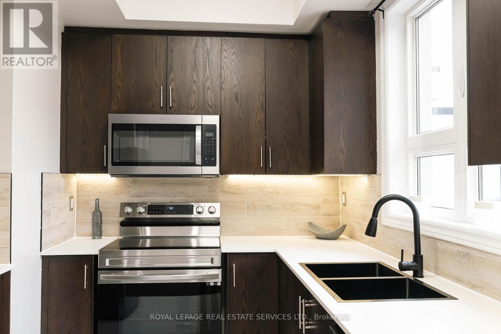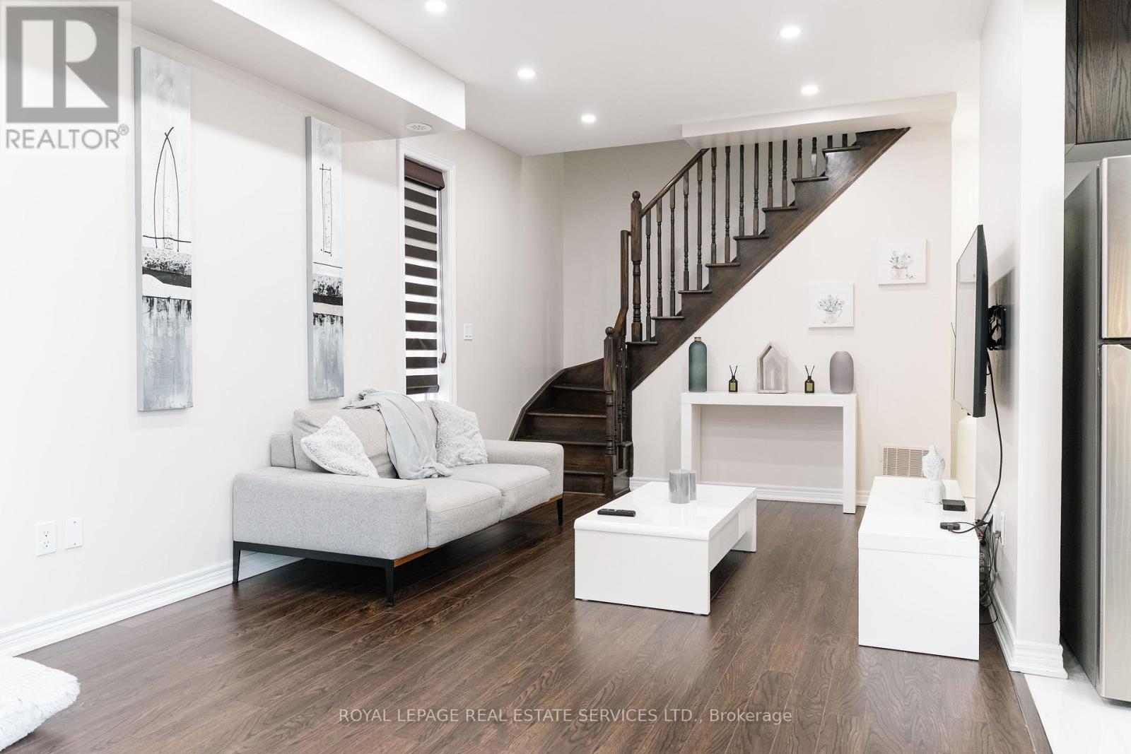 $325.35 MonthlyWelcome to this modern and stunning end unit condo townhome located at 9621 Jane St, Unit 13. This unit offers upscale living in one of Vaughan's most desirable communities. This home is bathed in natural light and showcases elegant dark tones, designer finishes, and new laminate flooring throughout. Featuring two spacious bedrooms and two fully upgraded bathrooms. The home is designed for comfort and style with oversized windows and custom zebra blinds. The gourmet kitchen is a chef's dream, complete with new stainless-steel appliances, quartz countertops, a double in-mount sink, stone backsplash, and ample cabinetry. The open-concept living and dining area boasts soaring ceilings and a walkout to your own private balcony, perfect for entertaining or relaxing. A beautifully stained oak staircase leads to the upper level, where the oversized primary bedroom impresses with 10' ceilings, a second balcony and a full walk-in closet. Additional features include ensuite laundry and generous storage throughout. This is refined townhouse living at its finest. (id:51158)
