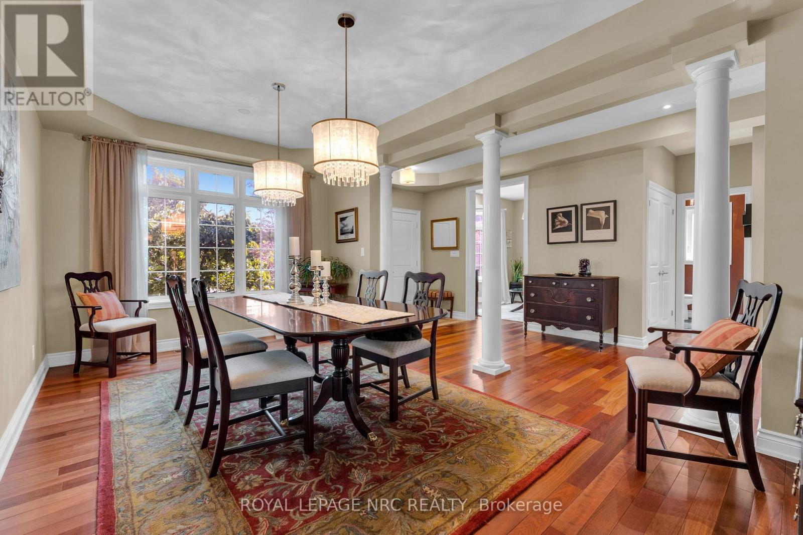 Custom-Built Renaldi Home - First Time Offered! Tucked away on a quiet cul-de-sac, this thoughtfully designed 5-bedroom, 4-bathroom home (all bedrooms located on the second floor, with one currently used as an office) showcases high-end finishes and exceptional attention to detail throughout. Situated on a large triangular shaped lot measuring 82.47ft. x 124.04ft. x 131.92ft. x 38.91feet. Inside, you'll find solid Brazilian cherry hardwood floors and staircase, a custom mahogany kitchen with quartz counters and a separate dining area, ceiling speakers, 9-foot flat ceilings, transom windows, and over 100 pot lights. Two bedrooms feature private en-suites, and walk-in bedroom closets provide ample, organized storage. The main-floor living room offers flexibility as an office or an additional bedroom. Customized closets are found throughout the home, along with features such as, an upgraded powder room, a cold cellar, and high-efficiency HVAC system and solar attic vents. The main floor laundry has been converted to a mudroom with custom cabinetry (hookups for the laundry are still in place if one desires to return the laundry to the main floor). The double car garage featuring extra ceiling height for storage offers convenient interior access through this mudroom. Outside, enjoy your morning coffee under the covered patio with louvered roof and integrated lighting. Additional exterior features include in-ground sprinklers, landscape lighting, and extensive backyard electrical work already in place for a future pool or hot tub. The professionally finished exposed aggregate driveway rounds out the curb appeal. Every detail has been carefully considered in this exceptional home. A rare find! (id:51158)