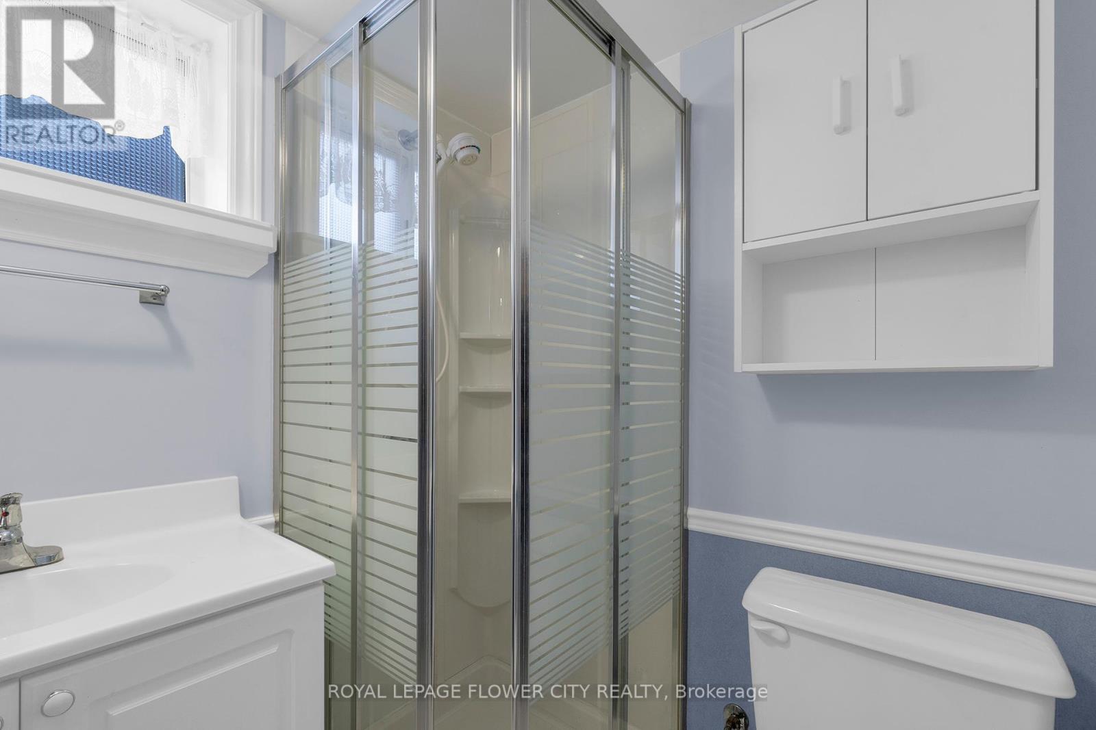 Stunning 2-bedroom (formerly 3-bedroom) home on a serene crescent in Georgetown's mature neighborhood. The oversized primary suite boasts a 3-piece ensuite and ample closet space. Enjoy a stylish kitchen with a breakfast bar and walkout to a private deck. Hardwood floors grace the main level. The finished basement offers a cozy rec room with a gas fireplace, a 3-piece bath, rough-in for a kitchen, and two spacious bedrooms. Situated on a beautifully landscaped corner lot, this property includes two storage sheds within a large fenced area. New shingles (2023)! The driveway accommodates six cars. Impeccably maintained and move-in ready! **EXTRAS** 2 fridge , Stove, Washer , Dryer , B/I Dishwasher , Microwave, 3 ceiling fans, basement storage rack , water softner . (id:51158)