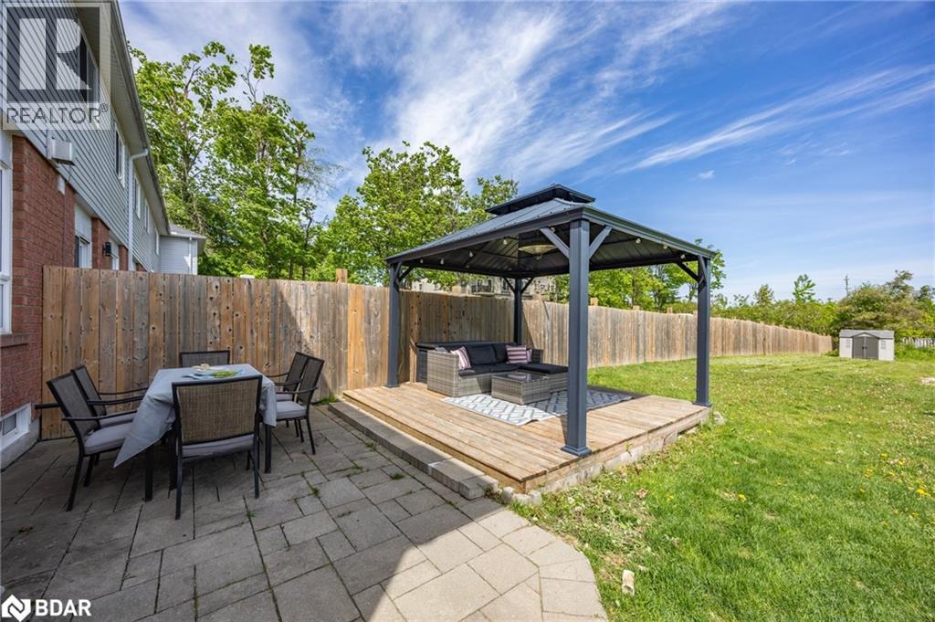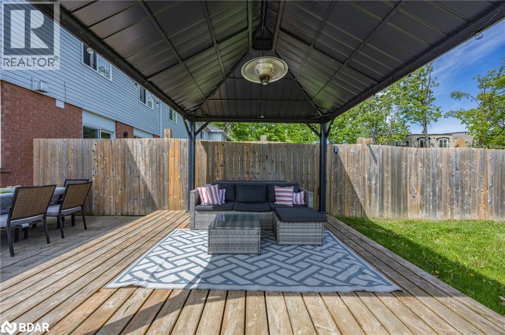 Welcome to 13 Sunset Place, a rare find nestled on one of the largest lots in the desirable Holly neighbourhood of Barrie. A beautifully upgraded 3-bedroom, 3-bathroom end unit townhome with a fully finished basement, tucked away on a quiet cul-de-sac. Set on an incredible 94.91 ft x 380 ft lot, this home offers rare outdoor space with endless potential zoned to build a secondary unit, add a pool, or create your dream backyard oasis. Step inside this bright and spacious 1,260 sq ft home, where an open-concept main floor awaits.The inviting living and dining area features a gas fireplace and flows seamlessly into an eat-in kitchen with a walk-out to the expansive backyard. A convenient main floor powder room completes the space. Upstairs, you'll find 3 generously sized bedrooms, including a primary suite with semi-ensuite access to the full 4- piece bathroom ideal for families or first-time buyers looking for comfort and functionality. Recent upgrades include new windows (Fall 2024), laminate flooring (2024), all three bathrooms renovated (2023) and a finished basement (2021). Located in a family-friendly community, close to parks, schools, trails, and with easy access to HWY 400 and local amenities, this home offers the best of privacy and convenience. Surrounded by new development - great investment or family home! Book your private showing today! (id:51158)