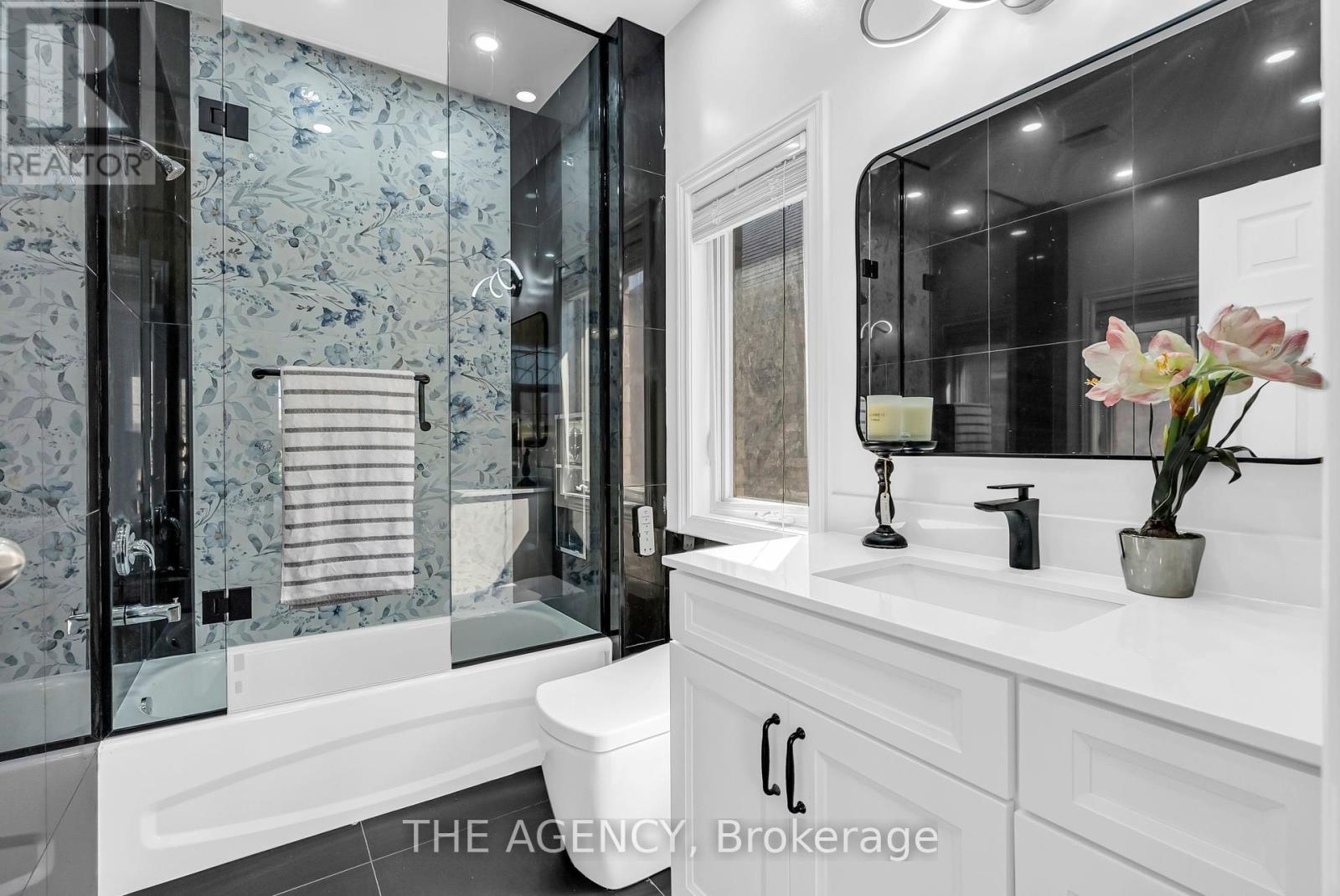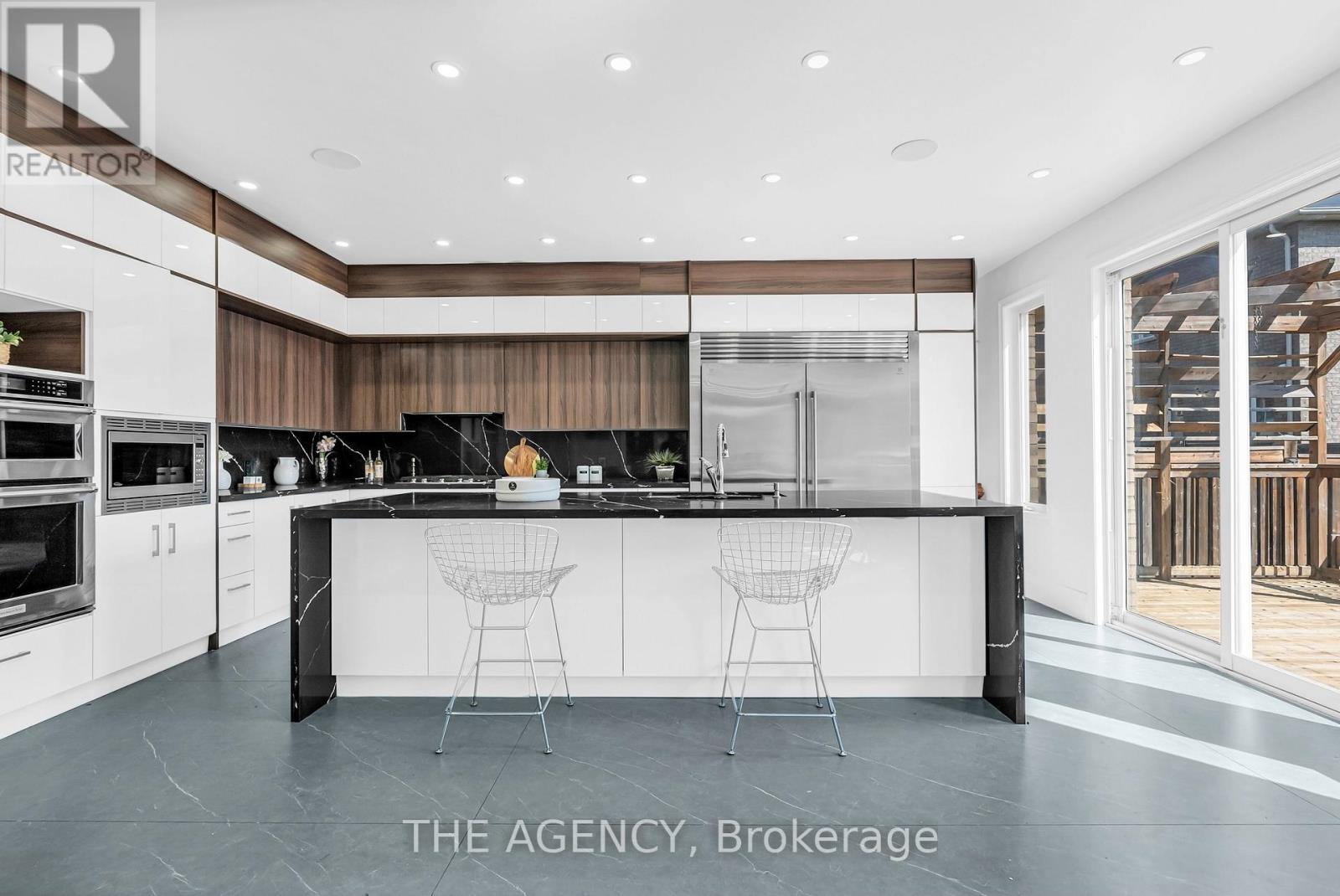 ****[Rare 4+3 Bed and 5+2 Bath Gem | Sep Entrance Legal Basement with Whole Basement Floor Heated | Heated Floor Upper Level Private Bathrooms | Smart Home w/Built-In Speakers | Large 4x9 Tiles in Key Areas | Custom Chef's Kitchen | Quite Family Safe Crescent | Ravine Park In The Front | No Immediate Neighbours in the Back | Over $300K spent on Upgrades and Changes]**** Soaring open-to-above foyer with designer chandelier welcomes you into a home that feels grand and upscale. Main floor office boasts 18.86 ft ceilings, wood plank ceiling with pot lights. Elegant dining room connects seamlessly to a chef-inspired kitchen featuring KitchenAid built-in appliances, Large Electrolux fridge & freezer, 2 microwaves, wall oven, custom soft-close cabinetry, and ultra-rare 4x9 designer tiles. Family room is perfect for entertaining, featuring a gas fireplace, custom TV wall, hardwood flooring, and smart built-in speakers. Oversized mudroom with large closet leads to the epoxy-coated garage. Upstairs: 4 spacious bedrooms, each with a private ensuite and heated flooring. Primary retreat features a freestanding tub, double vanity, his/hers closets, and smart toilet (2 smart toilets total on this level). Dramatic ceiling heights and designer lighting elevate the upper landing. LEGAL basement apartment includes heated floors throughout, 3 bedrooms, 2 full bathrooms (including 1 ensuite), modern kitchen with double sink, Rec room, and private laundry rough-in. Ideal for rental income or multi-generational living with a separate side entrance. Smart home upgrades: Lutron switches, smart lighting, security cameras, built-in speakers, and smart toilets. Landscaped front, paved backyard with deck, 4-car driveway, and fresh paint throughout.This home blends traditional architecture with custom home elegance and income-generating potential. A rare offering you don't want to miss! (id:51158)