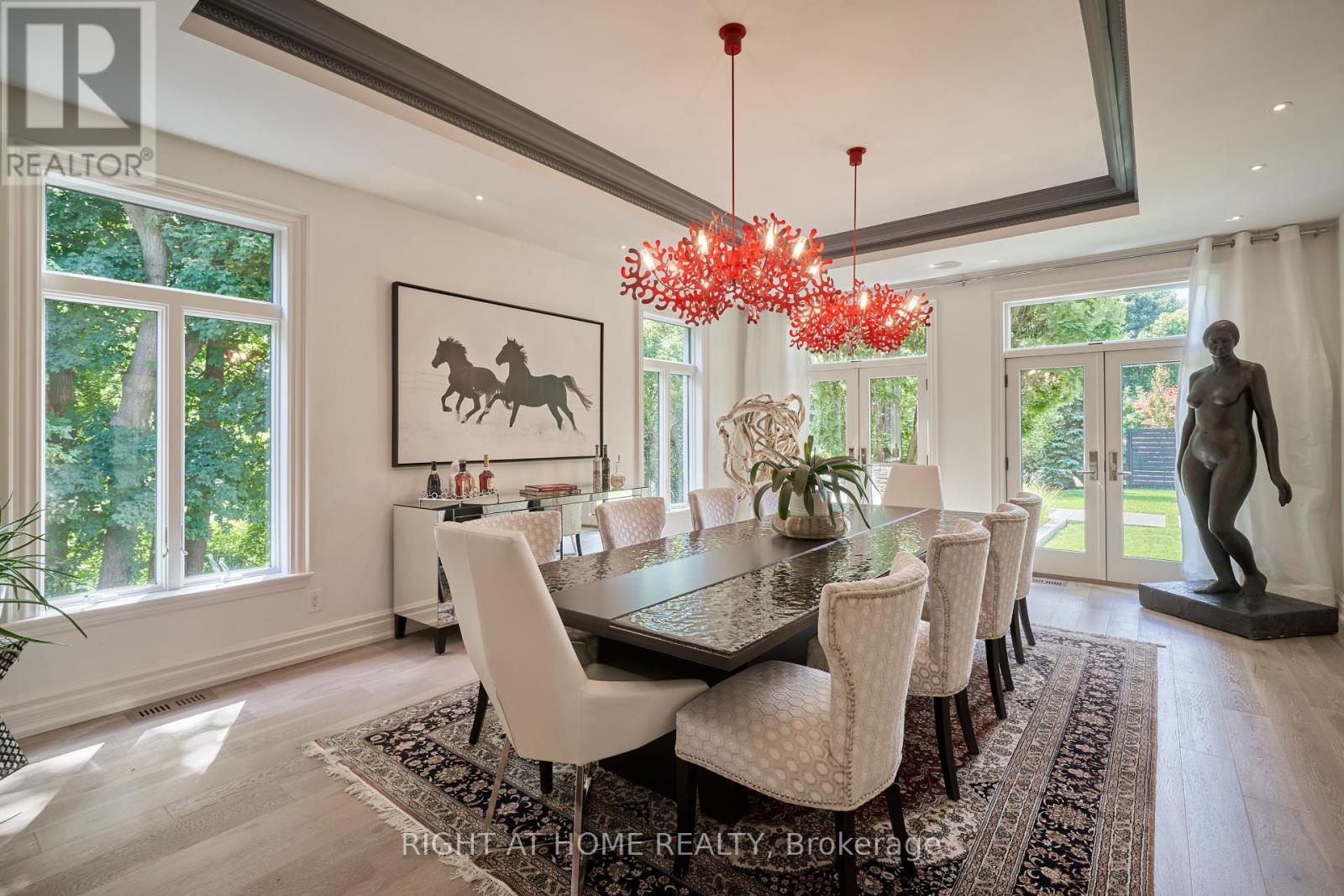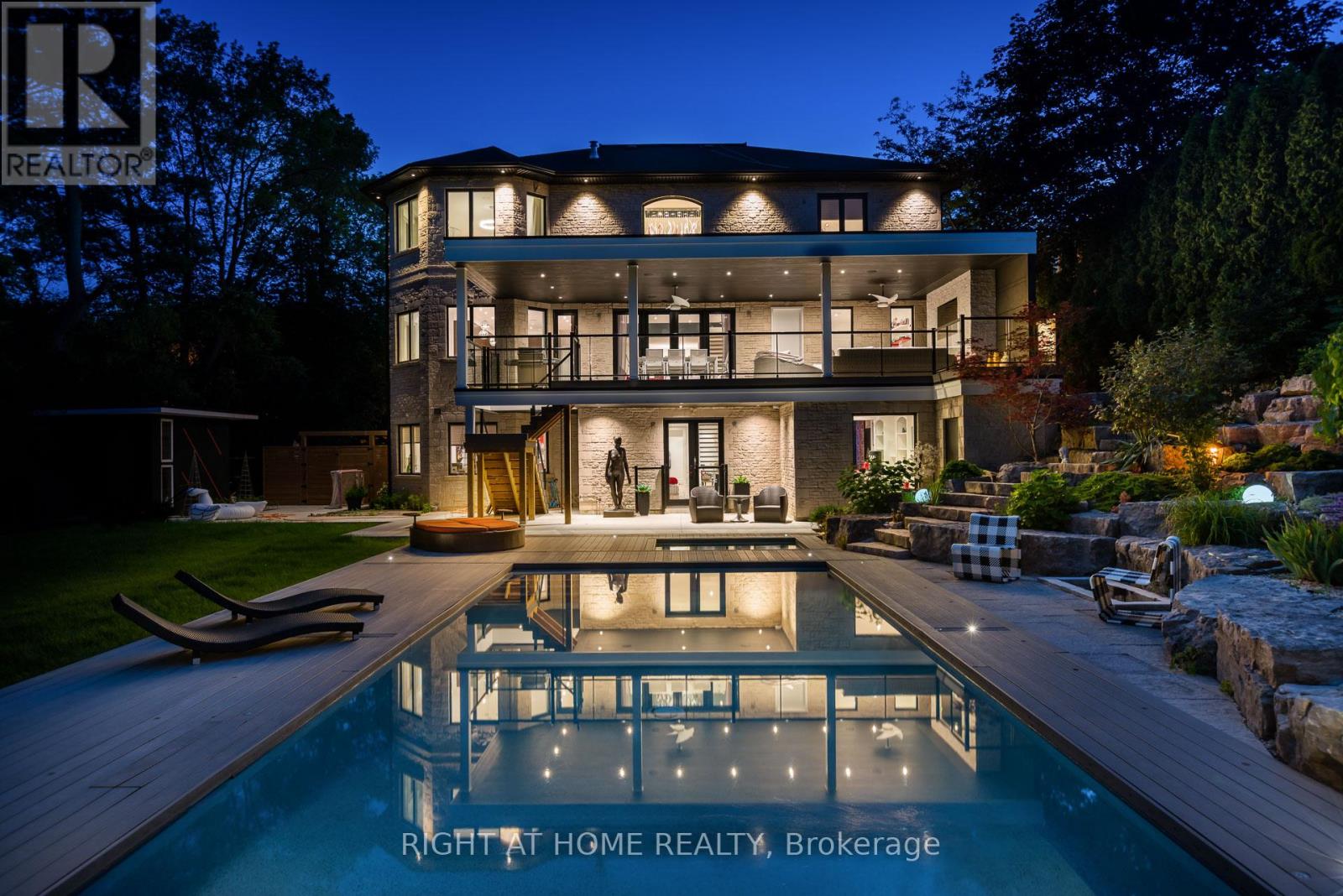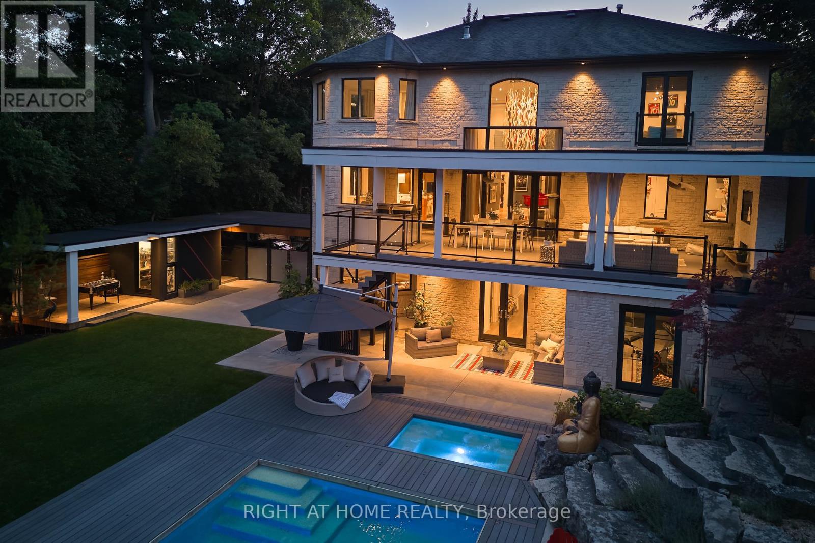 An Architectural Statement of Luxury & LifestyleA rare offering in one of Torontos most sought-after neighbourhoods, this spectacular estate sits on a 91 x 210 private lot & showcases over 8,300 sq ft of exceptional living space. With 4 bedrooms, 7 bathrooms & uncompromising attention to detail, this residence is designed for those who expect the very best.The main level welcomes you with soaring ceilings, expansive windows, & elegant principal rooms, seamlessly blending modern function with timeless sophistication. An open-concept flow creates both intimacy for family living & grandeur for entertaining. 2 fireplaces & Control4 smart system ensures effortless control of lighting, audio, security, & climate.The kitchen is a true centerpiece, offering Miele top-tier appliances, custom cabinetry, & a walkout to the backyard oasis. The spacious family room is complemented by a seamless connection to outdoor living.Upstairs, retreat to the serene primary suite with a spa-inspired ensuite, walk-in dressing room & private sitting area. Secondary bedrooms are equally well-appointed, each with access to ensuites & generous closets. A finished lower level expands the living space, ideal for a home theatre, gym, or recreation area.Outside, the property transforms into a private resort. A pool & jacuzzi with cabana invite endless summer enjoyment, while the heated driveway & automated gated entrance ensure convenience & year-round ease. The 3-car garage offers ample parking & storage. This home is a complete package with uncompromising luxury, privacy & sophistication in an unbeatable location close to top schools, golf, parks & city amenities. (id:51158)