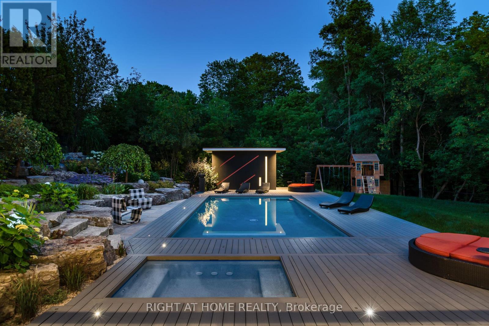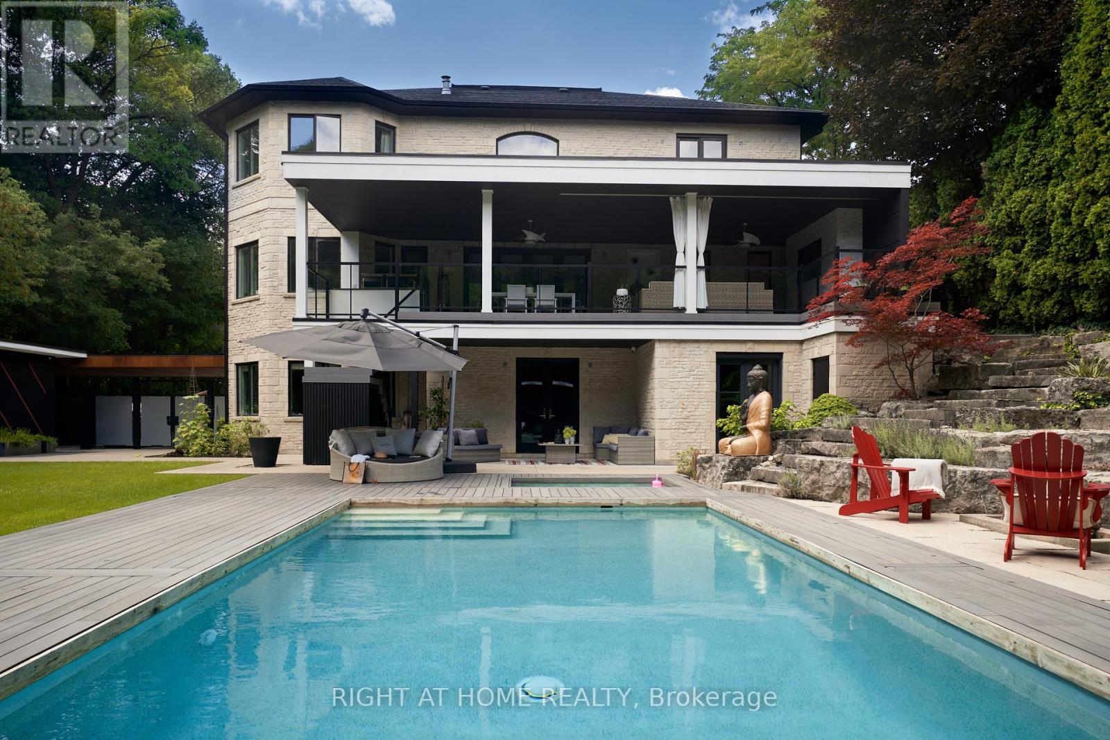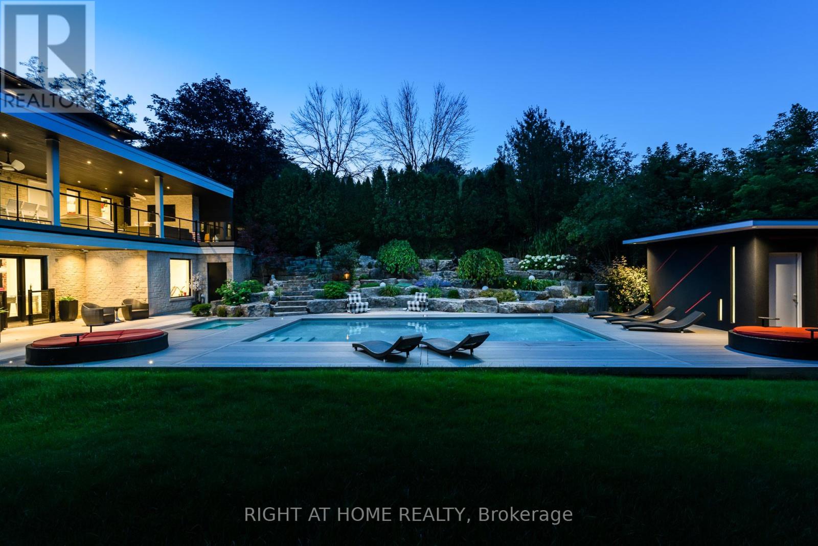 An Architectural Statement of Luxury & LifestyleA rare offering in one of Torontos most sought-after neighbourhoods, this spectacular estate sits on a 91 x 210 private lot & showcases over 8,300 sq ft of exceptional living space. With 4 bedrooms, 7 bathrooms & uncompromising attention to detail, this residence is designed for those who expect the very best.The main level welcomes you with soaring ceilings, expansive windows, & elegant principal rooms, seamlessly blending modern function with timeless sophistication. An open-concept flow creates both intimacy for family living & grandeur for entertaining. 2 fireplaces & Control4 smart system ensures effortless control of lighting, audio, security, & climate.The kitchen is a true centerpiece, offering Miele top-tier appliances, custom cabinetry, & a walkout to the backyard oasis. The spacious family room is complemented by a seamless connection to outdoor living.Upstairs, retreat to the serene primary suite with a spa-inspired ensuite, walk-in dressing room & private sitting area. Secondary bedrooms are equally well-appointed, each with access to ensuites & generous closets. A finished lower level expands the living space, ideal for a home theatre, gym, or recreation area.Outside, the property transforms into a private resort. A pool & jacuzzi with cabana invite endless summer enjoyment, while the heated driveway & automated gated entrance ensure convenience & year-round ease. The 3-car garage offers ample parking & storage. This home is a complete package with uncompromising luxury, privacy & sophistication in an unbeatable location close to top schools, golf, parks & city amenities. (id:51158)