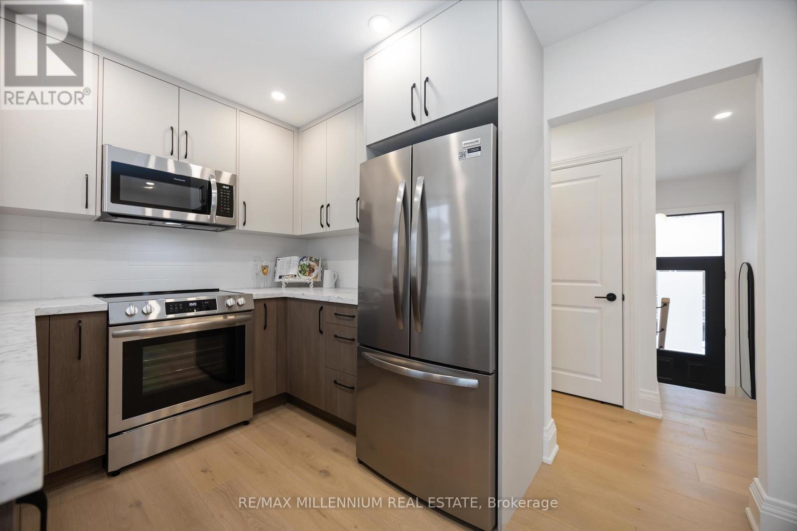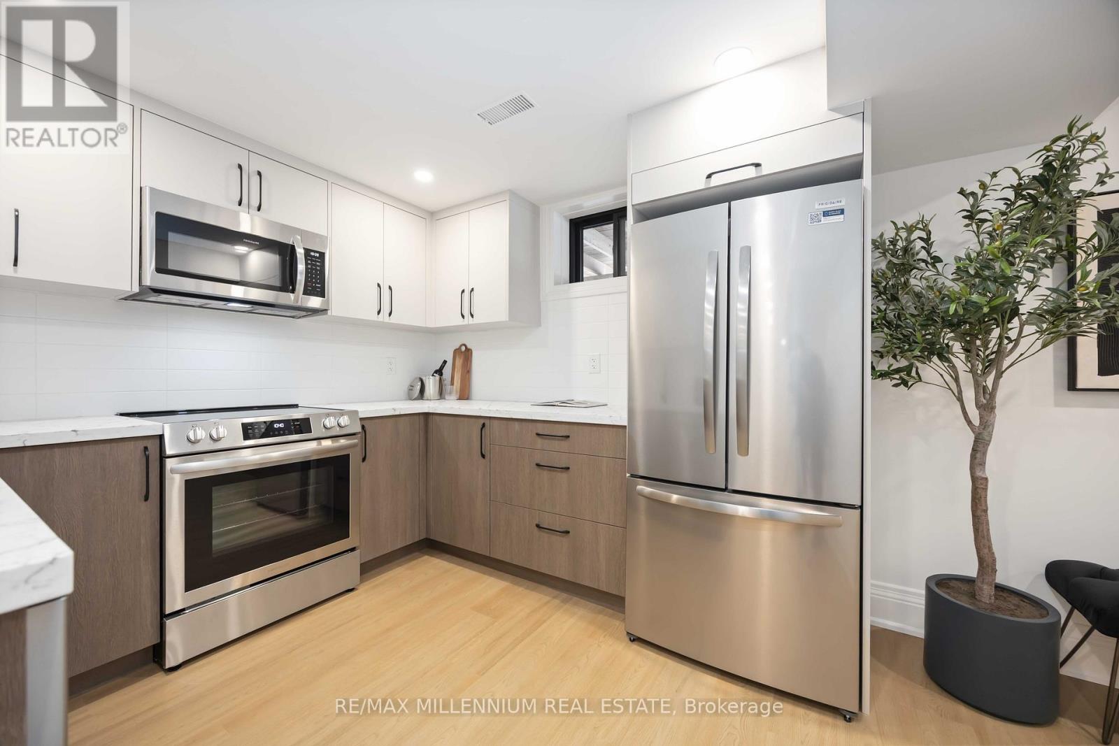 FULLY UPGRADED 3+2 bedroom home offering exceptional versatility and income potential, featuring two full bathrooms, two kitchens, and two separate laundry areas-ideal for extended family or a self-contained rental or in-law suite.The main floor features 3 bedrooms and a 4-piece bath, while the finished basement offers 2 additional bedrooms and a 3-piece bath with a walk-up separate entrance. Both kitchens are fully equipped with stainless steel appliances, including 2 fridges, 2 stoves, 2 over-the-range microwaves, and 2 dishwashers (one custom-panelled, one stainless), along with 2 washers and 2 dryers for added convenience.This home has been extensively renovated inside and out, including newer sleek black windows, doors, and garage door, sleek black updated soffits, eavestroughs and downspouts, electrical, plumbing, insulation, fencing, and deck also updated. Exterior upgrades include a new concrete main entrance landing, asphalt driveway, 6x6 retaining wall, and custom garden planter boxes.Interior highlights include a custom oak staircase, wide-plank white oak hardwood flooring throughout the main floor, luxury vinyl flooring in the basement, 7" baseboards, updated window and door casings, all new interior doors, and custom cabinetry in both kitchens, bathrooms, and laundry areas. Additional features include pot lights, updated interior and exterior lighting, fresh paint throughout, Nest thermostat, furnace, A/C, and hot water tank.Enjoy a walkout from the main-floor bedroom to the deck via new patio doors, plus a fully separate basement walk up entrance-making this home move in ready. (id:51158)