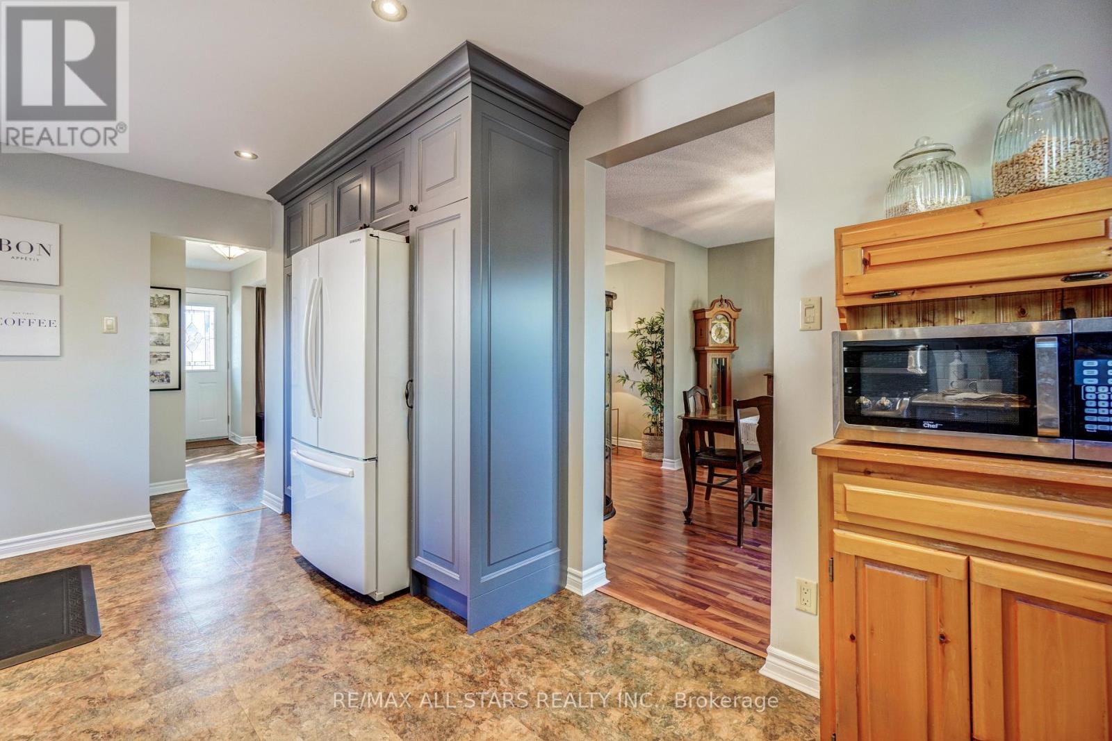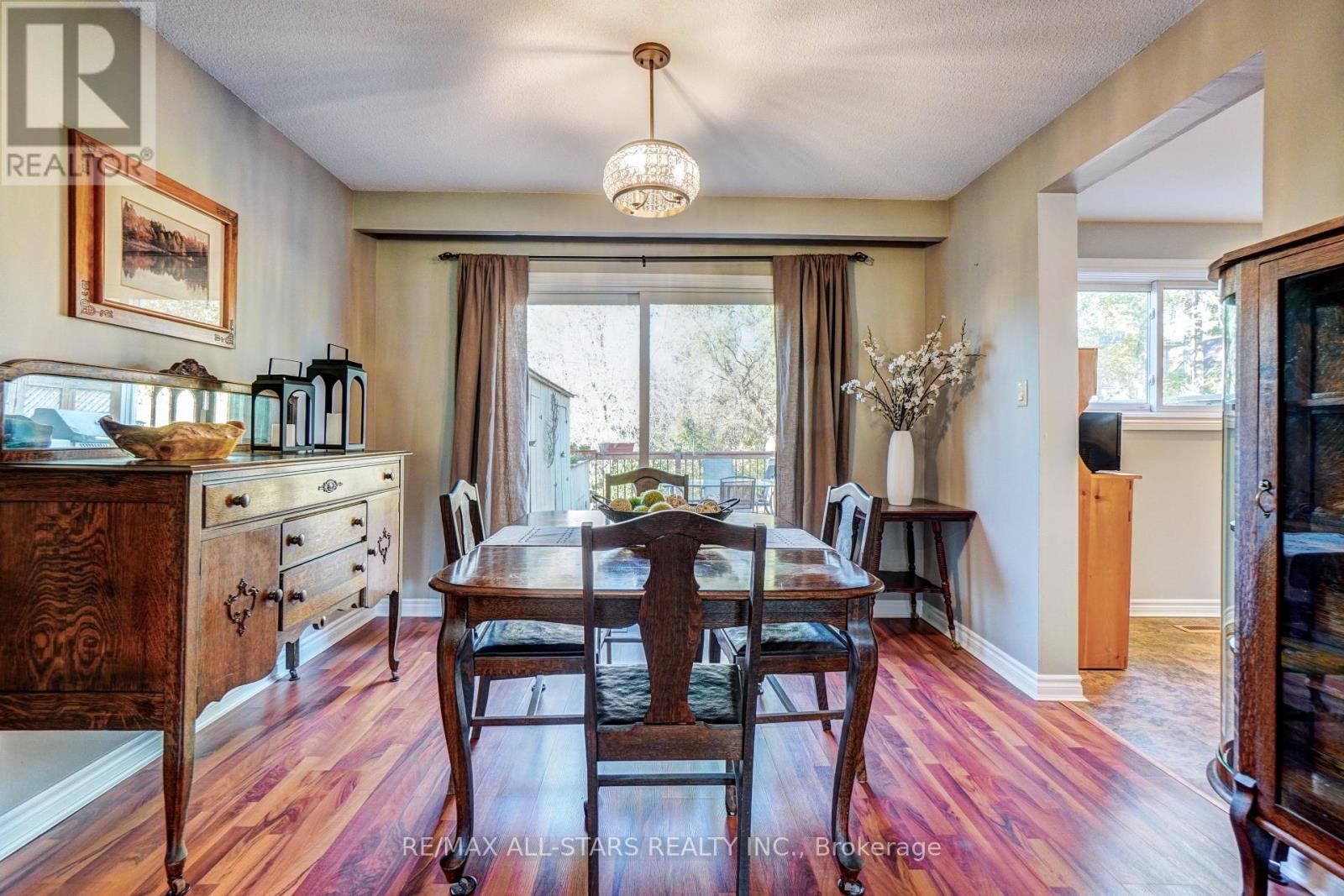 Set in a family-friendly Uxbridge neighbourhood close to parks, schools, and town amenities, this charming 4-bedroom brick and siding home offers comfort, functionality, and modern updates. The main floor features a bright living room with pot lights and a bay window, a dining area with a walkout to a private two-tier deck with a hot tub, and an updated kitchen with white cabinetry and a subway tile backsplash. Upstairs, hardwood floors run throughout four spacious bedrooms with ample closet space. The finished basement adds great versatility with a rec room, laundry area, and workshop. A convenient side door provides access to both the main level and lower level and walks out to the driveway-offering the possibility to create a lower-level suite with a separate entrance if desired. Outside, enjoy a large fenced backyard with plenty of space to relax, play, and entertain, plus an oversized driveway with parking for four vehicles. Additional features include a 2019 gas furnace, central air, electrical updated to copper in 2017, reverse osmosis system, owned hot water tank and water softener, and two garden sheds. (id:51158)