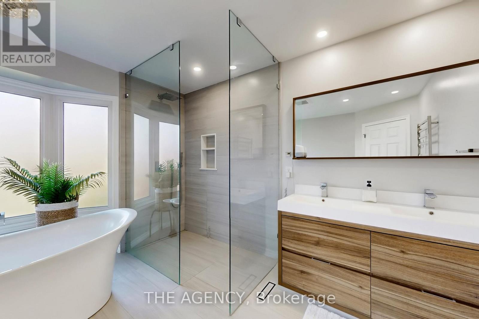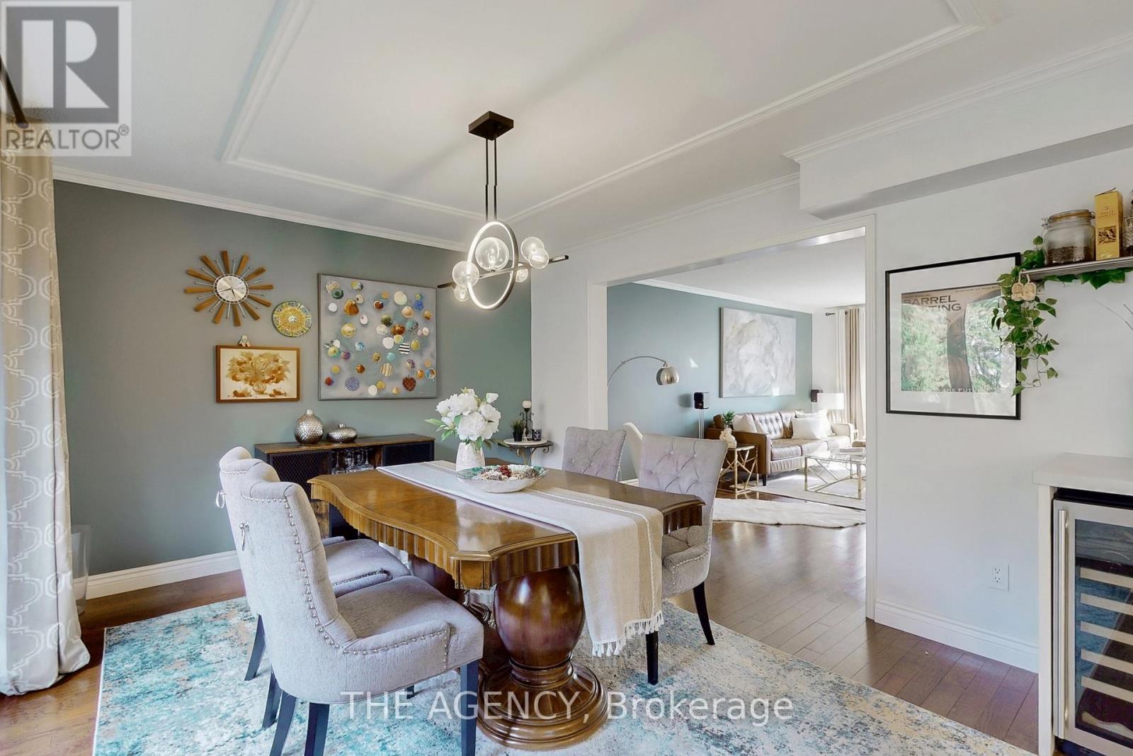 Welcome to your dream home in Oakville! This stunning 4+1 bedroom residence is nestled in one of the towns most desirable, family-friendly neighborhoods. Thoughtfully designed and tastefully upgraded, this home blends comfort and modern elegance at every turn. The heart of the home features a beautifully renovated kitchen with quartz countertops, an oversized island, stainless steel appliances including a gas stove, pot lights, and ample storage space. The open-concept layout flows effortlessly into a bright dining area, complete with an accent wall, oversized window, elegant wainscoting ceiling, and a statement light fixture. The inviting living room offers a charming bay window and built-in home theatre system with a smart home controller, perfect for quality time with family and friends. A separate family room with a cozy wood-burning fireplace provides the ideal spot for relaxation and entertaining. Upstairs, four spacious bedrooms await, including a luxurious primary suite with a walk-in closet and a spa-like 5-piece ensuite. Hardwood flooring runs throughout the home, with heated floors in all bathrooms, the kitchen, and hallways for year-round comfort. The finished basement features insulated flooring, a kitchenette with fridge, a separate entrance for potential in-law suite use, and even a sauna for your private escape. Additional highlights include smart lighting, smart locks, garage door opener, direct access from the garage to the house and a low-maintenance backyard with a private patio, lush greenery, and a gas line for BBQs. Best of all, there are no neighbor windows overlooking the yard, as the adjacent house is positioned sideways providing exceptional privacy for your outdoor enjoyment. Located close to top-rated schools, parks, shopping, and entertainment, this exceptional home truly has it all. Don't miss your chance to make it yours! (id:51158)