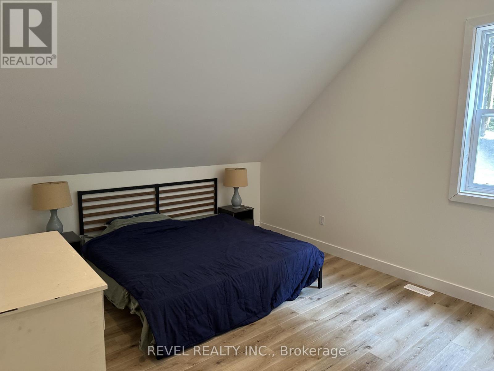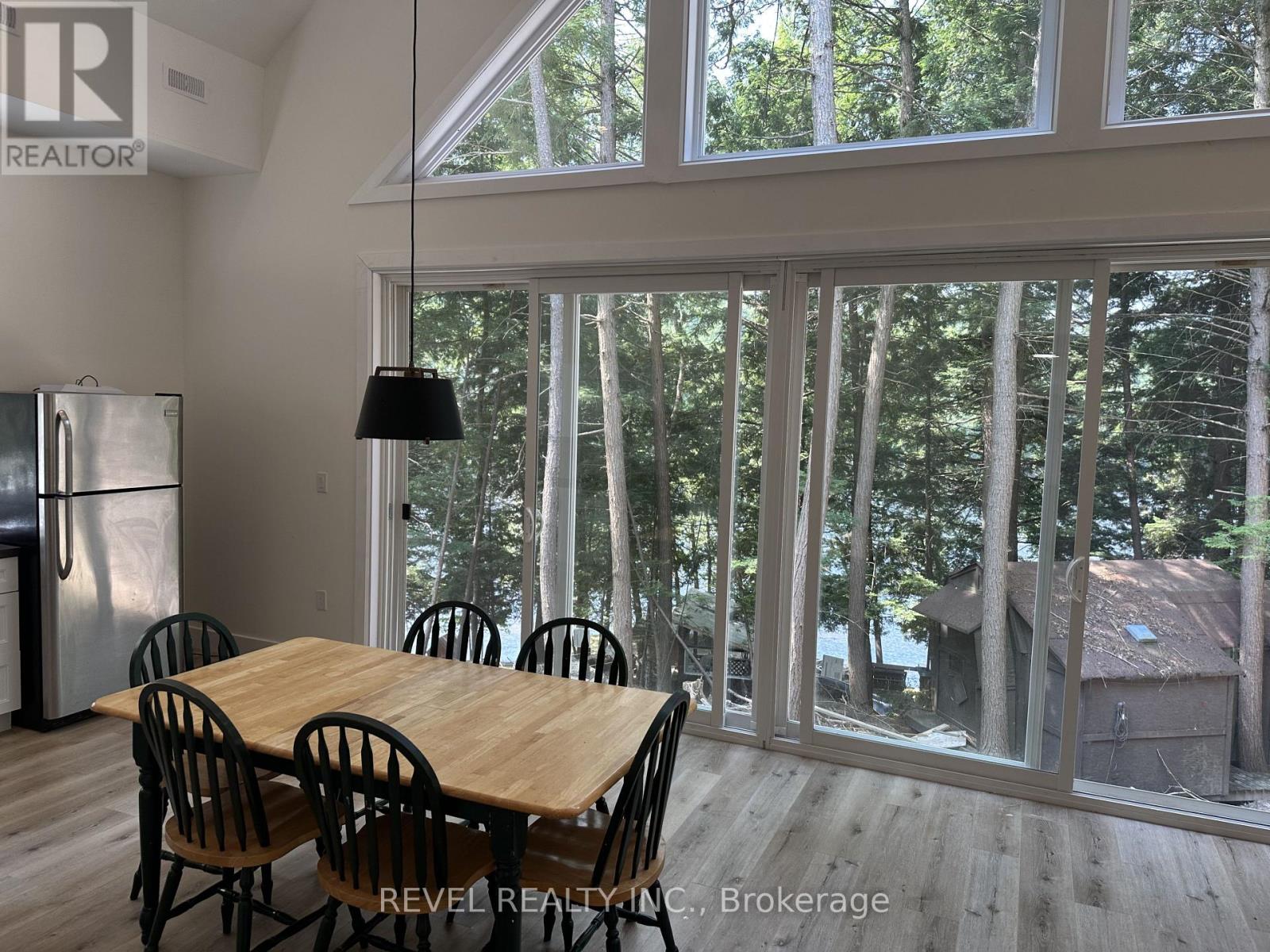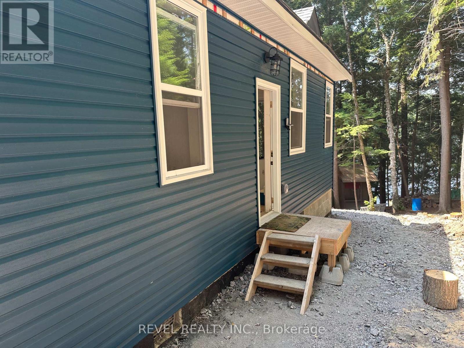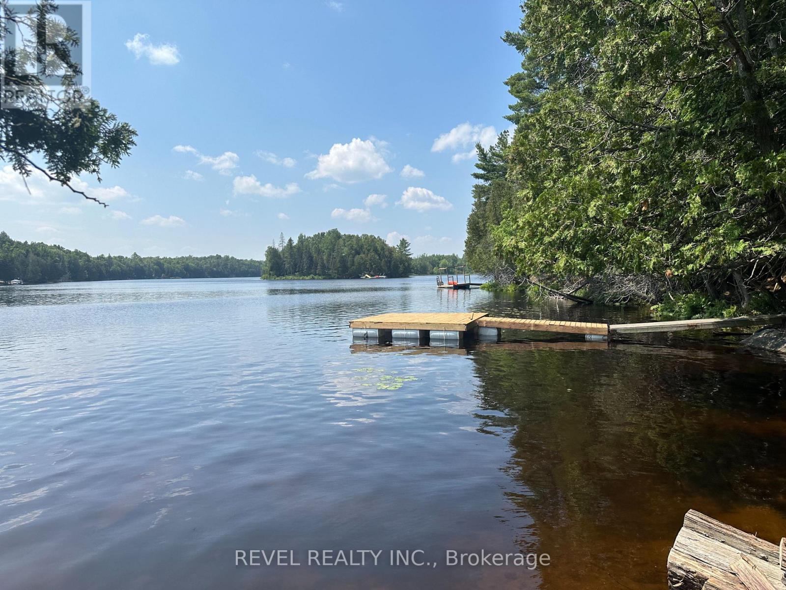 Privacy and seclusion! This stunning custom built cottage will wow you. Sitting atop 11 pristine acres on a laneway with only 3 other cottages and surrounded by forest, it boasts 300+ feet of shoreline where East and West Poverty Bay open up. The main floor consists of a huge great room with vaulted ceilings, gorgeous windows and triple sliding doors overlooking the water. Full kitchen with propane stove, loads of counter and cupboard space and a deep sink. The living room is huge with an eating area as well. Approved plans for a 36x10 foot deck out the front with lumber on site waiting to be built. There's also 2 huge bedrooms that can sleep additional people, a full laundry room setup and a large 4 piece bathroom. Fully spray foamed and with a propane furnace for potential winter use - depending on keeping the laneway plowed. Upstairs boasts an impressive loft space overlooking the great room with full view of the forest and the water. Walk through the double doors into the massive master bedroom, complete with en suite bathroom and large closet. The property also has a full bunkie that can sleep 3 more, plus a screened in kitchenette right by the water. Brand new dock, lake water, this remarkable property is waiting for you to start making family memories, or earn additional income through rental. Book your showing today and find out what true peace and tranquility looks like! (id:51158)