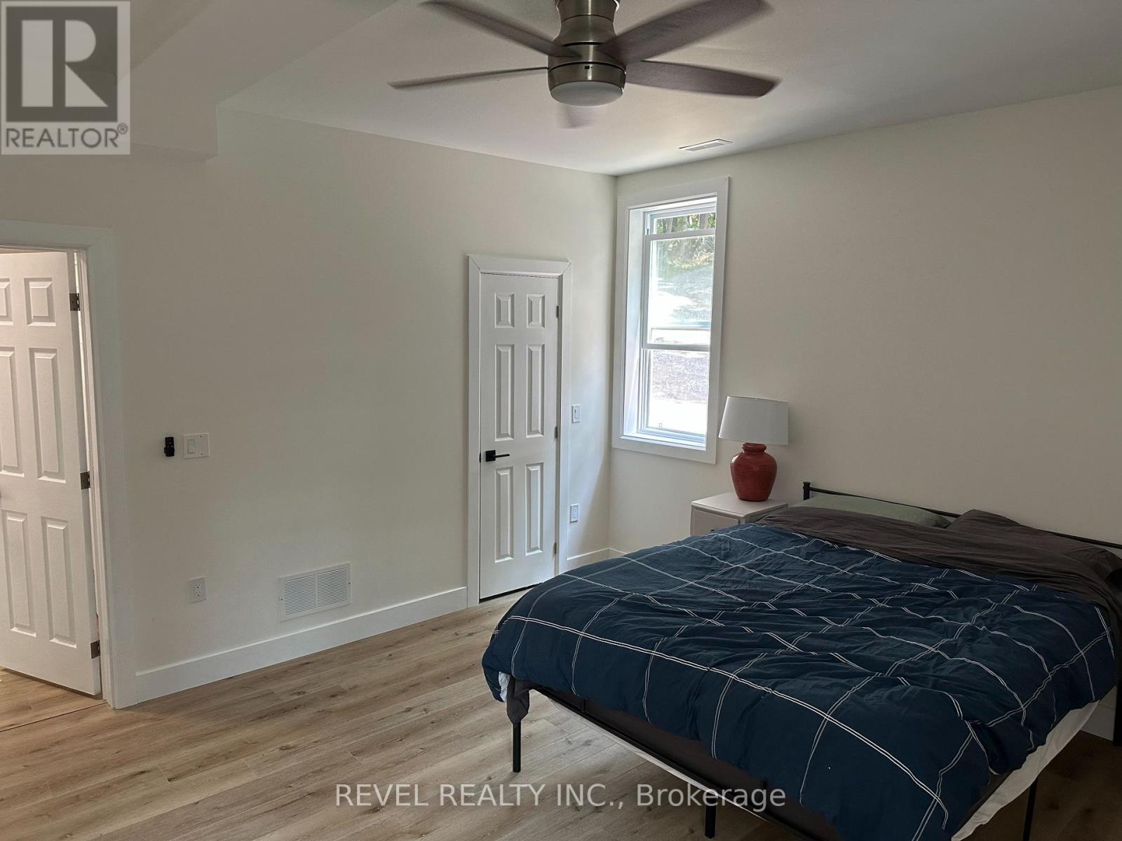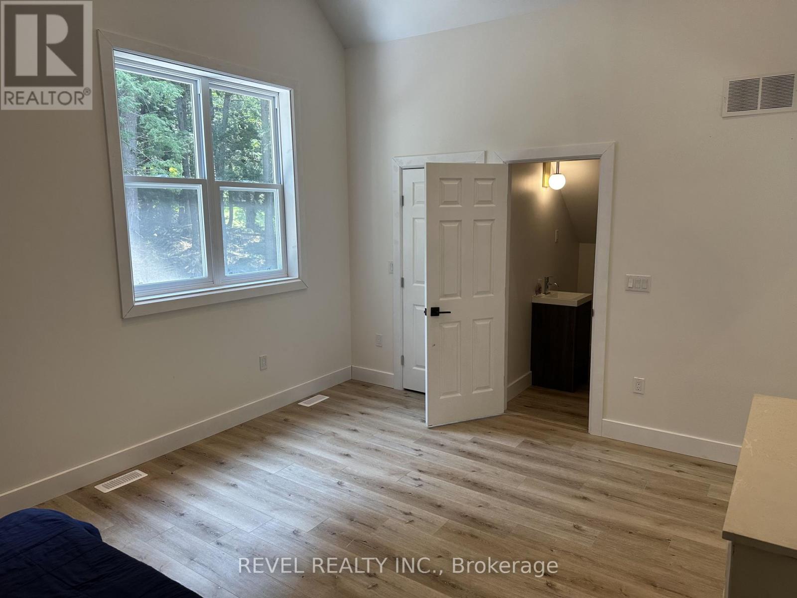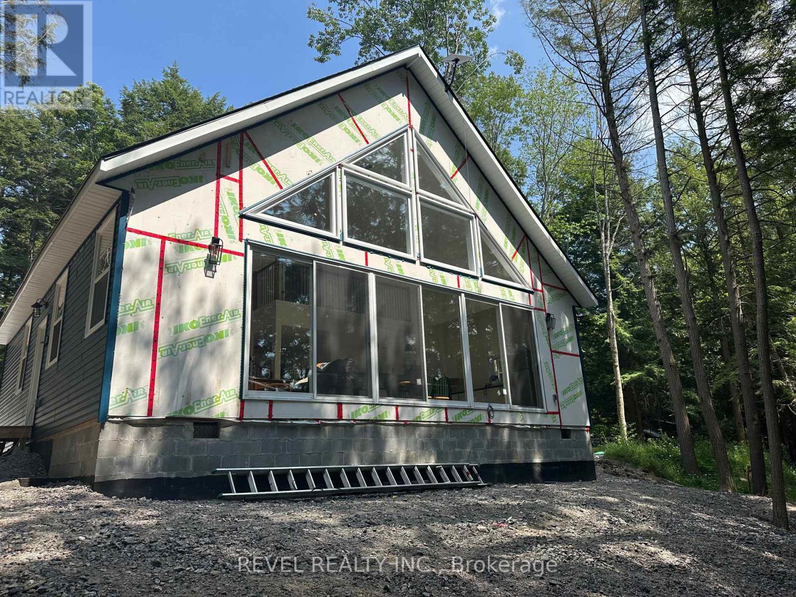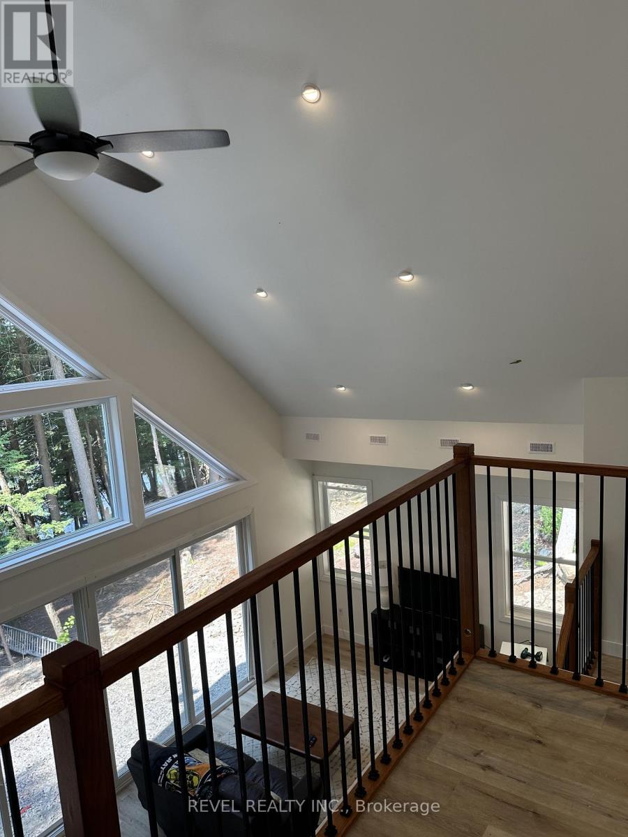 Privacy and seclusion! This stunning custom built cottage will wow you. Sitting atop 11 pristine acres on a laneway with only 3 other cottages and surrounded by forest, it boasts 300+ feet of shoreline where East and West Poverty Bay open up. The main floor consists of a huge great room with vaulted ceilings, gorgeous windows and triple sliding doors overlooking the water. Full kitchen with propane stove, loads of counter and cupboard space and a deep sink. The living room is huge with an eating area as well. Approved plans for a 36x10 foot deck out the front with lumber on site waiting to be built. There's also 2 huge bedrooms that can sleep additional people, a full laundry room setup and a large 4 piece bathroom. Fully spray foamed and with a propane furnace for potential winter use - depending on keeping the laneway plowed. Upstairs boasts an impressive loft space overlooking the great room with full view of the forest and the water. Walk through the double doors into the massive master bedroom, complete with en suite bathroom and large closet. The property also has a full bunkie that can sleep 3 more, plus a screened in kitchenette right by the water. Brand new dock, lake water, this remarkable property is waiting for you to start making family memories, or earn additional income through rental. Book your showing today and find out what true peace and tranquility looks like! (id:51158)