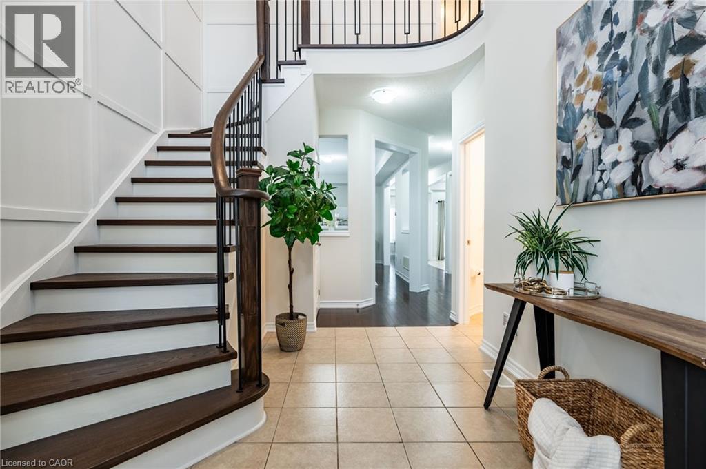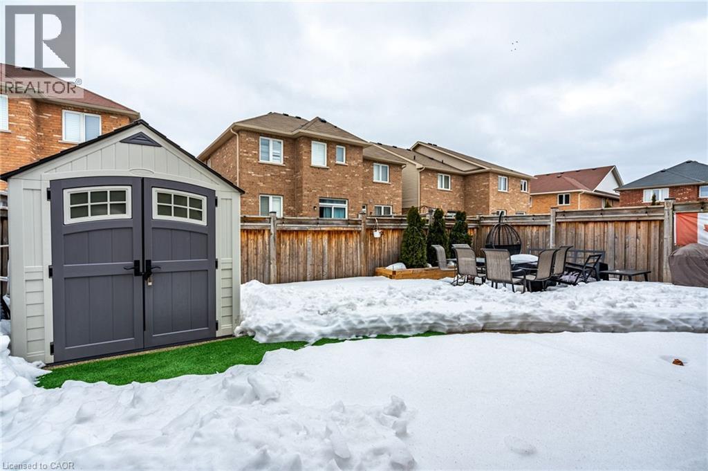 Welcome to this beautifully maintained 4-bedroom, 2.5-bath detached home in the sought-after Beaty neighbourhood in family-friendly Milton! A large grand foyer complete with beautiful updated staircase and panelled wall greets you upon entry. The main floor features a large dining room perfect for entertaining and family gatherings and an inviting family room with gas fireplace open to the kitchen with stainless steel appliances, granite countertops, ample storage, and a separate eat-in area. Upstairs you will find 4 spacious bedrooms including a large primary bedroom with walk in closet and 5 pc ensuite bathroom. This home features gorgeous hardwood floors on the main floor, and has been freshly painted throughout. Walk out to the fully landscaped backyard offering low-maintenance turf with golf putting green, a spacious exposed aggregate patio and a shed with full electrical (60 amp service) — ideal for a workshop, studio, or extra storage. The basement includes an extra large cold room and a 3-piece bathroom rough-in offering potential for future living space. Move-in ready on a quiet crescent and ideally located close to schools, parks, shopping, and highways, this home is the perfect blend of comfort and convenience! (id:51158)