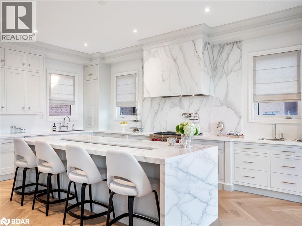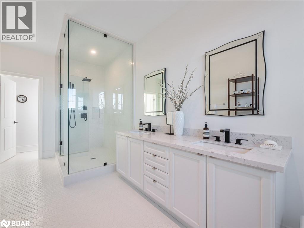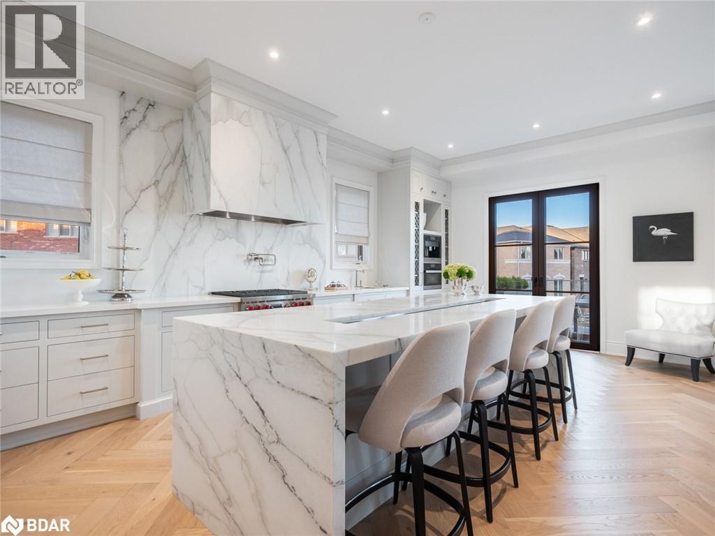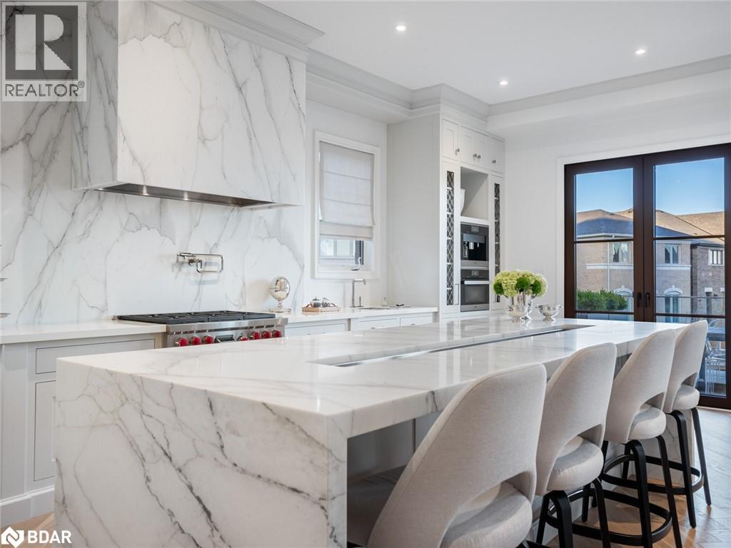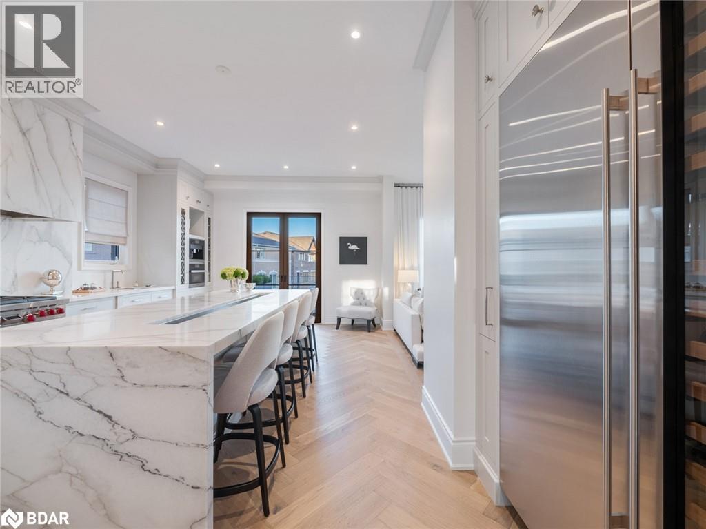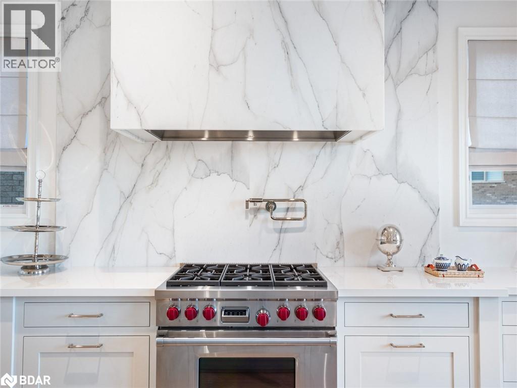 This one of a kind home was customized with the most luxurious details and finishes from top to bottom. Located on a private street at the south end of Milton bordering Oakville, this oversized pie lot with ravine and privacy matches the spacious 5,200sqft home. To name a few details you don't want to miss: the Main level features 10ft ceilings and the most stylish entertaining space. A top of the line custom Bloomsbury kitchen with stunning 10ft marble island with built-in wine trough for the ultimate in entertaining. Custom European 9ft French doors across the back of the house lead to the large deck overlooking greenspace. The upper level has 9ft ceilings and 5 bedrooms with 3 full washrooms all featuring beautiful tile and glass showers. The 5th bedroom has been converted into a spacious dressing room off the primary. Finished basement with walk-out to incredible yard features a great room, gym, studio, and four storage areas! Huge pool sized yard faces south and overlooks the conservation area. Too much to list, certainly a house you have to see. (id:51158)
