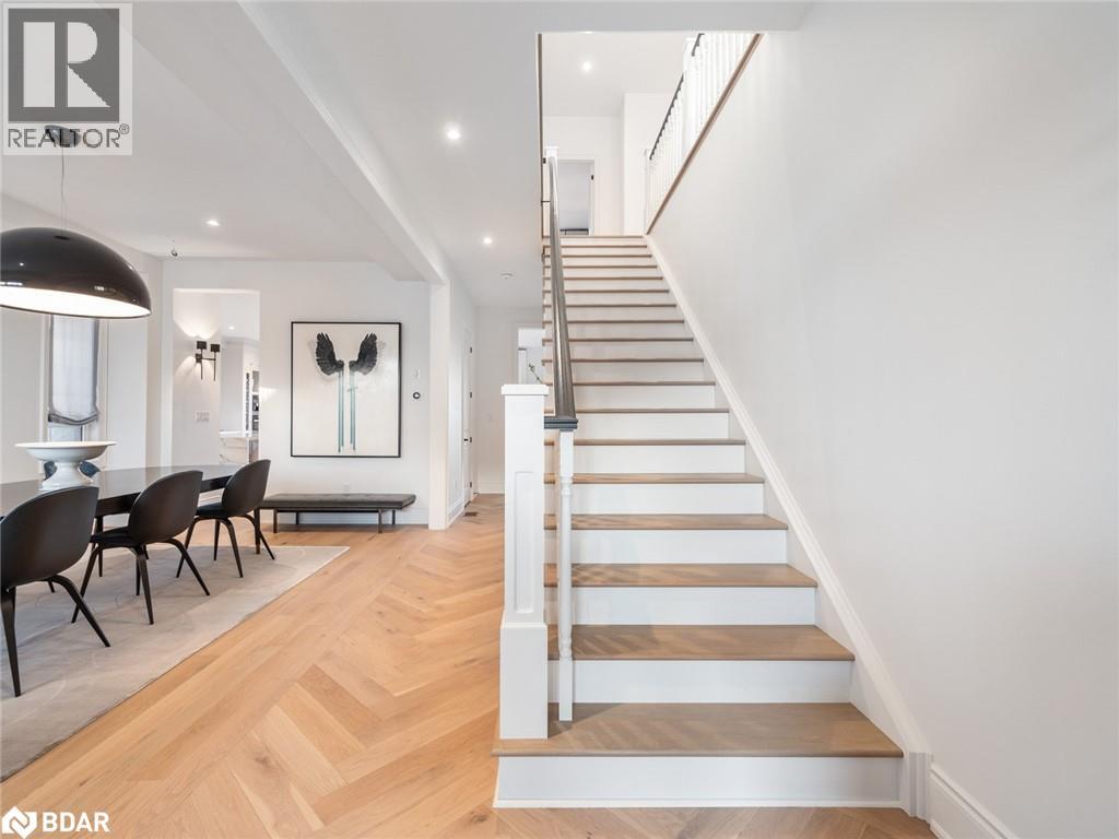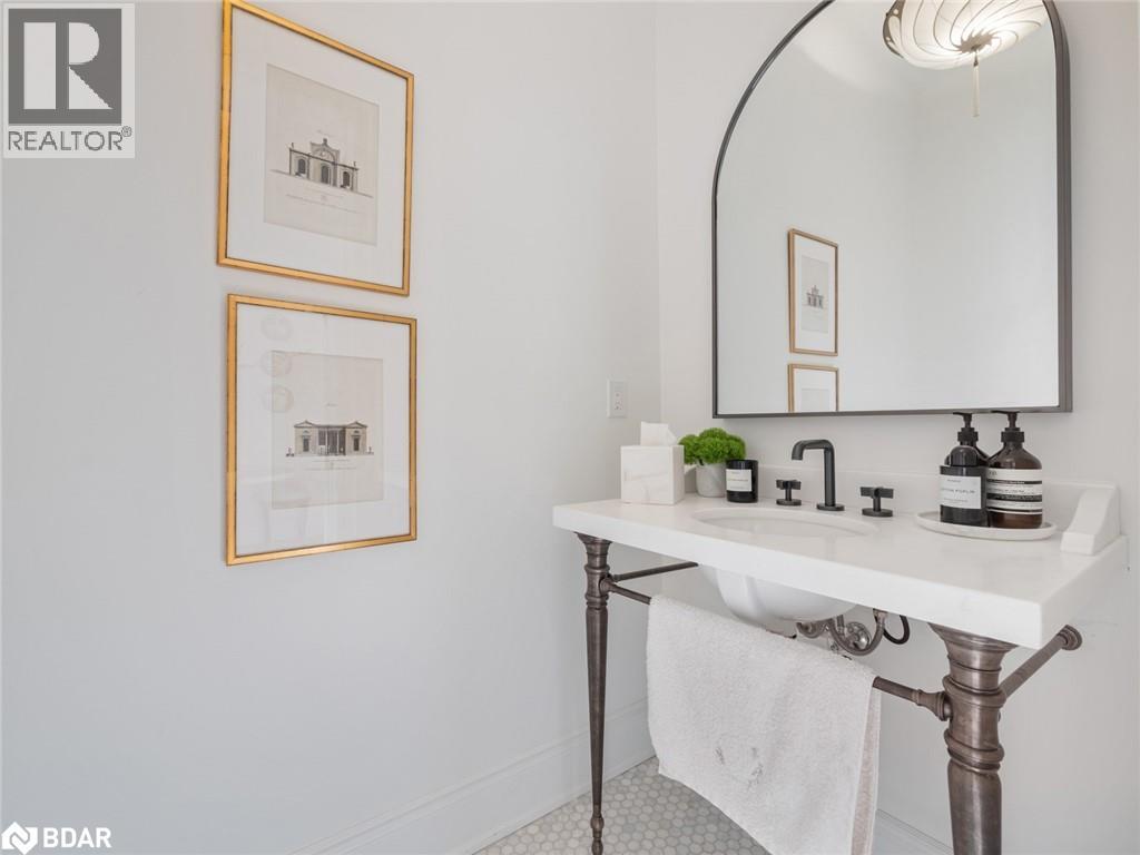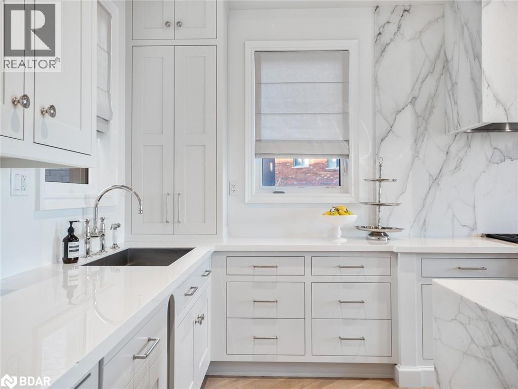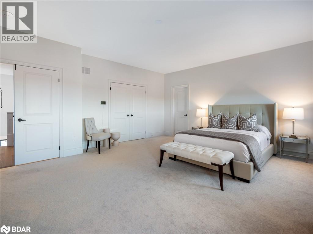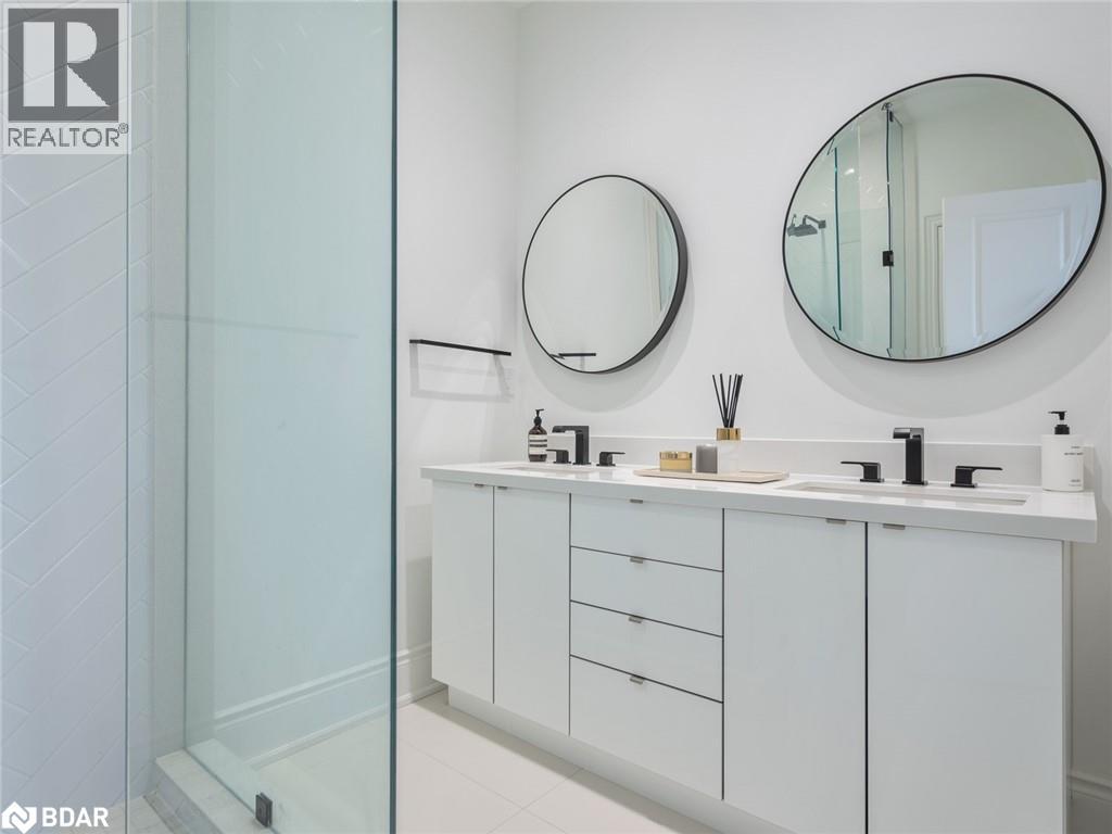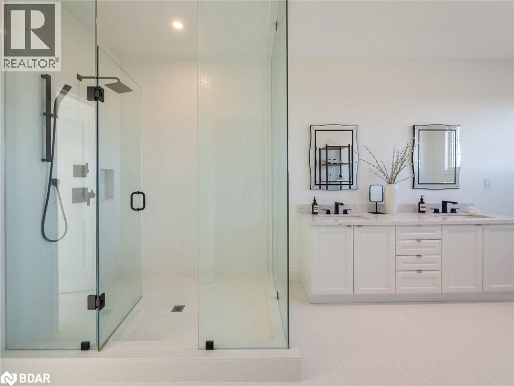 This one of a kind home was customized with the most luxurious details and finishes from top to bottom. Located on a private street at the south end of Milton bordering Oakville, this oversized pie lot with ravine and privacy matches the spacious 5,200sqft home. To name a few details you don't want to miss: the Main level features 10ft ceilings and the most stylish entertaining space. A top of the line custom Bloomsbury kitchen with stunning 10ft marble island with built-in wine trough for the ultimate in entertaining. Custom European 9ft French doors across the back of the house lead to the large deck overlooking greenspace. The upper level has 9ft ceilings and 5 bedrooms with 3 full washrooms all featuring beautiful tile and glass showers. The 5th bedroom has been converted into a spacious dressing room off the primary. Finished basement with walk-out to incredible yard features a great room, gym, studio, and four storage areas! Huge pool sized yard faces south and overlooks the conservation area. Too much to list, certainly a house you have to see. (id:51158)