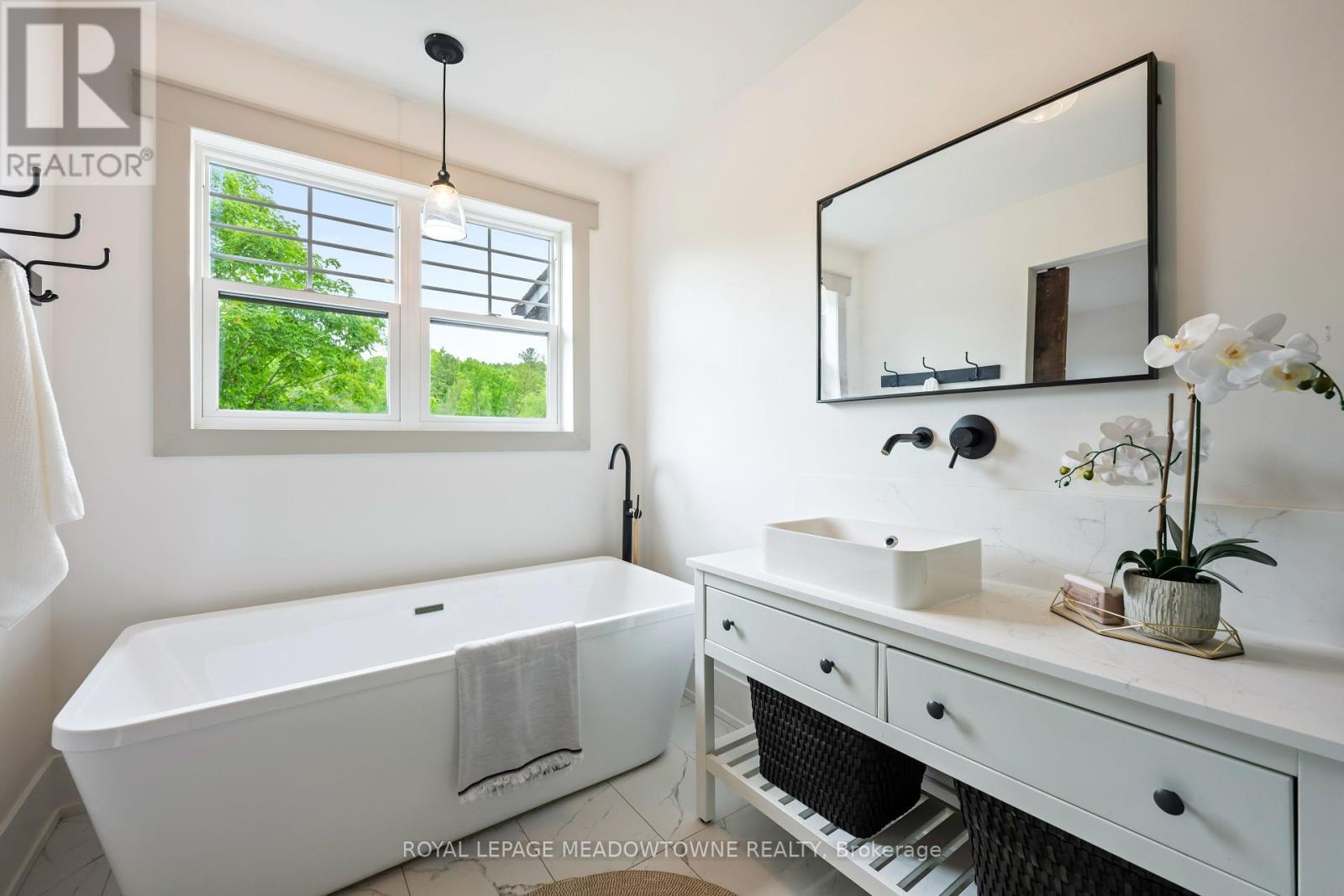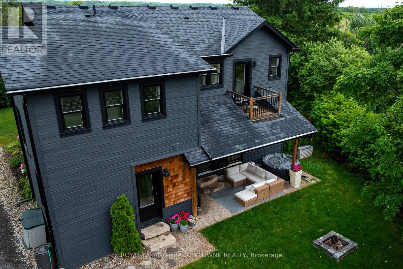 Custom Built 2019 Modern Farmhouse Retreat Surrounded by Nature w approx 3300sq ft finished sq ft, 5 bdrms, 2 kitchensNestled between the Silver Creek and Terra Cotta Conservation Areas, this custom-built modern farmhouse offers the perfect country retreat just 10 minutes from Georgetown, Erin, and Brampton, with easy access to highways.Situated on just under 2 exquisite acres abutting conservation areas, minutes to the Credit River and the GlenWilliams Arts District shops and restaurantsDesigned with a seamless blend of contemporary style and country charm, made for family living & entertaining with wide open spaces and a welcoming layout.The chefs kitchen is a showstopper, featuring a full-size side-by-sidefridge and freezer, a dual fuel five-burner gas stove, and abundant custom cabinetry. Originally designed as afour-bedroom home, the current owners have converted the 4th bdrm into an expansive dressing room connected tothe primary suite complete with balconey The conversion is easily reversible as the original framing remains. Theprimary ensuite features a standalone, oversized soaker tub perfectly positioned beneath windows that framebreathtaking views of the Niagara Escarpment.The two additional bedrooms are generously sized with large closetsand picturesque views from every window. The finished lower level offers a private one-bedroom suite with aseparate side entranceideal for guests, multi-generation or teen hangouts. A separate home gym adds functionalityto the space.Enjoy landscaped grounds, gated long private driveway , a covered front porch, and a serene covered back porchoverlooking mature trees and open skies. The oversized two-car garage includes convenient rear yard access andEVCWell is exceptional with 5 gallon/minute flow rate ( attachment) Home drawings pdf avail. Generlink transfer switchfor back up power.Septic, furnace, windows, shingles, electrical (200amp), plumbing 2019. AC 2025.Garage electric upgrade 2024 (id:51158)