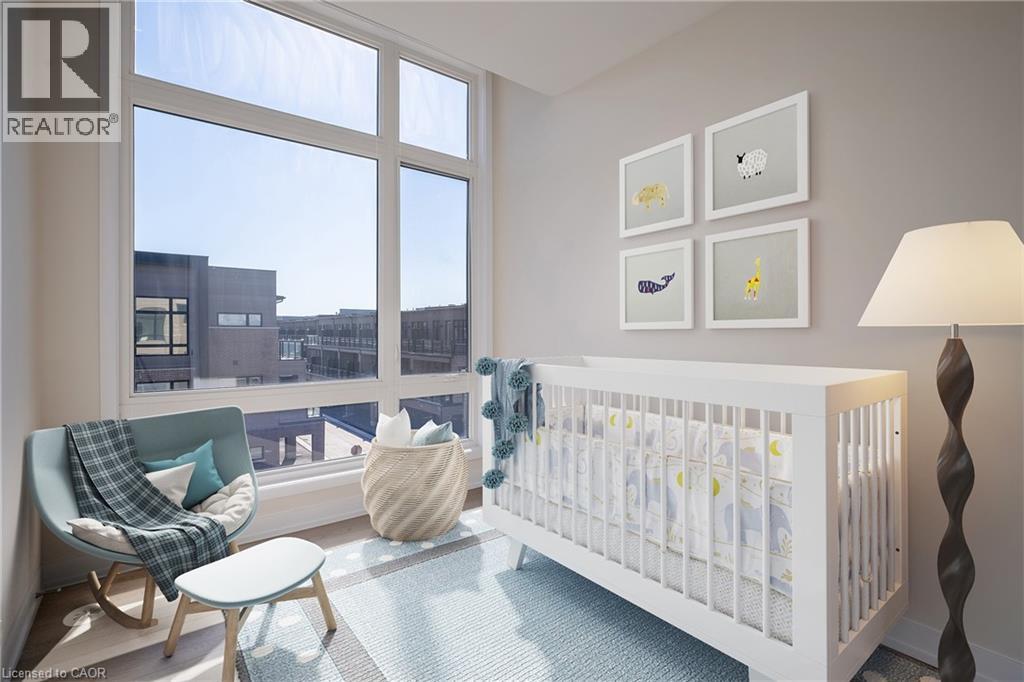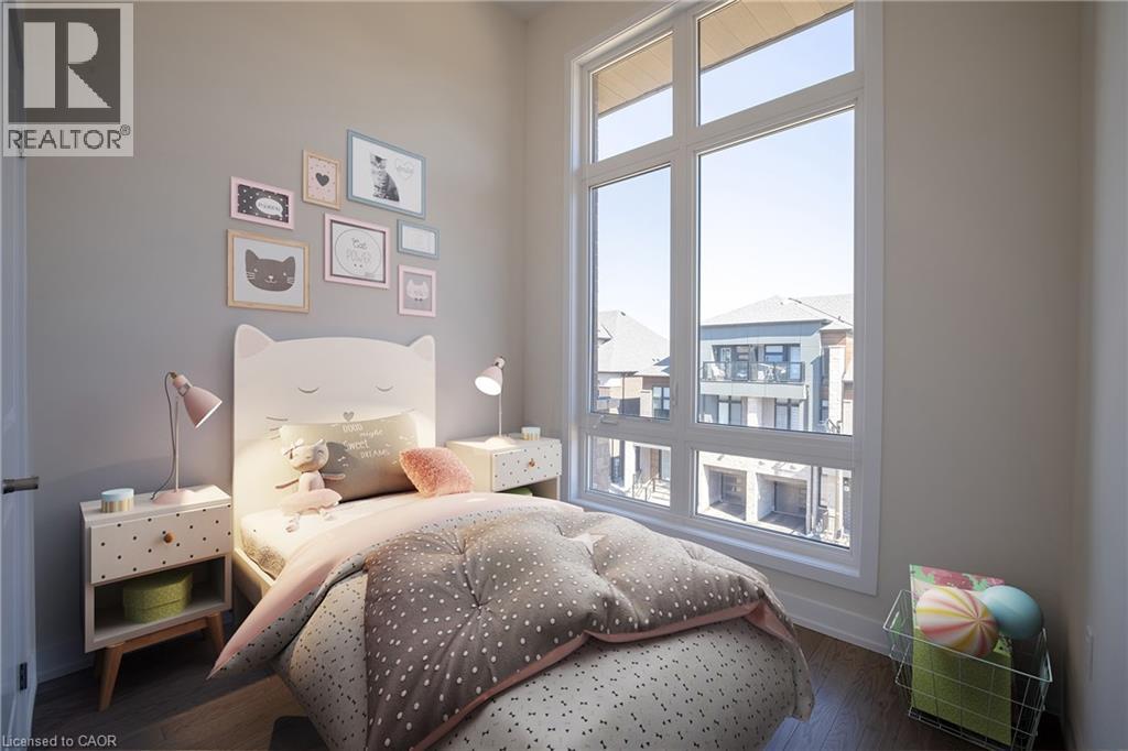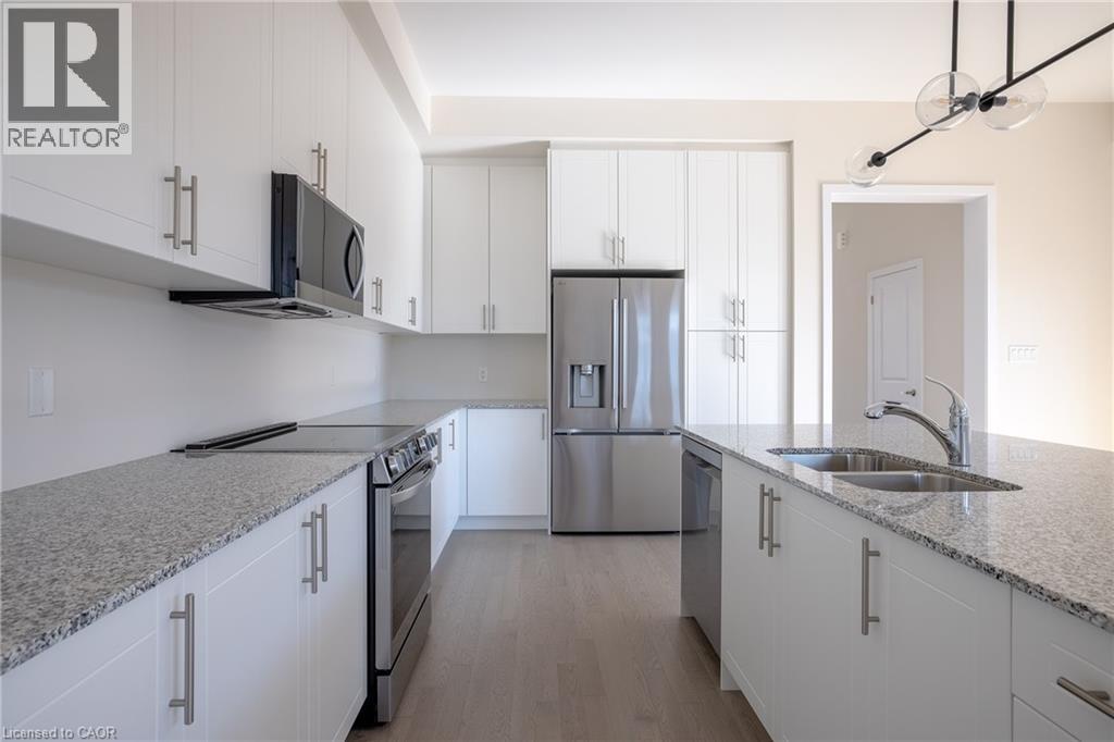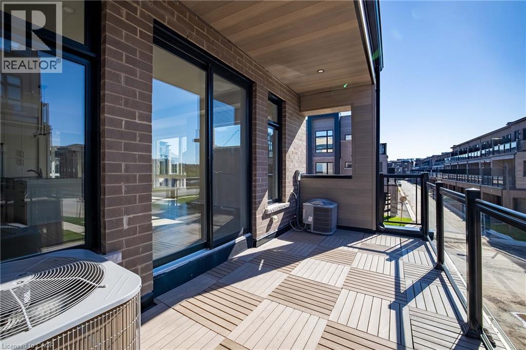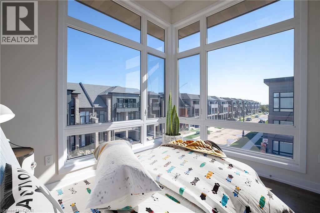 Welcome to Upper Joshua Creek. This modern end unit townhome offers 5 bedrooms, 4 full and 1 half baths, and 2,560 sq ft of finished living space. The ground level opens to a welcoming foyer with a laundry room that has direct garage access, plus a bright corner bedroom with its own three piece ensuite. Hardwood and ceramic tile run throughout the home. The second floor is light filled with an open concept kitchen, dining, and living area under 10 ft ceilings. The kitchen features stainless steel appliances, a centre island, and generous storage. The dining room has a walkout to the balcony for easy indoor to outdoor entertaining, and a powder room completes the level. The primary bedroom includes a private balcony and a 5 piece ensuite with a freestanding deep soaker tub, seamless glass shower, and a double vanity with undermount sinks. Three additional bedrooms and two 4 piece baths provide flexible space for family, guests, or a home office. Minutes to 403, QEW, and 407, and close to parks, trails, shops, and well regarded schools. (id:51158)