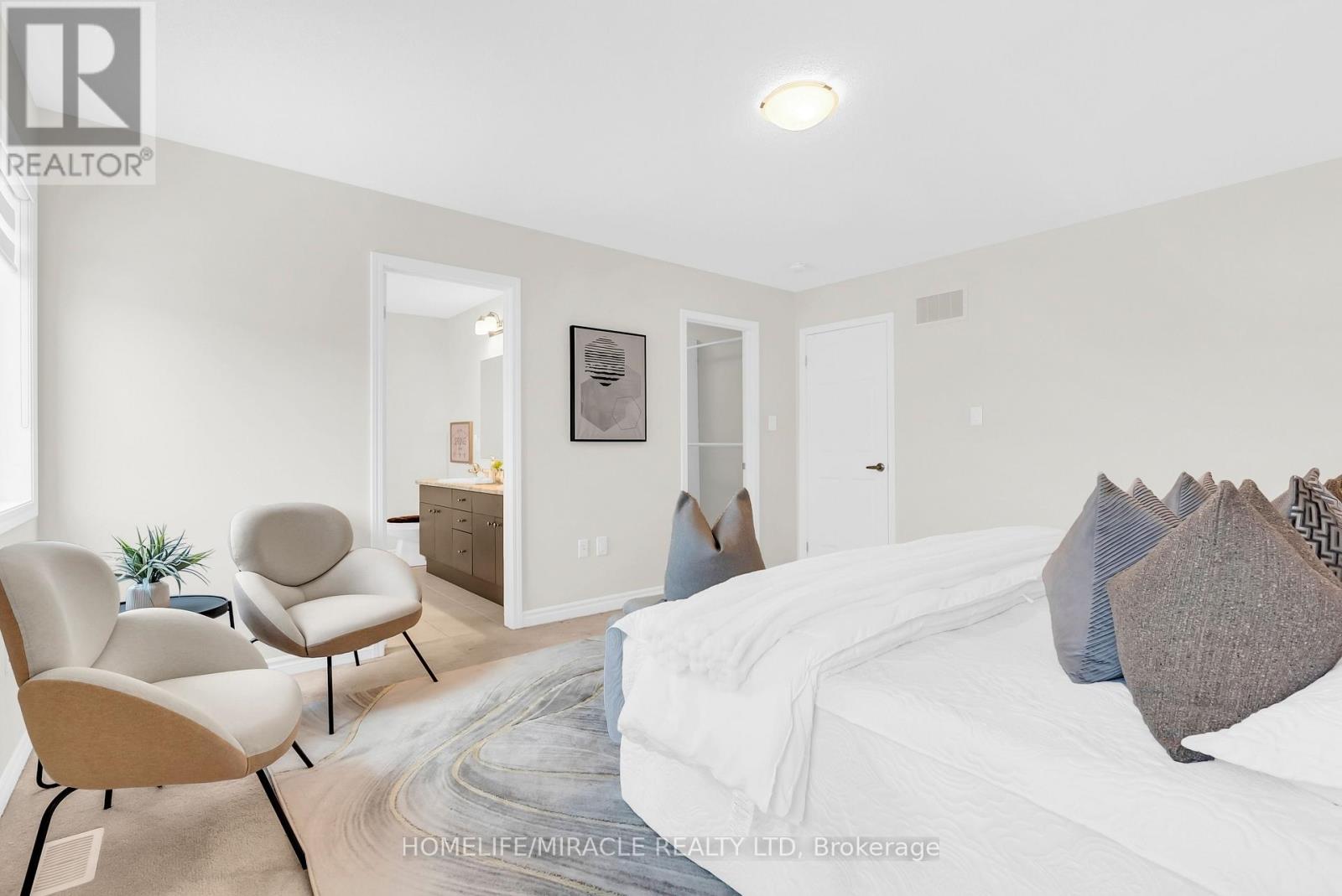 Milton's most sought-after, family-friendly neighborhoods, offering approximately 2,616 sq. ft. of total living space. The home features a modern kitchen complete with stainless steel appliances, ample cabinetry, and a functional island, seamlessly opening into a sun-filled breakfast and family area. Hardwood floors and large windows create a bright and inviting atmosphere, perfect for everyday living and entertaining. The upper level offers spacious additional bedrooms ideal for kids, guests, or a home office, along with a front-facing balcony. A convenient second-floor laundry room adds everyday practicality. Enjoy peace of mind knowing this home has been well maintained, with updated mechanicals and energy-efficient features, including an electric vehicle charger. The finished basement provides endless opportunities for family fun and entertaining , featuring laminate flooring and a full bathroom with a modern glass shower. Step outside to a beautifully landscaped backyard, perfect for BBQs, children's playtime, or relaxing with your morning coffee. A single-car garage and driveway offer ample parking for the family. Ideally located close to top-rated schools, hospitals, parks, and amenities, this home truly has it all, minutes drive to Toronto Premium Outlet Mall and Milton GO station. (id:51158)