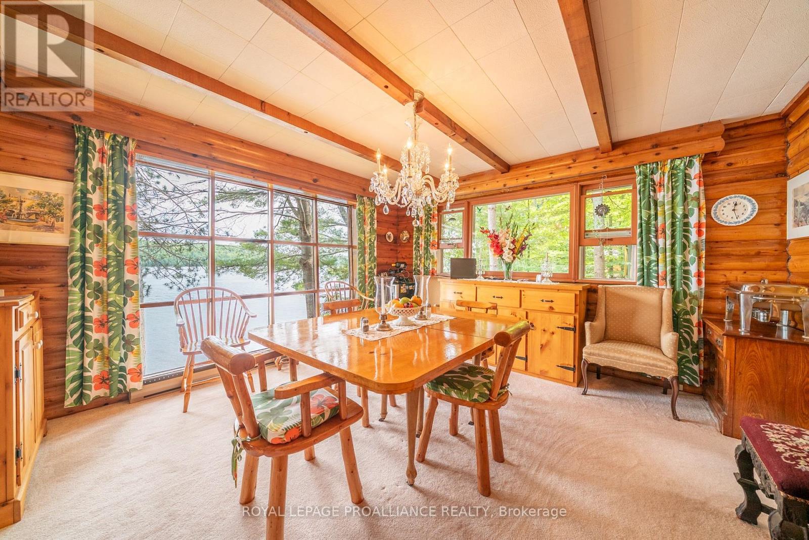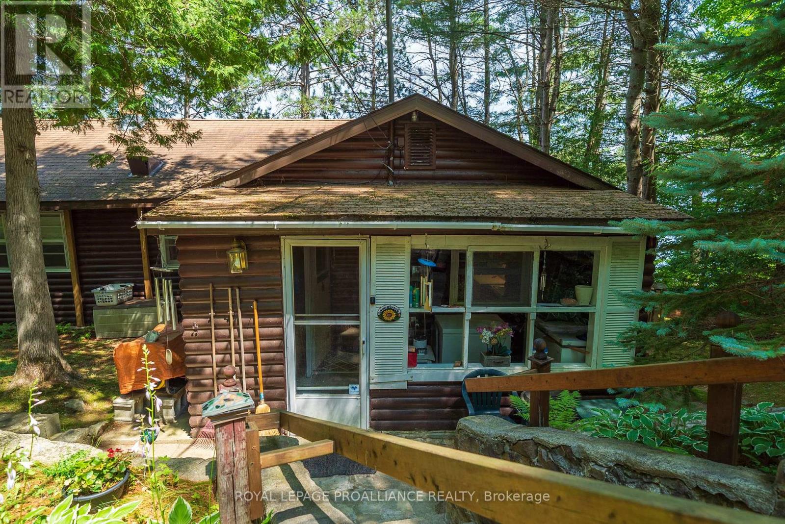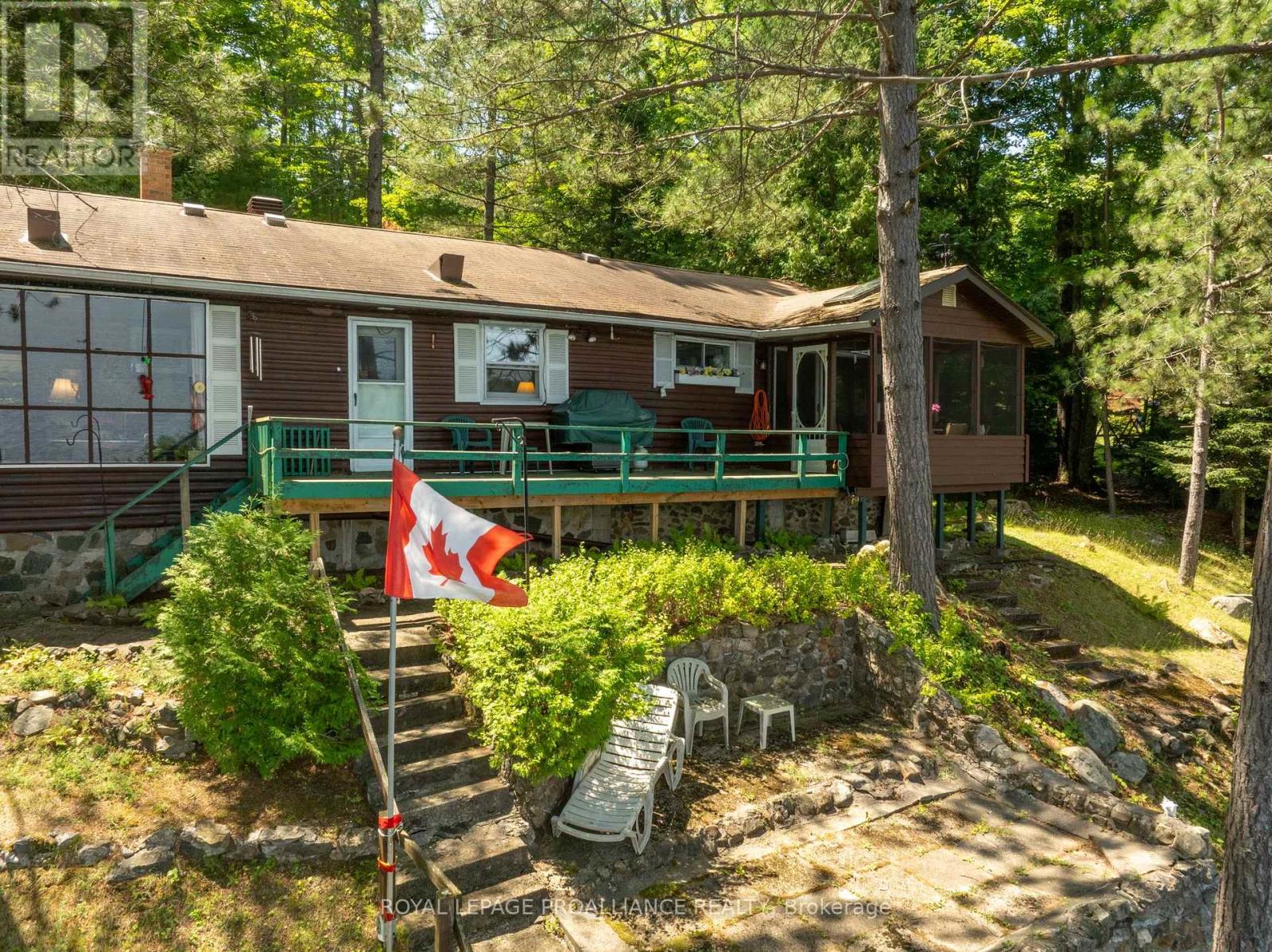 Step into a world where history, tradition, and breathtaking landscapes converge. This remarkable 4-season log cottage offers a rare opportunity to own a piece of Mazinaw Lake's storied heritage. Boasting 137 ft of pristine shoreline and located just steps from the iconic Bon Echo Provincial Park, this is the ultimate retreat for those who seek a deeper connection to nature. Spanning 1,950 square feet of masterfully crafted living space, this traditional log home is designed for year-round comfort and grand-scale hosting. With 4 spacious bedrooms and 2 full bathrooms, there is ample room for the whole family to gather. The heart of the home is the expansive living area, where you can bask in the warmth of the wood fireplace while gazing through large windows at the panoramic lake views. Whether you are watching the Sail Mazinaw Regatta from your lakeside deck, enjoying a quiet morning in the private screened porch off the primary suite, or exploring the kilometers of trails and sandy beaches at Bon Echo, the lifestyle here is unparalleled. A separate workshop building provides the perfect space for artisans or hobbyists to bring their projects to life amidst the serenity of the lake. Key Features include: Iconic Setting: 137 ft of pristine waterfront on Mazinaw Lake, adjacent to Bon Echo Park. Master Craftsmanship: 1,950 sq. ft. 4-season log construction offering timeless charm and durability. Spacious Accommodations: 4 Bedrooms and 2 Bathrooms, perfect for multi-generational use. Outdoor Living: Multi-level lakeside patios, a private screened porch, and a dedicated workshop building. Year-Round Comfort: Wood-burning fireplace and full seasonal insulation for winter escapes. Rarely does a property of this caliber and historical significance become available on Mazinaw Lake. Secure your private paradise and begin your own tradition. (id:51158)