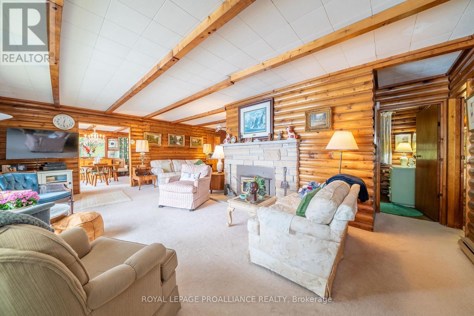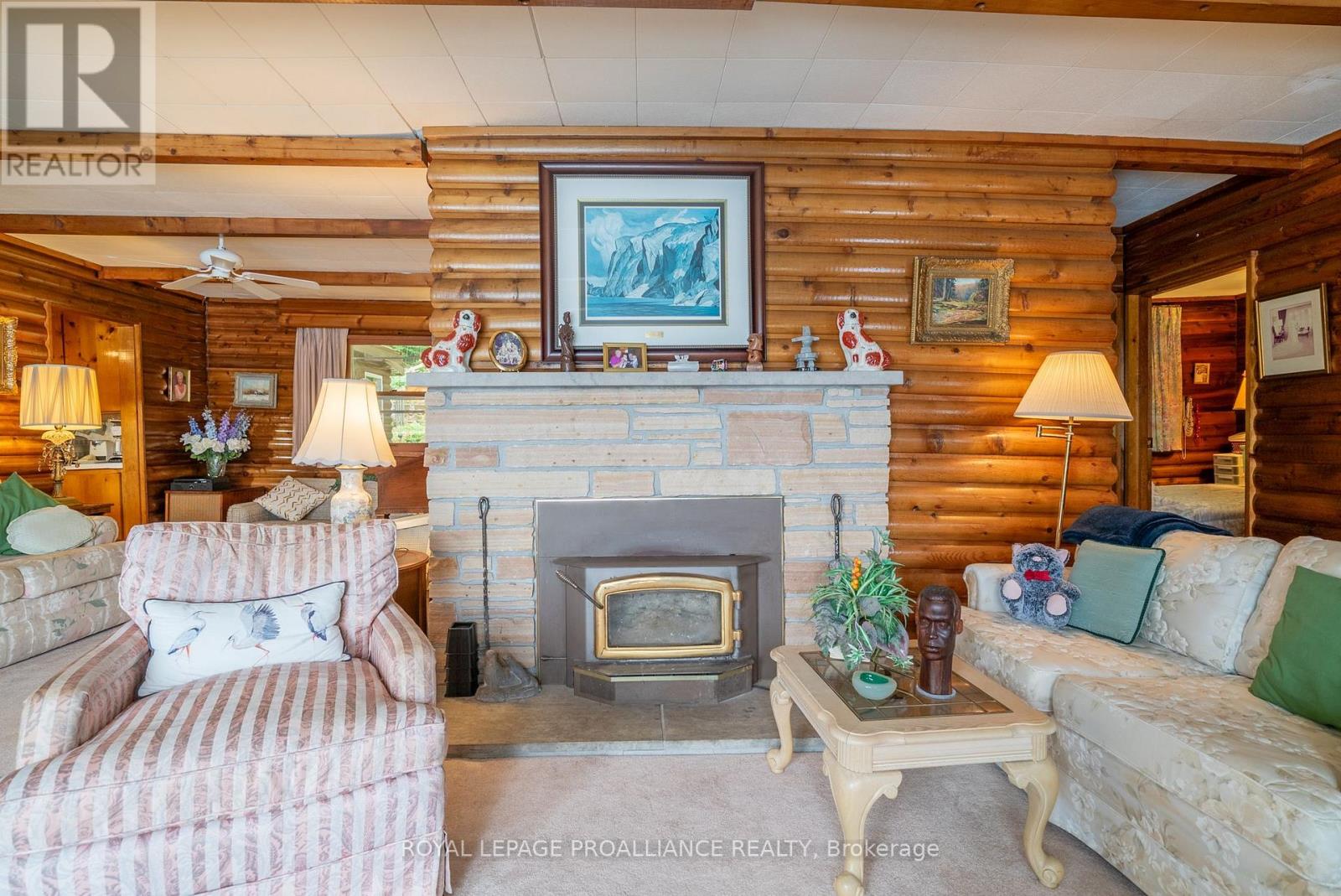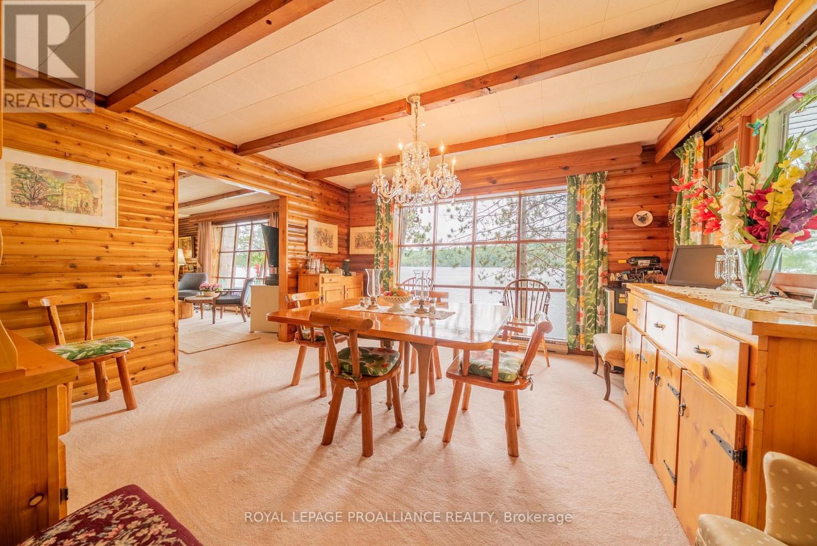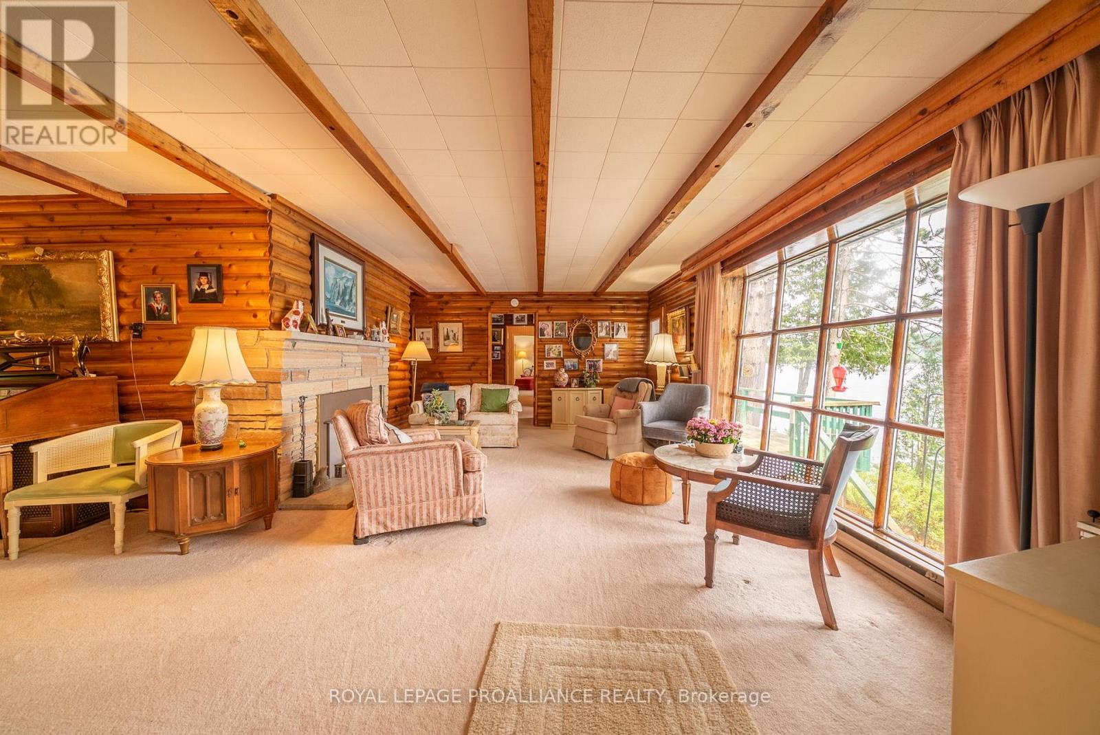 Step into a world where history, tradition, and breathtaking landscapes converge. This remarkable 4-season log cottage offers a rare opportunity to own a piece of Mazinaw Lake's storied heritage. Boasting 137 ft of pristine shoreline and located just steps from the iconic Bon Echo Provincial Park, this is the ultimate retreat for those who seek a deeper connection to nature. Spanning 1,950 square feet of masterfully crafted living space, this traditional log home is designed for year-round comfort and grand-scale hosting. With 4 spacious bedrooms and 2 full bathrooms, there is ample room for the whole family to gather. The heart of the home is the expansive living area, where you can bask in the warmth of the wood fireplace while gazing through large windows at the panoramic lake views. Whether you are watching the Sail Mazinaw Regatta from your lakeside deck, enjoying a quiet morning in the private screened porch off the primary suite, or exploring the kilometers of trails and sandy beaches at Bon Echo, the lifestyle here is unparalleled. A separate workshop building provides the perfect space for artisans or hobbyists to bring their projects to life amidst the serenity of the lake. Key Features include: Iconic Setting: 137 ft of pristine waterfront on Mazinaw Lake, adjacent to Bon Echo Park. Master Craftsmanship: 1,950 sq. ft. 4-season log construction offering timeless charm and durability. Spacious Accommodations: 4 Bedrooms and 2 Bathrooms, perfect for multi-generational use. Outdoor Living: Multi-level lakeside patios, a private screened porch, and a dedicated workshop building. Year-Round Comfort: Wood-burning fireplace and full seasonal insulation for winter escapes. Rarely does a property of this caliber and historical significance become available on Mazinaw Lake. Secure your private paradise and begin your own tradition. (id:51158)