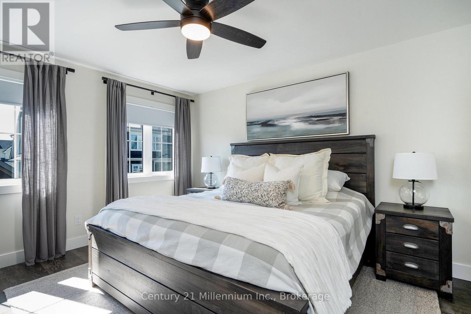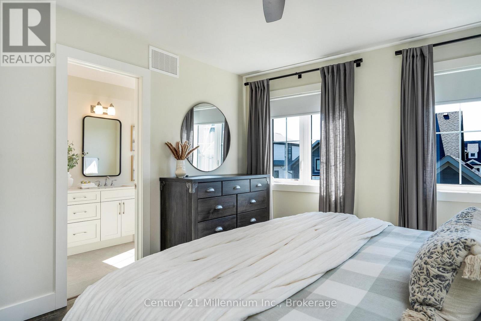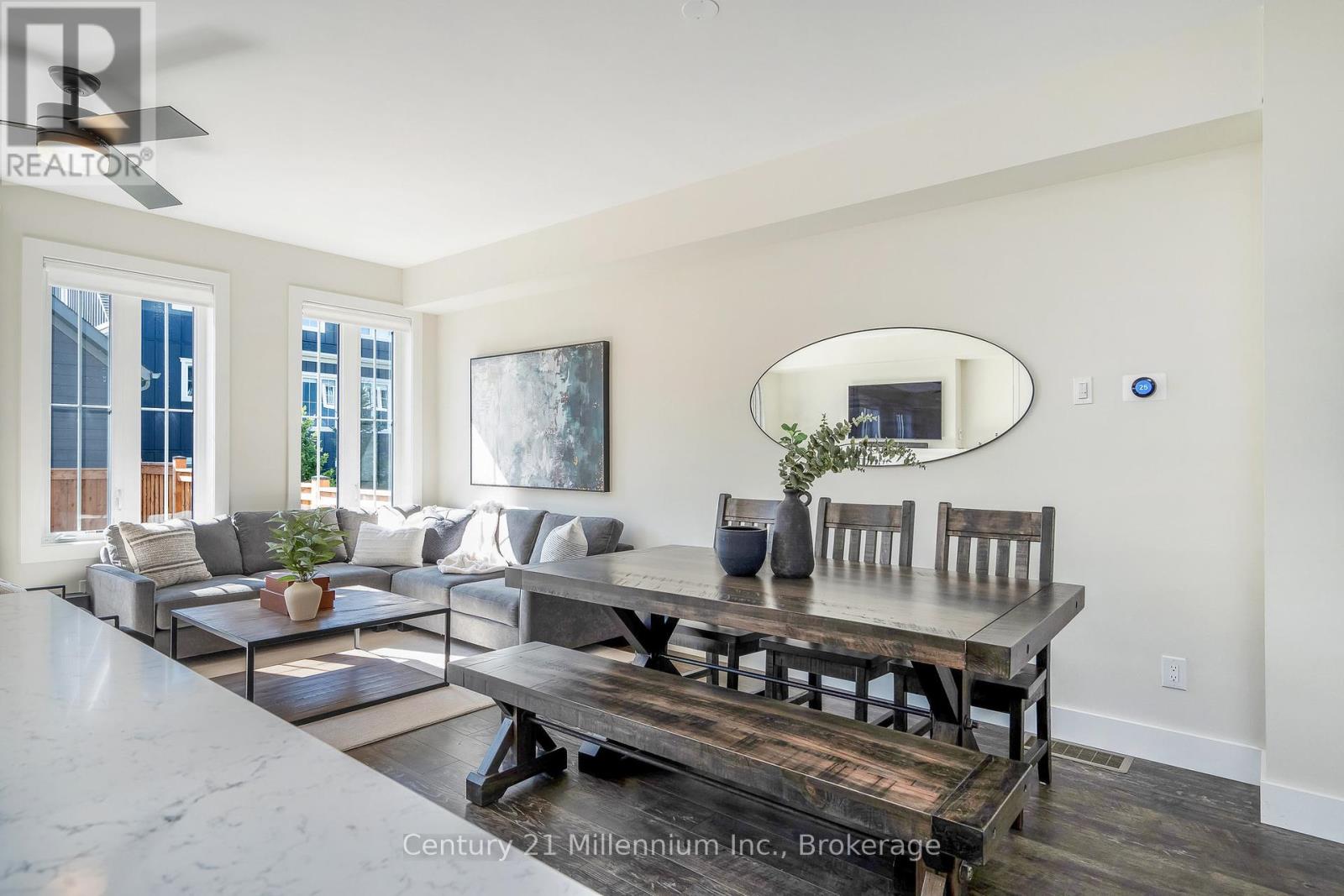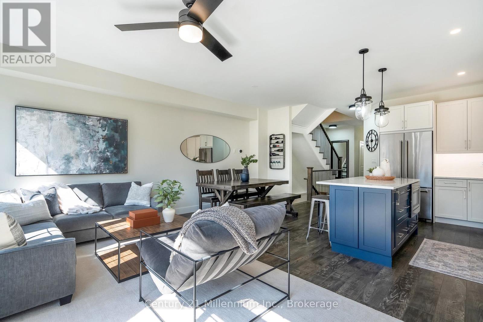 $84.64 MonthlyStunning, rare 4-bedroom Mowat model is thoughtfully upgraded for both family living and four-season fun. This gorgeous home is carpet-free throughout. The stylish chef's kitchen offers stone counters, under-cabinet lighting, and a premium induction double oven designed for entertaining with ease. This coveted layout allows for a full-sized sectional sofa to enjoy cozy evenings in front of the gas fireplace. The spacious main living area flows seamlessly to the South-facing backyard, where you will enjoy afternoon sun in your fully fenced yard. A hot tub rough-in is ready for you to create the ultimate outdoor oasis. Upstairs, the owner's suite provides a spa-like ensuite with double sinks. Four generously sized bedrooms offer plenty of space for family or guests, while modern conveniences like a Ubiquity Wi-Fi mesh system ensure strong, reliable connectivity throughout the home - designed for remote work or streaming. The driveway and garage provide parking for up to three cars, making it as functional as it is stylish. Steps from Windfall's amenity centre 'The Shed', offering a year-round heated pool, hot tub, gym, sauna and community gathering hub. Whether you're looking for a full-time home or a four-season getaway, this property offers the perfect balance of practicality and luxury in the heart of the Blue Mountains. (id:51158)