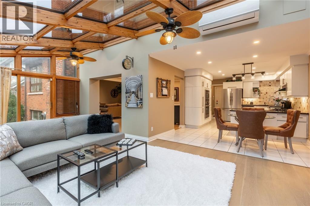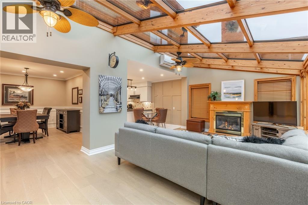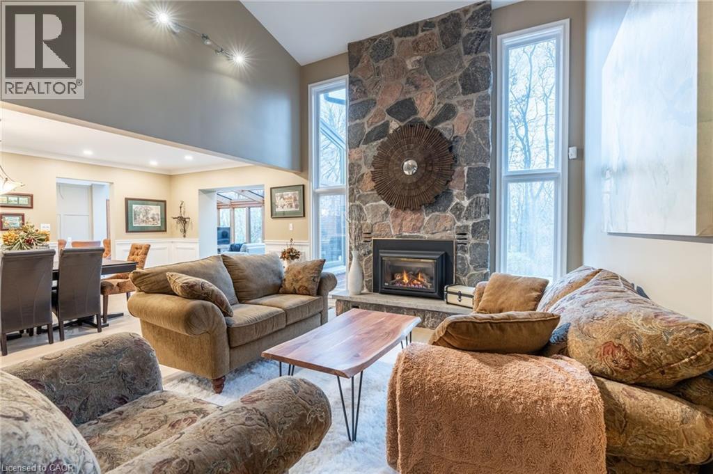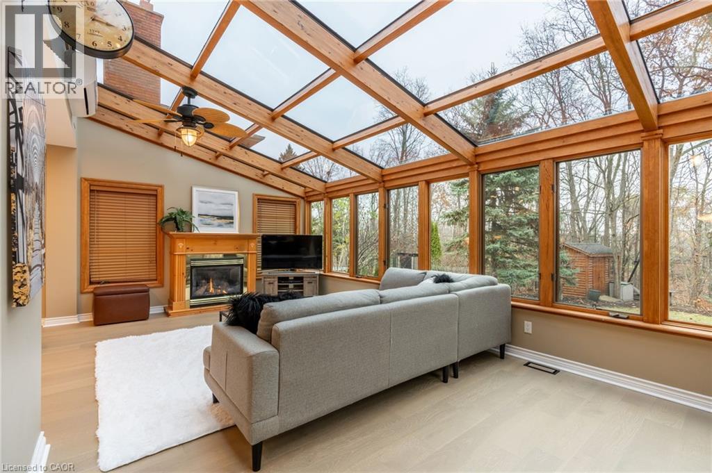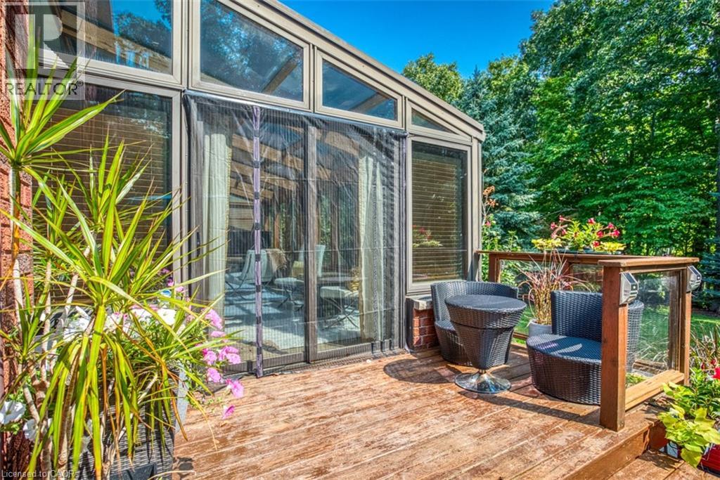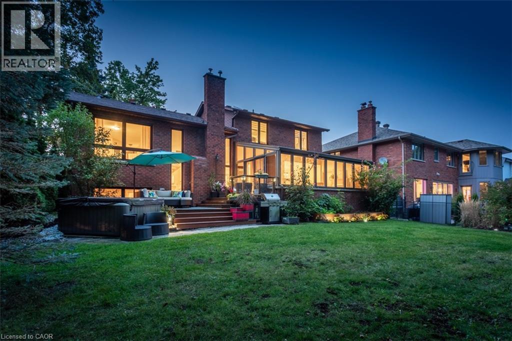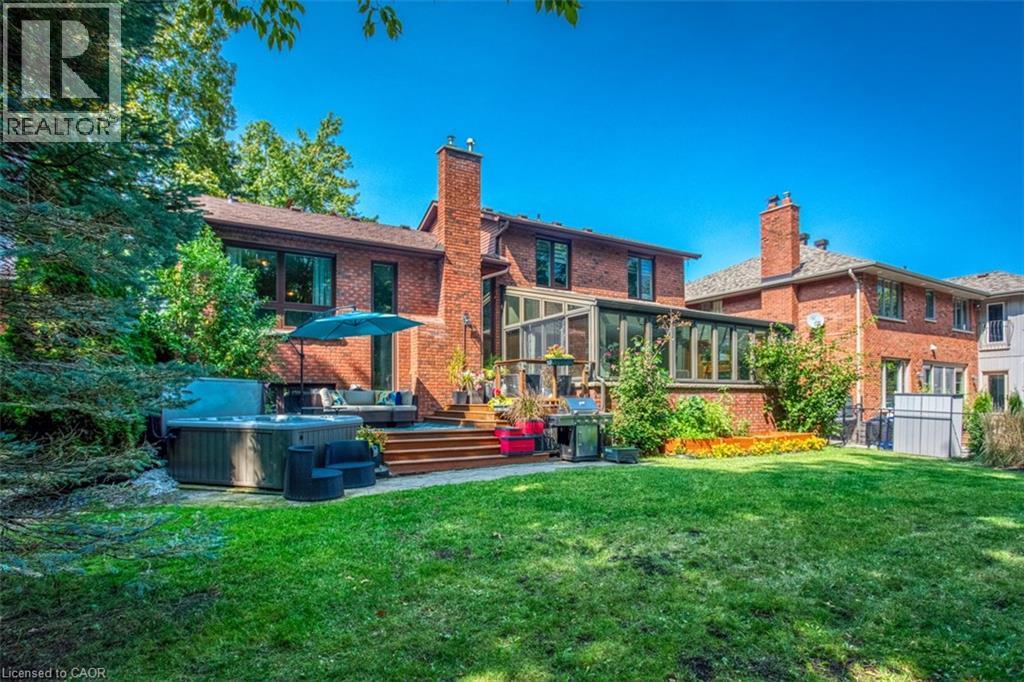 RAVINE SETTING - One-of-a-kind built, brick, 4 bd, 4 bth home - nestled on a 60 x 144 ft premium lot. Too special to build the ordinary - designed for entertaining & building memories. EXCELLENT CURB APPEAL - UPDATED & METICULOUSLY maintained. Boasting Pride-ofOwnership featuring a SOARING VAULTED CEILING in the living room with a DRAMATIC STONE GAS FIREPLACE, a SUNFILLED 4 season SUNROOM with glassed-window walls bringing the outdoors inside. The 'chefs' kitchen has an abundance of counter space, 'Frigidaire' & 'Bosch' appliances, pantry, wine fridge & breakfast area - a large dining room for family gatherings. Richly panelled walls in the MAIN FLOOR OFFICE have plenty of built-in bookshelves, desk area & oversized window. A MAIN FLOOR HOME THEATRE has its own wet bar - movie night with the family! The primary bedroom offers a secluded area for peace & quietness with a walk-in closet, 5 piece ensuite, separate shower stall, soaker tub & double vanity. 3 remaining bedrooms, on a separate wing, are spacious with ample closet space. A full size basement has a recreation room, multi-purpose & exercise area, 3 piece bath, coldroom & utility room. The over-sized double car garage has plenty of storage space, inside entry to the residence & inter-locking brick drive. The front, back & garden irrigation system has a roof censor monitor. Rear yard decking/HOT TUB. Quick access to area amenities such as Schools, Hwy's 5, 407 & 403, Places of Worship - SOUGHT AFTER AREA!! (id:51158)