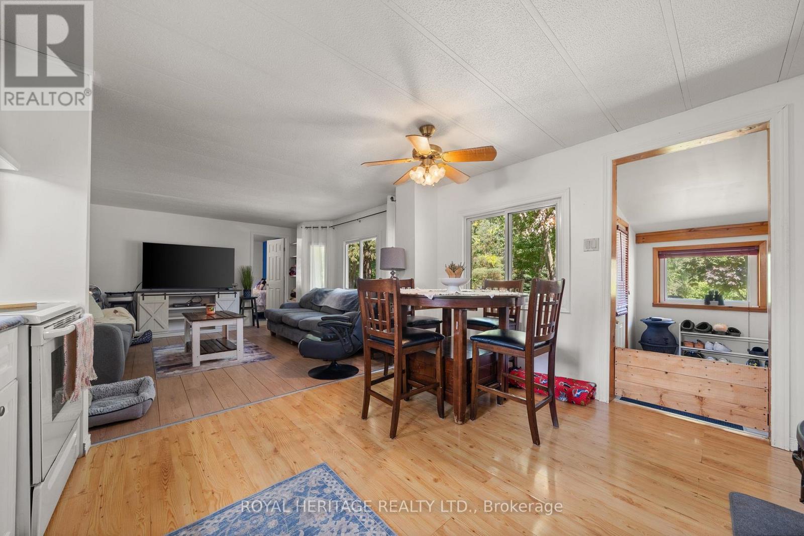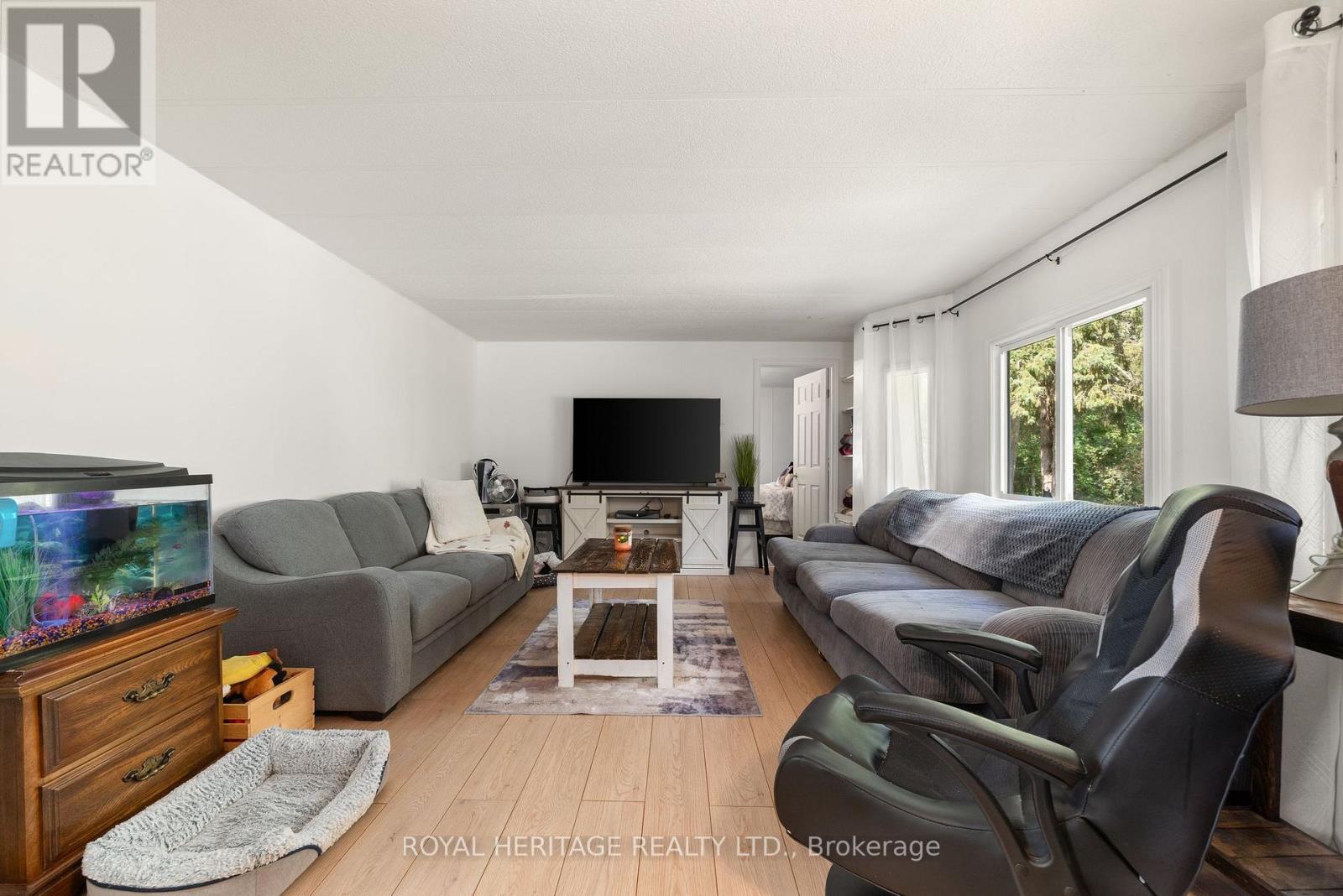 Welcome home to this beautifully maintained and move-in ready home located in the Bayview Estates community. Come live among the woods at the back of the park, enjoy the peace and quiet as you are surrounded by nature and the sounds of the pond. Enter into the home through a sun-filled, airy all season sunroom - perfect for morning coffee or peaceful afternoon tea. Sitting right off there is the inviting open-concept kitchen and dining area, ideal for entertaining guests or casual family meals. The freshly painted interior in neutral tones provides a clean, modern feel, the perfect backdrop for your personal style. Relax in the spacious living room with new hardwood floors or retreat to the generously sized primary bedroom. Two additional bedrooms offer plenty of options for family, guests, or a dedicated home office. A versatile bonus den adds even more potential, waiting to be finished and customized for your needs - be it a hobby space, media room, or quiet reading nook. Step onto your private deck that overlooks a tranquil pond in your own private fully fenced-in yard, with a wooded area just beyond, granting a sense of privacy and connection to nature. The outdoor space is ideal for your animals, entertaining, or simply soaking in the peaceful surroundings. Completing the whole package is a backyard workshop with electricity for hobbies wood working or extra storage. There is a second metal shed providing for even more storage. This home has ample parking for multiple vehicles, and direct access to nearby trails. This turnkey home truly combines practicality, comfort, and style - making it a perfect choice whether you are downsizing, searching for your first home, or just looking to simplify. Central Air (2022) Roof (2016) Furnace and Electrical upgrade (2013) Could this be your future home? (id:51158)