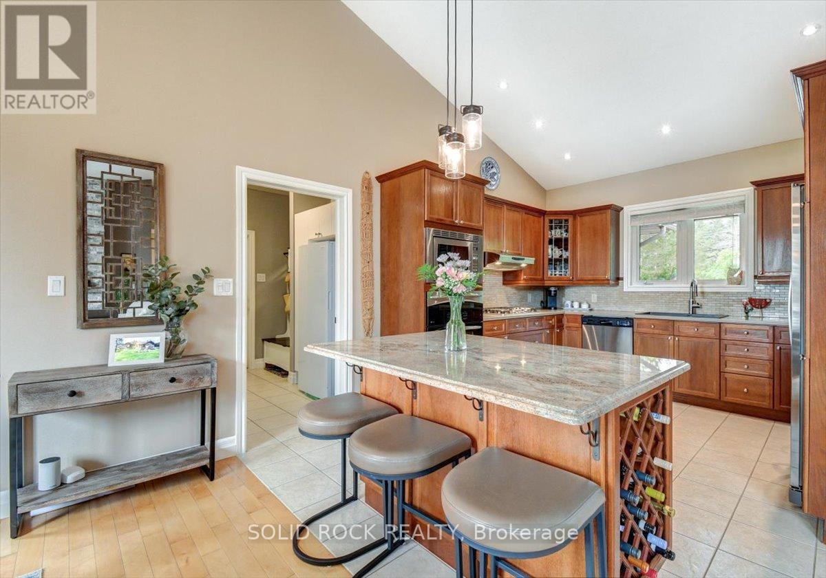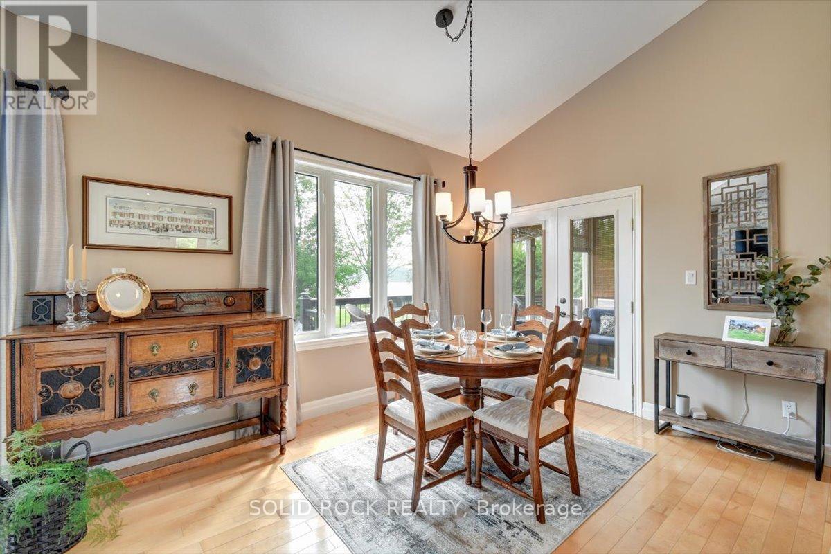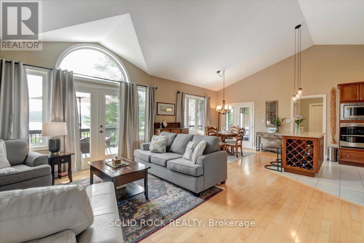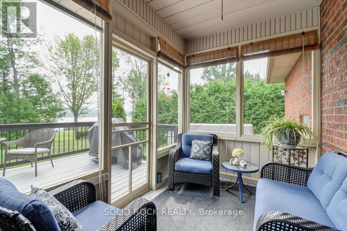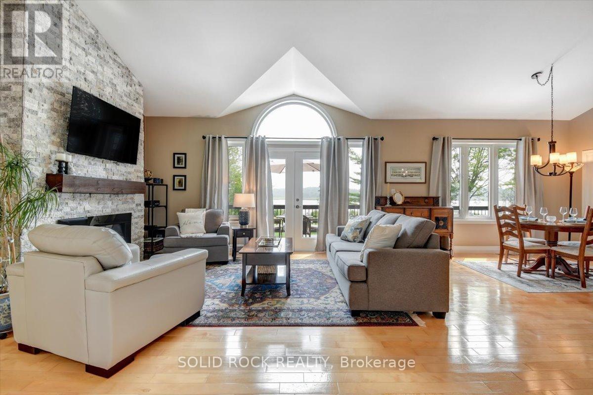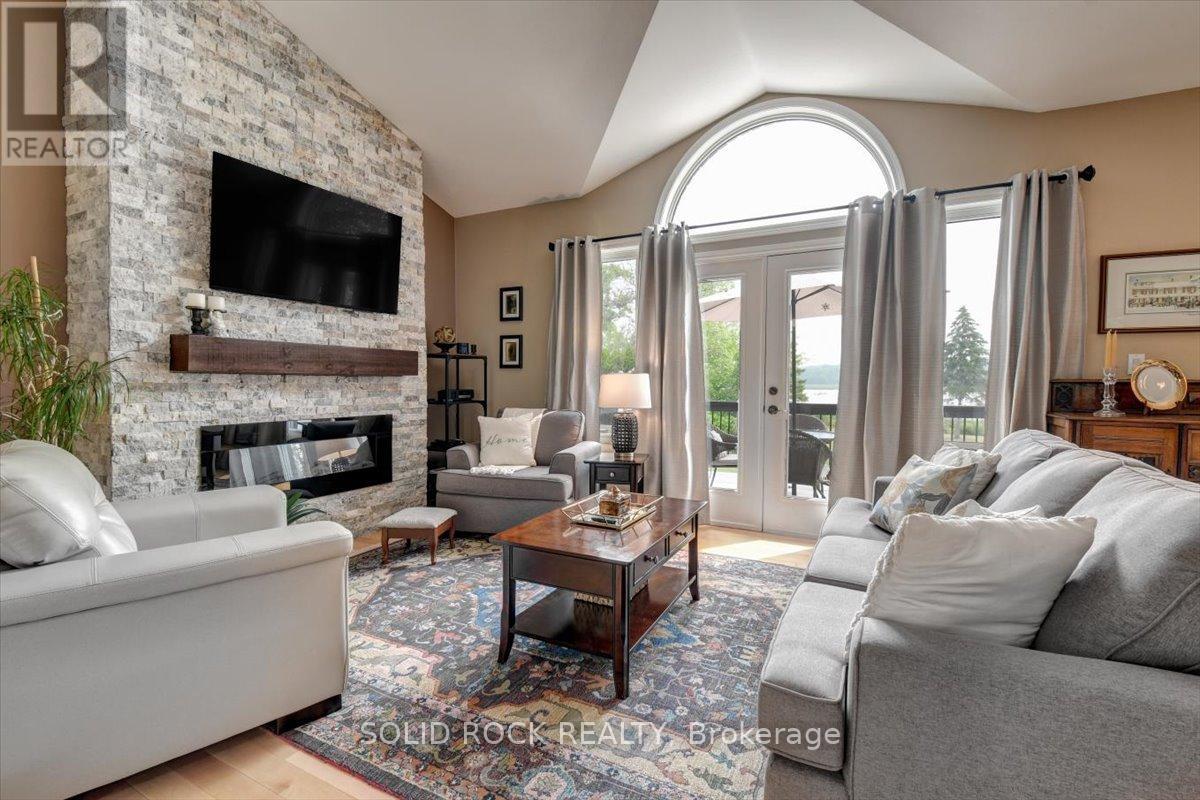Live the Waterfront Dream in Picturesque Campbellford! Welcome to this stunning 105 waterfront property, nestled in one of Campbellford's most sought-after neighbourhoods. This solid, all-brick raised bungalow is truly move-in ready and offers everything you could ask for in a forever home. Step inside and be impressed by the thoughtfully designed living space. Kitchen features include: 2 B/I ovens, gas range, b/I microwave, full-size refrigerator + upright freezer ideal for families and hosting. Centre island with additional cabinetry, wine rack, and open shelving. Direct access from the oversized 2.5-car garage brings you into a convenient mudroom with seating, storage and main floor laundry. Enjoy relaxation in the 3 season sunroom, which walks out to your beautifully landscaped backyard oasis. Take in breathtaking water views from the large deck, gather around the fire pit, or lounge on the second waterfront deck. The property also boasts a 4-piece 4x8 interchangeable dock, giving you full access to the Trent Severn Waterway connecting south to Lake Ontario and beyond to the St. Lawrence or Niagara, or north through the Kawarthas and into Georgian Bay. Inside, the main floor offers generously sized bedrooms and sunlit living spaces. The lower level is bright and welcoming, with large windows in every room and includes 2 spacious bedrooms, 3-piece bathroom, large recreation room with cozy woodstove, versatile family room, office/den space and a bonus hobby room. Dedicated storage room for all your seasonal and overflow items. Lovingly maintained by its original owners, this 19-yr-old home has been updated with a newer roof (2017), furnace (2017), appliances (2016), washer & dryer (2025) and lighting, meaning no major expenses for years to come. This property is a true gem and offers unbeatable value. With its thoughtful layout, incredible waterfront access, and prime location, its a must-see for even the most discerning buyers. (id:51158)