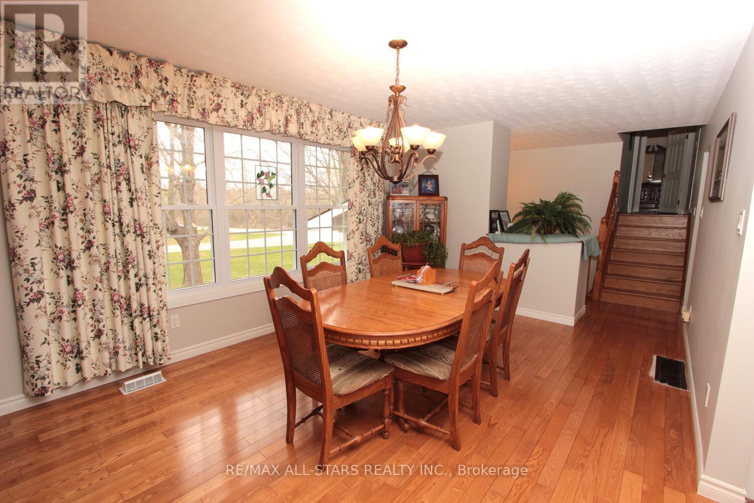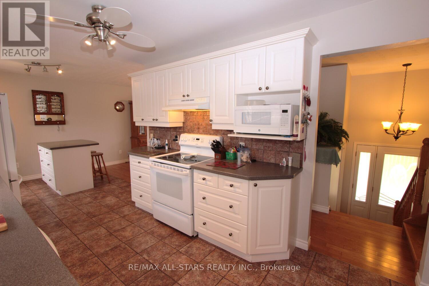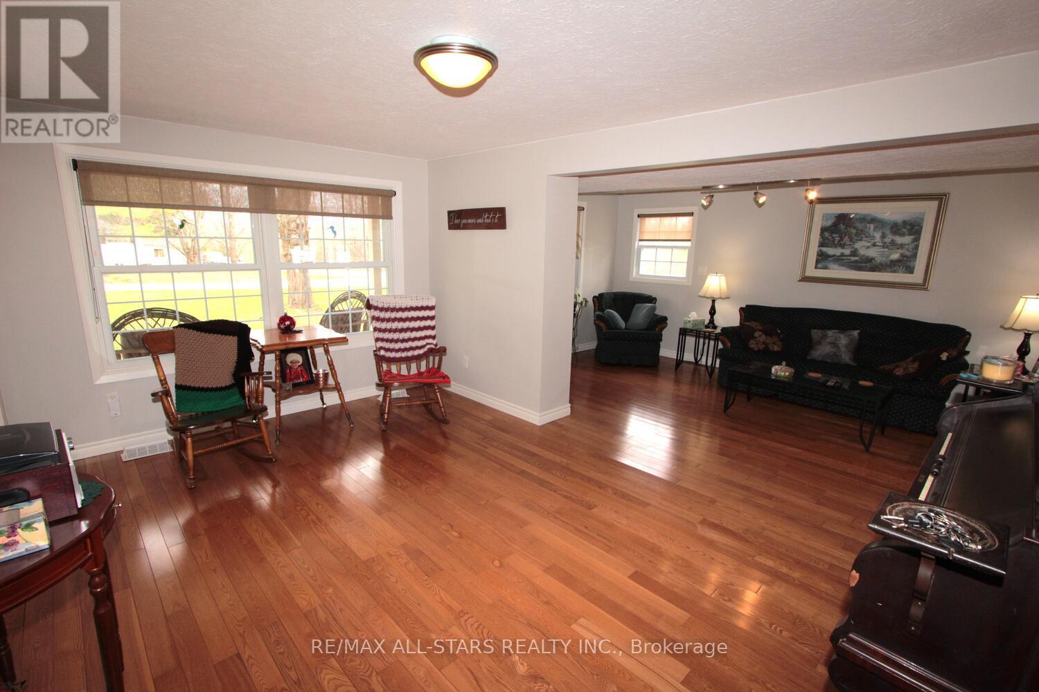 Pride of Ownership! Picture perfect setting large in-town lot with that country feel. Enter this magnificent home through your sunroom to your large family room with gleaming hardwood flooring then on to your dining room and beautifully updated kitchen with ceramic flooring. Inviting living room with huge window and again hardwood flooring . Upper level with large primary bedroom (22ftx11ft) plus 2nd bedroom and 4pc bath. Lower level has a large 3rd bedroom - plus laundry area. Propane Furnace, & Central Air. Outside entertaining on your private patio area or front veranda, 2 car garage with oversize door plus additional workshop area of approx. 576 sq ft. Both areas are insulated and can be heated. (id:51158)