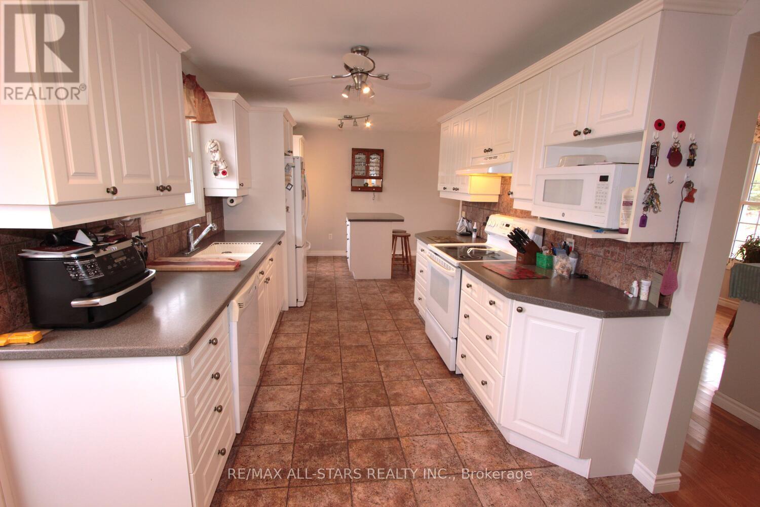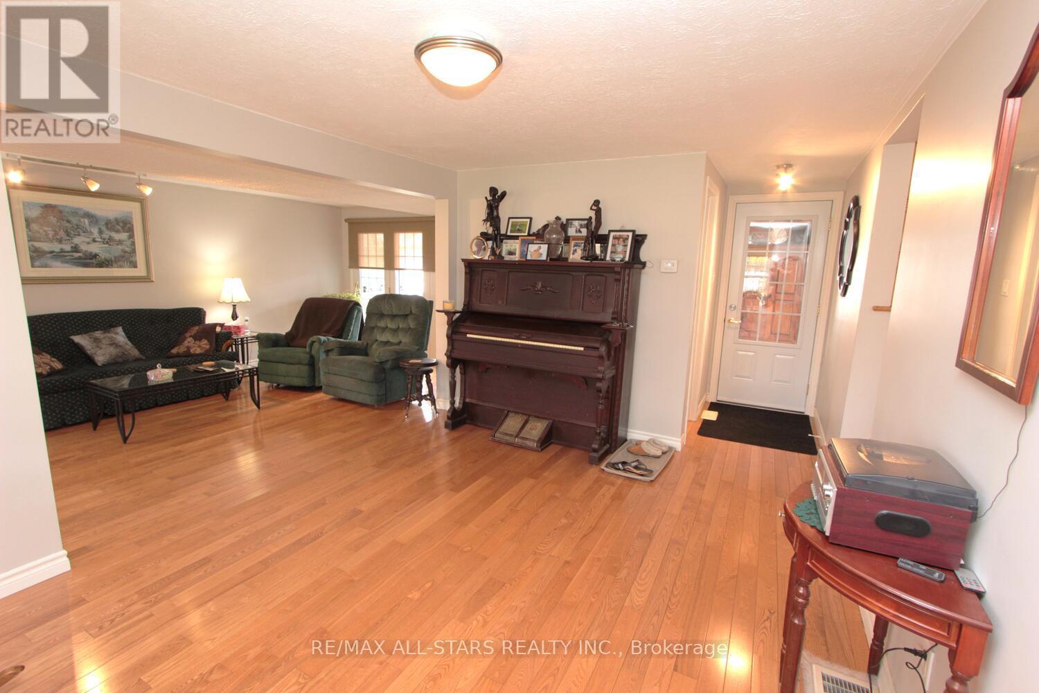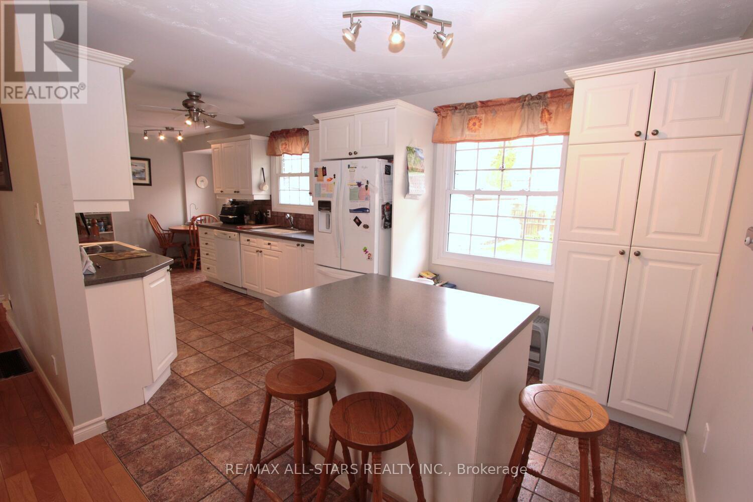 Pride of Ownership! Picture perfect setting large in-town lot with that country feel. Enter this magnificent home through your sunroom to your large family room with gleaming hardwood flooring then on to your dining room and beautifully updated kitchen with ceramic flooring. Inviting living room with huge window and again hardwood flooring . Upper level with large primary bedroom (22ftx11ft) plus 2nd bedroom and 4pc bath. Lower level has a large 3rd bedroom - plus laundry area. Propane Furnace, & Central Air. Outside entertaining on your private patio area or front veranda, 2 car garage with oversize door plus additional workshop area of approx. 576 sq ft. Both areas are insulated and can be heated. (id:51158)